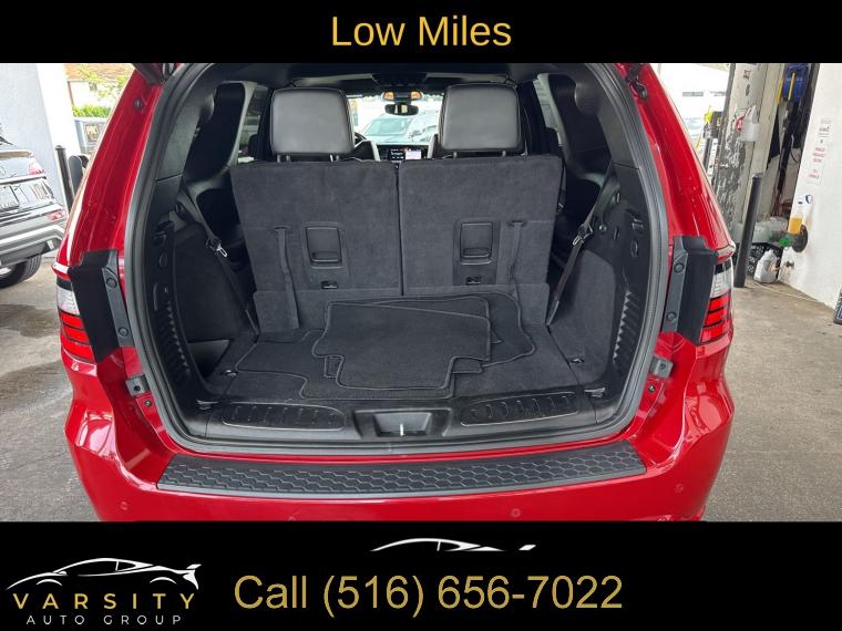 2021 Dodge Durango R/T, Redline 2 Coat Pearl, Black w/Leather Suede Bucket Seats or Leather Trimmed Bucket Seats, 5.7L Hemi V8, All wheel drive, Quick Order Package 22 S, Blacktop Package, Wheels: 20" x 8.0" Black Noise Aluminum, Clean CARFAX, Low Miles, AWD, 10.1" Touchscreen Display, 2nd Row Fold/Tumble Captain Chairs, 2nd Row Mini Console w/Cupholders, 3.09 Rear Axle Ratio, 3rd Row Floor Mat & Mini Console, 3rd row seats: split-bench, 4-Wheel Disc Brakes, 4G LTE Wi-Fi Hot Spot, 6-Passenger Seating, 9 Speakers, ABS brakes, Air Conditioning, AM/FM radio: SiriusXM w/360L, Anti-whiplash front head restraints, Apple CarPlay, Apple CarPlay/Android Auto, Audio memory, Auto High-beam Headlights, Auto-dimming door mirrors, Auto-dimming Rear-View mirror, Auto-leveling suspension, Automatic temperature control, Blacktop Package, Brake assist, Bumpers: body-color, Compass, Connected Travel & Traffic Services, Delay-off headlights, Disassociated Touchscreen Display, Driver door bin, Driver vanity mirror, Dual front impact airbags, Dual front side impact airbags, Electronic Stability Control, Emergency communication system: SiriusXM Guardian, Four wheel independent suspension, Front anti-roll bar, Front Bucket Seats, Front Center Armrest w/Storage, Front dual zone A/C, Front fog lights, Front License Plate Bracket, Front reading lights, Fully automatic headlights, Garage door transmitter, Global Telematics Box Module (TBM), Gloss Black Badges, Gloss Black Exterior Mirrors, Google Android Auto, GPS Antenna Input, GPS Navigation, HD Radio, Heated door mirrors, Heated front seats, Heated rear seats, Heated steering wheel, Heavy-Duty Engine Cooling, Hemi Badge, Illuminated entry, Integrated Center Stack Radio, Integrated Voice Command w/Bluetooth, Knee airbag, Leather steering wheel, Leather Suede Bucket Seats, Low tire pressure warning, Manufacturer's Statement of Origin, Memory seat, Navigation system: TomTom, Occupant sensing airbag, Outside temperature display, Overhead airbag, Overhead console, Panic alarm, ParkView Rear Back-Up Camera, Passenger door bin, Passenger vanity mirror, Power door mirrors, Power driver seat, Power Liftgate, Power passenger seat, Power steering, Power Sunroof, Power windows, Quick Order Package 22S, Radar Red Interior Accent Stitch, Radio data system, Radio: Uconnect 5 Nav w/10.1" Display, Rain sensing wipers, Rear air conditioning, Rear anti-roll bar, Rear Load Leveling Suspension, Rear reading lights, Rear seat center armrest, Rear window defroster, Rear window wiper, Remote keyless entry, Satin Black Dodge Tail Lamp Badge, Security system, SiriusXM Guardian - Included Trial (B), SiriusXM Satellite Radio, SiriusXM w/360L, Speed control, Speed-sensing steering, Speed-Sensitive Wipers, Split folding rear seat, Spoiler, Steering wheel mounted audio controls, Tachometer, Telescoping steering wheel, Tilt steering wheel, Traction control, Trip computer, Turn signal indicator mirrors, USB Host Flip, Variably intermittent wipers, Voltmeter, Wheels: 20" x 8.0" Black Noise Aluminum. Redline 2 Coat Pearl 2021 Dodge Durango R/T AWD 8-Speed Automatic HEMI 5.7L V8 Multi Displacement VVT Odometer is 6315 miles below market average!