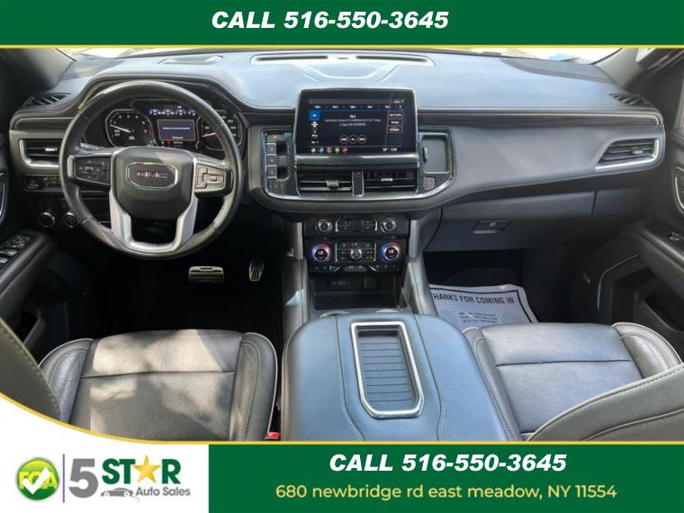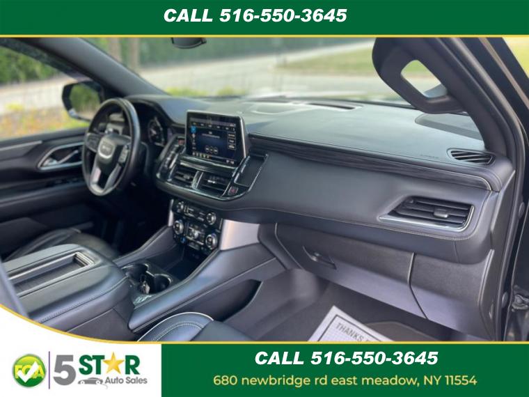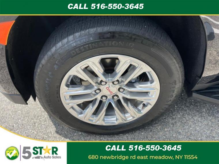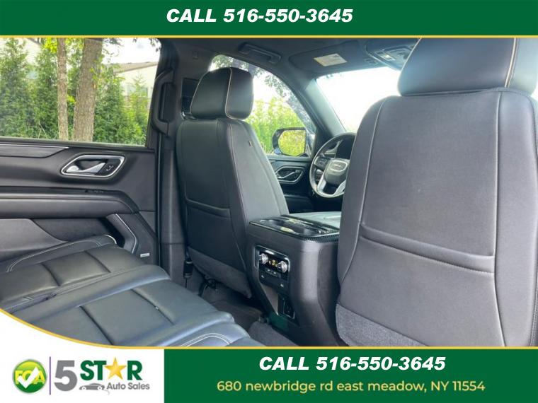10-Speed A/T, ABS, 4-Wheel Disc Brakes, 8 Cylinder Engine, A/C, A/T, 3rd Row Seat, Adjustable Steering Wheel, Air Suspension, Security System, AM/FM Stereo, Automatic Highbeams, Auxiliary Audio Input, Back-Up Camera, Blind Spot Monitor, Brake Assist, Bucket Seats, Climate Control, Cooled Front Seat(s), Cross-Traffic Alert, Cruise Control, Daytime Running Lights, Driver Air Bag, Driver Illuminated Vanity Mirror, Driver Adjustable Lumbar, Driver Restriction Features, Driver Vanity Mirror, Multi-Zone A/C, Auto-Dimming Rearview Mirror, Stability Control, Fog Lamps, Four Wheel Drive, Front Collision Mitigation, Front Collision Warning, Floor Mats, Conventional Spare Tire, Gasoline Fuel, HD Radio, Heated Front Seat(s), Heated Mirrors, Intermittent Wipers, Keyless Entry, Keyless Start, Lane Departure Warning, Lane Keeping Assist, Leather Seats, Leather Steering Wheel, Locking/Limited Slip Differential, Luggage Rack, MP3 Player, Telematics, Pass-Through Rear Seat, Passenger Air Bag, Passenger Air Bag Sensor, Passenger Illuminated Visor Mirror, Passenger Adjustable Lumbar, Passenger Vanity Mirror, Power Door Locks, Power Mirror(s), Power Driver Seat, Power Liftgate, Power Passenger Seat, Power Steering, Power Windows, Premium Sound System, Privacy Glass, Rain Sensing Wipers, Rear A/C, Rear Defrost, Rear Head Air Bag, Rear Parking Aid, Remote Engine Start, Remote Trunk Release, Requires Subscription, Running Boards/Side Steps, Satellite Radio, Seat Memory, Front Side Air Bag, Front Head Air Bag, Smart Device Integration, Steering Wheel Audio Controls, Tire Pressure Monitor, Traction Control, Tow Hitch, Universal Garage Door Opener, Variable Speed Intermittent Wipers, WiFi Hotspot, Bluetooth Connection, Active Aero Shutters, upper (Standard with (L84) 5.3L EcoTec3 V8 engine only.), Assist steps, Black with Gloss Black insert, Fascia, front, Fog lamps, front LED, Glass, acoustic, laminated windshield, Glass, deep-tinted, Glass, driver and front passenger laminated front door window, Glass, windshield shade band, Headlamps, LED, Lamps, stop and tail, LED, Liftgate, rear power programmable hands-free with GMC logo projection, Luggage rack side rails, roof-mounted, bright, Mirror caps, body-color, Mirrors, outside heated power-adjustable, manual-folding, body-color, Moldings, bright chrome bodyside, Tire carrier, lockable outside spare winch-type mounted under frame at rear, Tire, spare P265/70R17 all-season, blackwall, Tires, 275/60R20SL all-season, blackwall, Wheel, full-size spare, 17" (43.2 cm) steel, Wheels, 20" x 9" (50.8 cm x 22.9 cm) 6-spoke polished aluminum, Wiper, rear intermittent, Wipers, front intermittent, Rainsense, Air conditioning, rear, Air conditioning, tri-zone automatic climate control with individual climate settings for driver, right front passenger and rear seat occupants, Assist handles, front passenger A-pillar and second row outboard B-pillar, Assist handles, overhead, driver and front passenger, located in headliner, Console, floor with storage area, cup holders, Cruise control, electronic with set and resume speed, Defogger, rear-window electric, Door handles, chrome with body-color strip, Door locks, power programmable with lockout protection, Driver Information Center, enhanced, 8" diagonal multi-color digital display includes analog speedometer and tachometer gauges, Floor covering, color-keyed carpeting, Floor mats, color-keyed carpeted first and second row, removable, Following Distance Indicator, GMC Connected Access capable (Subject to terms. See onstar.com or dealer for details.), Keyless Open, includes extended range Remote Keyless Entry, Lighting, interior with dome light driver- and passenger-side door switch with delayed entry feature, cargo lights, door handle or Remote Keyless Entry-activated illuminated entry and map lights in front and second seat positions, Memory settings, recalls 2 "driver" presets for power driver seat, Mirror, inside rearview auto-dimming, Power outlet, front auxiliary, 12-volt, located in the center stack of instrument panel, Power outlets, 2, 120-volt located on the rear of the center console and rear cargo area, Remote Start, Safety Alert Seat, Seat adjusters, 12-way power includes 8-way power driver and front passenger seats with 4-way power lumbar, Seat trim, Leather-appointed, Seats, front bucket, Seats, heated and ventilated driver and front passenger perforated leather seating surfaces., Seats, heated driver and front passenger, Seats, second row 60/40 split-folding bench, manual-folding, Seats, third row 60/40 split-folding bench, manual, Sill plates, bright, front and rear doors, Steering column, manual tilt and telescopic, Steering wheel controls mounted audio, Driver Information Center, cruise control, Forward Collision Alert following gap button and heated steering wheel (when equipped), Steering wheel, leather-wrapped, Theft-deterrent system, electrical, unauthorized entry, Universal Home Remote includes garage door opener, programmable, USB charging-only ports, 4, (2) located on rear of center console and (2) in 3rd row, USB data ports, 2, one type-A and one type-C includes SD Card Reader, located within front center console (When (DCH) power-sliding center console is ordered, relocated within instrument panel.), USB data ports, 2, one type-A and one type-C, located within center console (Deleted when (DCH) power-sliding center console is ordered.), Visors, driver and front passenger illuminated vanity mirrors, Window, power with driver Express-Up/Down, Window, power with front passenger Express-Up/Down, Windows, power, rear with Express-Down, Wireless Apple CarPlay/Wireless Android Auto, Wireless charging (Standard on vehicles built before 7-12-2021. Vehicles built on or after 7-12-2021, will have (00C) Not Equipped with Wireless Charging which removes Wireless Charging and its content. See dealer for details. The system wirelessly charges one compatible mobile device. Some phones have built-in wireless charging technol