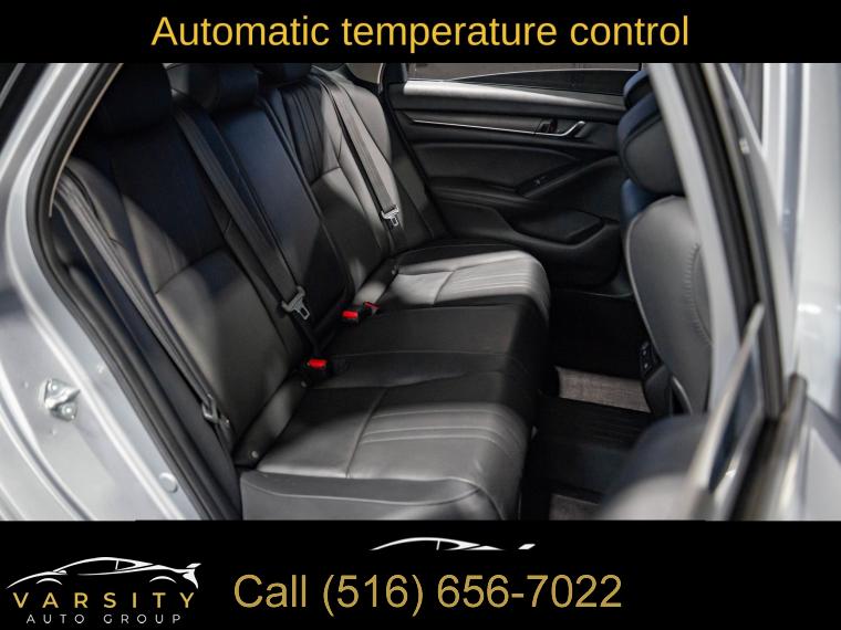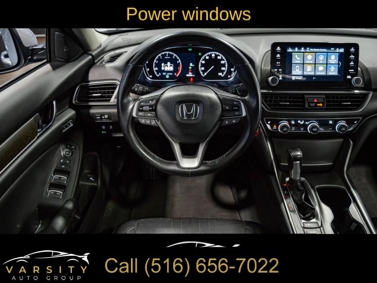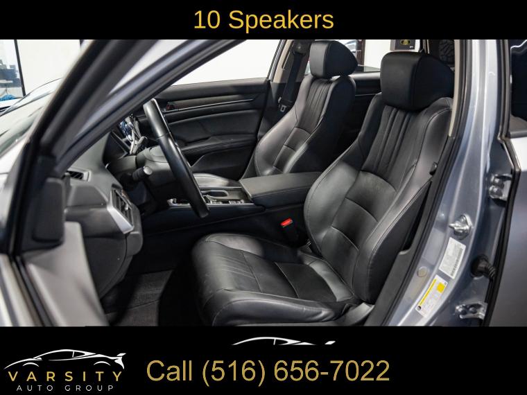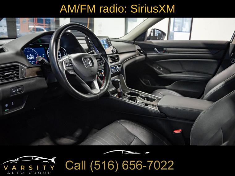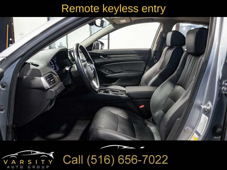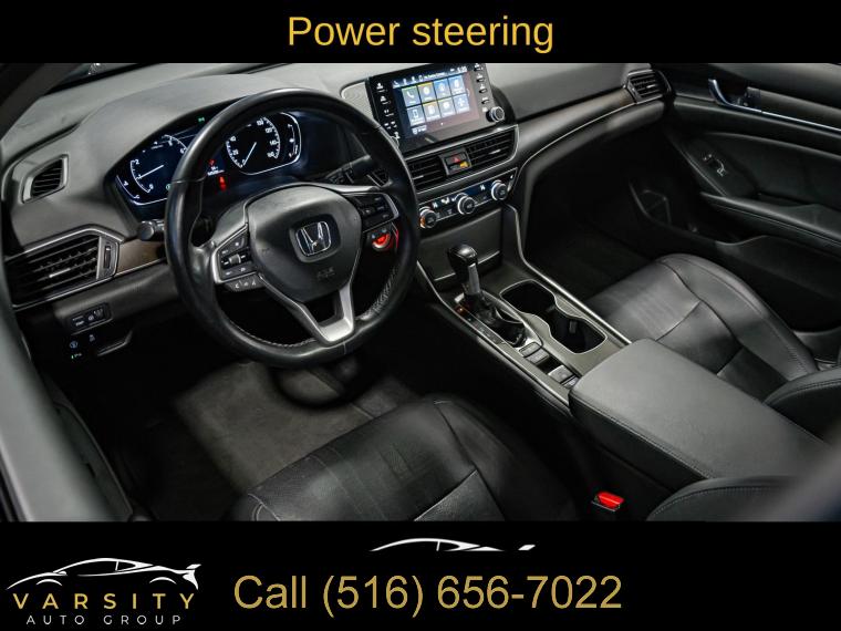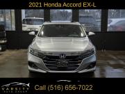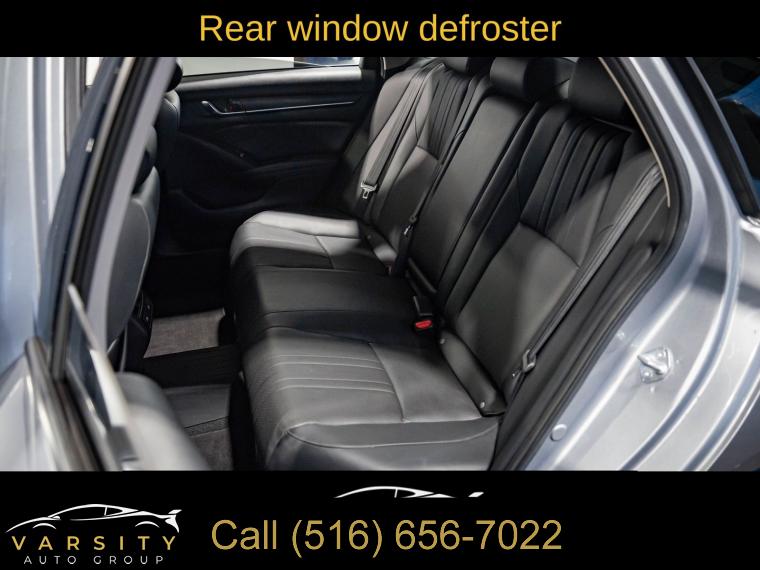 10 Speakers, AM/FM radio: SiriusXM, Radio data system, Radio: 450-Watt AM/FM/HD Premium Audio System, Air Conditioning, Automatic temperature control, Front dual zone A/C, Rear window defroster, Memory seat, Power driver seat, Power steering, Power windows, Remote keyless entry, Steering wheel mounted audio controls, Four wheel independent suspension, Speed-sensing steering, Traction control, 4-Wheel Disc Brakes, ABS brakes, Dual front impact airbags, Dual front side impact airbags, Emergency communication system: HondaLink, Front anti-roll bar, Knee airbag, Low tire pressure warning, Occupant sensing airbag, Overhead airbag, Rear anti-roll bar, Power moonroof, Blind Spot Information (BSI) System warning, Brake assist, Electronic Stability Control, Forward collision: Collision Mitigation Braking System (CMBS) + FCW mitigation, Lane Departure Warning System, Exterior Parking Camera Rear, Auto High-beam Headlights, Delay-off headlights, Front fog lights, Fully automatic headlights, Panic alarm, Security system, Adaptive Cruise Control: Adaptive Cruise Control (ACC) with Low-Speed Follow, Speed control, Bumpers: body-color, Heated door mirrors, Power door mirrors, Turn signal indicator mirrors, Apple CarPlay/Android Auto, Auto-dimming Rear-View mirror, Driver door bin, Driver vanity mirror, Front reading lights, Garage door transmitter: HomeLink, Illuminated entry, Leather Shift Knob, Leather steering wheel, Outside temperature display, Overhead console, Passenger vanity mirror, Pattern Projector, Rear seat center armrest, Tachometer, Telescoping steering wheel, Tilt steering wheel, Trip computer, Front Bucket Seats, Front Center Armrest, Heated Front Bucket Seats, Heated front seats, Leather-Trimmed Seats, Power passenger seat, Split folding rear seat, Passenger door bin, 17" Machine-Finished Alloy Wheels, Alloy wheels, Speed-Sensitive Wipers, Variably intermittent wipers, 2021 Honda Accord EX-L, Modern Steel Metallic, Black w/Leather-Trimmed Seats, Apple CarPlay/Android Auto3, Clean CARFAX