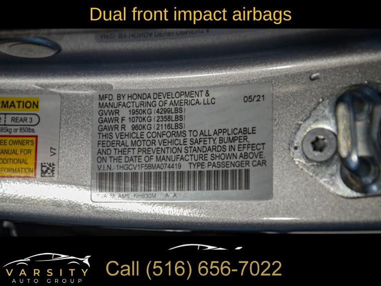 For more information on this 2021 Honda Accord, please call Varsity Autos Group at (516) 656-7022 or with the contact form on this page. This vehicle's vin number is 1HGCV1F58MA074419 and is recorded as being in stock at Varsity Autos Group at 500 Old Country Rd in Westbury. See all cars from this dealership.