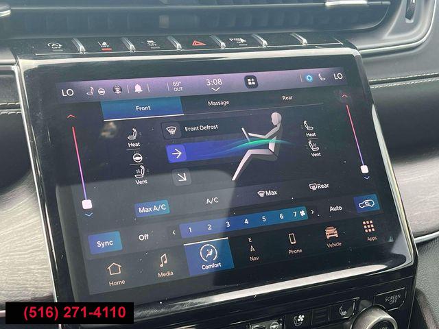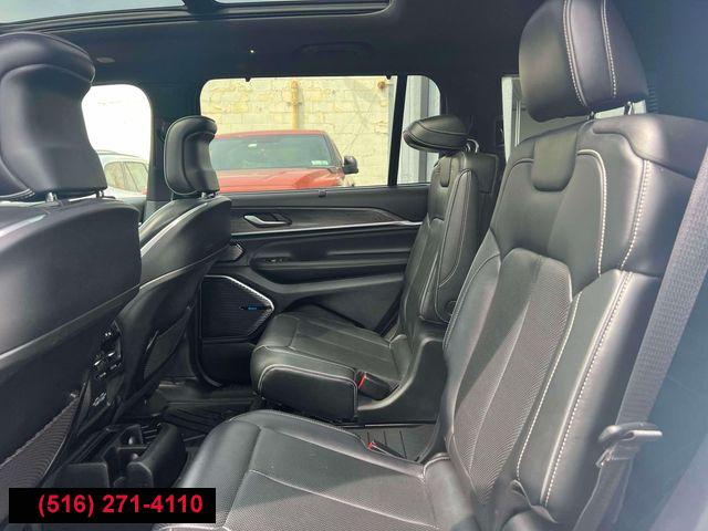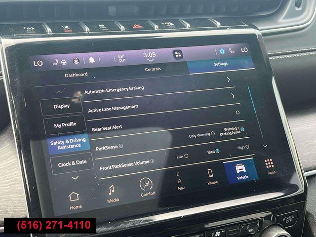 GPS Navigation, Navigation System, Luxury Tech Group IV, Quick Order Package 22N, 10 Speakers, 19 Speakers High Performance Audio, 950 Watt Amplifier, AM/FM radio: SiriusXM w/360L, Audio memory, GPS Antenna Input, HD Radio, Integrated Center Stack Radio, Radio data system, Radio: Uconnect 5 Nav w/10.1" Display, Radio: Uconnect 5 Nav w/8.4" Display, SiriusXM Satellite Radio, SiriusXM w/360L, Air Conditioning, ATC w/4 Zone Temp Control, Automatic temperature control, Front dual zone A/C, Rear air conditioning, Rear window defroster, Memory seat, Power driver seat, Power steering, Power windows, Remote keyless entry, Steering wheel memory, Steering wheel mounted audio controls, Adaptive suspension, Auto-leveling suspension, Four wheel independent suspension, Normal Duty Suspension, Traction control, 4-Wheel Disc Brakes, ABS brakes, Anti-whiplash front head restraints, Dual front impact airbags, Dual front side impact airbags, Emergency communication system, Front anti-roll bar, Knee airbag, Low tire pressure warning, Occupant sensing airbag, Overhead airbag, Rear anti-roll bar, Power moonroof: CommandView, Power Liftgate, Brake assist, Electronic Stability Control, ParkView Rear Back-Up Camera, Auto High-beam Headlights, Delay-off headlights, Front fog lights, Fully automatic headlights, Panic alarm, Security system, Speed control, Aux Battery, Auto-dimming door mirrors, Bumpers: body-color, Front License Plate Bracket (DISC), Heated door mirrors, Power door mirrors, Roof rack: rails only, Spoiler, Turn signal indicator mirrors, USB Host Flip, 10.1" Touchscreen Display, 2nd Row Manual Window Shades, Apple CarPlay, Apple CarPlay/Android Auto, Auto-dimming Rear-View mirror, Compass, Connected Travel & Traffic Services, Connectivity - US/Canada, Disassociated Touchscreen Display, Driver door bin, Driver vanity mirror, Front reading lights, Garage door transmitter, Google Android Auto, Heated steering wheel, Illuminated entry, Integrated Voice Command w/Bluetooth, Leather steering wheel, Nappa Leather Seats, Nappa Leather Seats (TL), Outside temperature display, Overhead console, Passenger vanity mirror, Rear reading lights, Rearview Autodim Digital Display Mirror, Tachometer, Telescoping steering wheel, Tilt steering wheel, Trip computer, Voltmeter, Wireless Charging Pad, 3rd row seats: split-bench, Driver Power Seat Back Massage, Front Bucket Seats, Front Passenger Power Seat Back Massage, Heated front seats, Heated rear seats, Passenger Seat Memory, Power Adjust 12-Way Driver Seat, Power Adjust 12-Way Front Passenger Seat, Power Fold Seatbacks, Power passenger seat, Reclining 3rd row seat, Split folding rear seat, Ventilated front seats, Front Center Armrest w/Storage, Passenger door bin, Alloy wheels, Wheels: 20" x 8.5" Machined Face Aluminum, Rain sensing wipers, Rear window wiper, Speed-Sensitive Wipers, Variably intermittent wipers, 3.45 Rear Axle Ratio