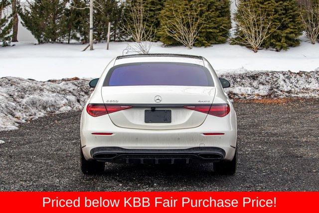 4MATIC®, Black Leather, 4-Wheel Disc Brakes, Adaptive suspension, Air Conditioning, Apple CarPlay®/Android Auto®, Auto High-beam Headlights, Burmester® 3D Surround Sound System, Four wheel independent suspension, HVAC memory, Memory seat, Navigation System, Power driver seat, Power moonroof: Panorama, Radio: MBUX w/Navigation, Rain sensing wipers, Rear window defroster, Remote keyless entry, Security system, SiriusXM Radio. Priced below KBB Fair Purchase Price! Clean CARFAX. 20/29 City/Highway MPG2021 Mercedes-Benz S-Class S 500 4MATIC® White S 500 4MATIC® 4MATIC® 9-Speed Automatic 3.0L V6 TurbochargedSpecial pricing ad/promotion is available to customers who reference such pricing and present the ad at the time of sale otherwise store list price applies. Buyer is responsible to verify options/packages. Any error voids the ad. Certified Pre-Owned program available. Same-day delivery In-stock units only. Dealer-installed accessories are extra. Dealer is not responsible for typographical errors. Every vehicle in inventory is equipped with LoJack at an additional cost. The special price expires at the midnight of the publication date. For return & exchange policy visit the website for details. All Prices will be honored as cash prices. Prices do not include the following fees: Doc Fee, tax, tags, DMV fees. Pre-installed LoJack, and Pre-Certification (vary between vehicles) Please visit or call the dealership for complete details.
