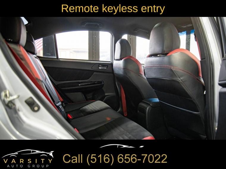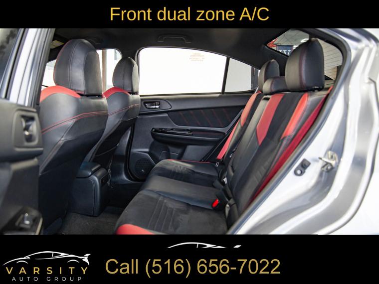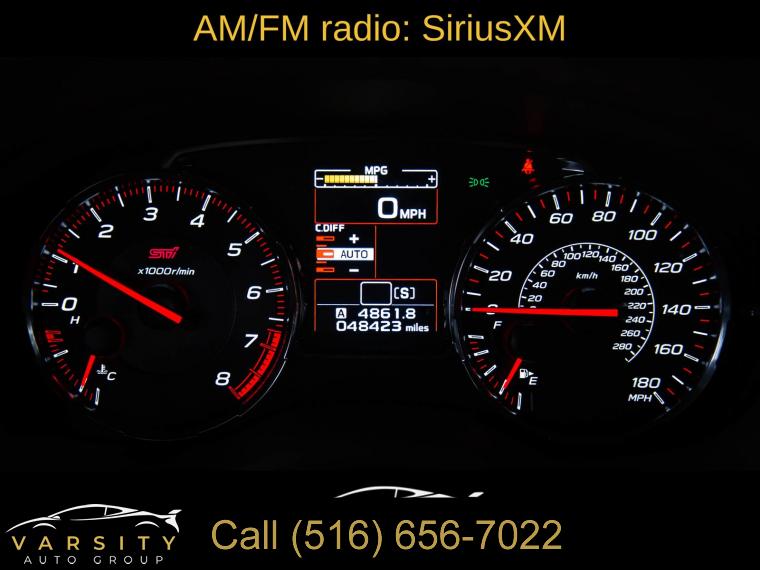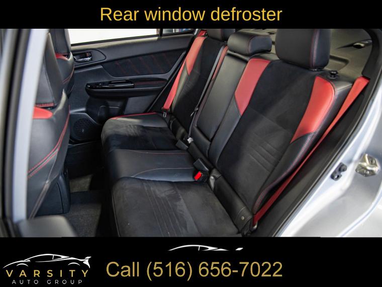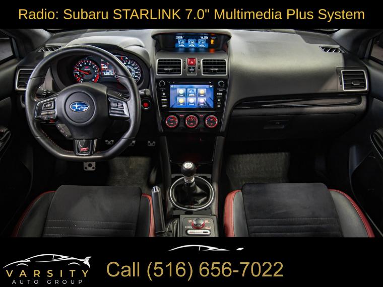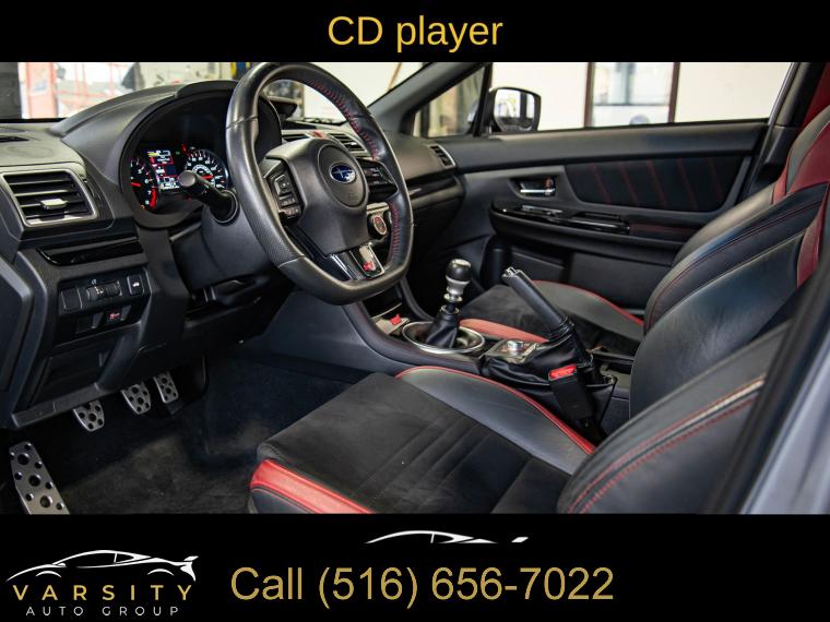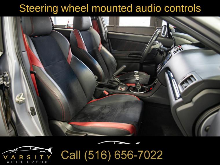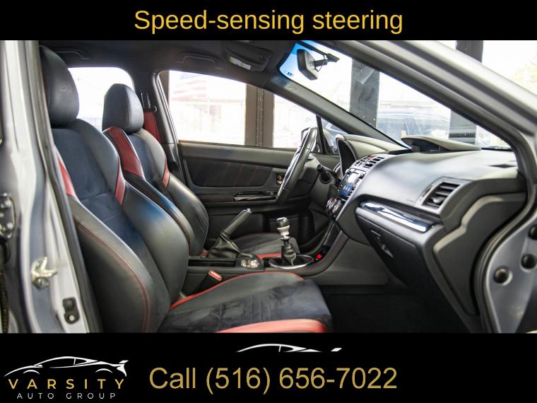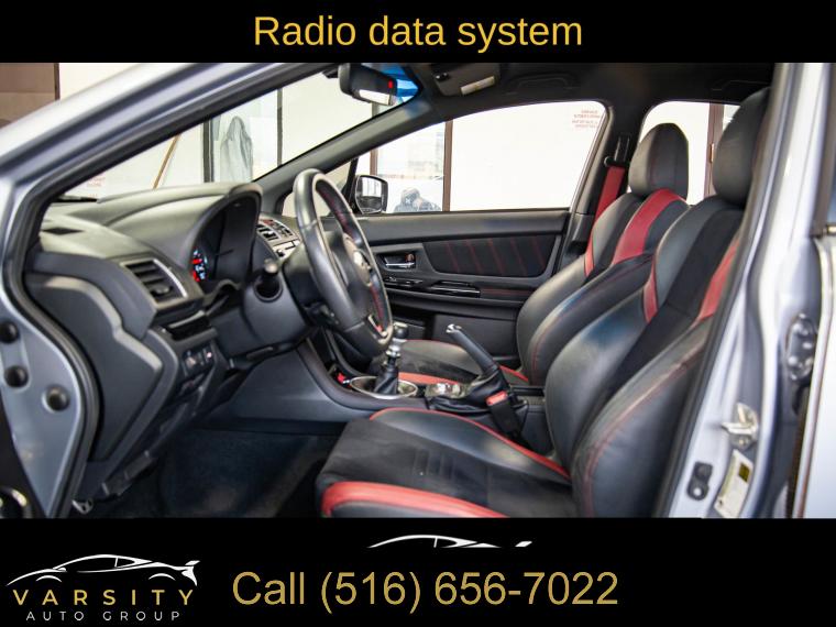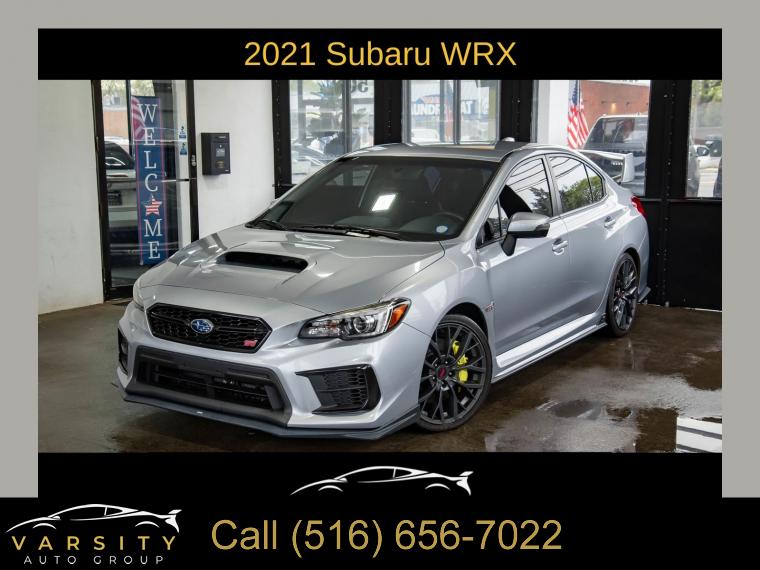 Standard Model, 6 Speakers, AM/FM radio: SiriusXM, CD player, Radio data system, Radio: Subaru STARLINK 7.0" Multimedia Plus System, Air Conditioning, Automatic temperature control, Front dual zone A/C, Rear window defroster, Power steering, Power windows, Remote keyless entry, Steering wheel mounted audio controls, Four wheel independent suspension, Speed-sensing steering, Traction control, 4-Wheel Disc Brakes, ABS brakes, Dual front impact airbags, Dual front side impact airbags, Emergency communication system: STARLINK Safety and Security (Subscription Required), Front anti-roll bar, Knee airbag, Low tire pressure warning, Occupant sensing airbag, Overhead airbag, Rear anti-roll bar, Brake assist, Electronic Stability Control, Exterior Parking Camera Rear, Delay-off headlights, Fully automatic headlights, Panic alarm, Security system, Speed control, Bumpers: body-color, Heated door mirrors, Power door mirrors, Spoiler, Turn signal indicator mirrors, All-Weather Floor Liners, Auto-Dimming Mirror w/Compass & HomeLink, Driver door bin, Driver vanity mirror, Front reading lights, Illuminated entry, Leather Shift Knob, Leather steering wheel, LED Upgrade - Map & Dome Lights, Outside temperature display, Overhead console, Passenger vanity mirror, Performance Design Heated Front Bucket Seats, Rear seat center armrest, Sport steering wheel, STARLINK/Apple CarPlay/Android Auto, STI Shift Knob, Tachometer, Telescoping steering wheel, Tilt steering wheel, Trip computer, Center Armrest Extension - Black, Front Bucket Seats, Front Center Armrest, Heated front seats, Split folding rear seat, Ultrasuede Upholstery w/Leather Bolsters, Cargo Tray, Passenger door bin, Alloy wheels, Wheels: 19" x 8.5" Machined Finish Aluminum Alloy, Variably intermittent wipers, 2021 Subaru WRX STi, Ice Silver Metallic, Black w/Ultrasuede Upholstery w/Leather Bolsters, Clean CARFAX