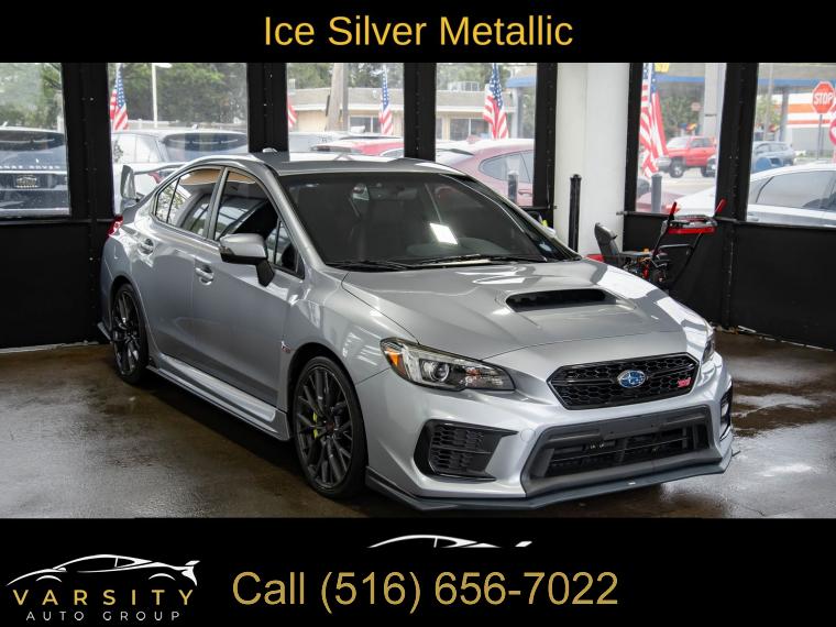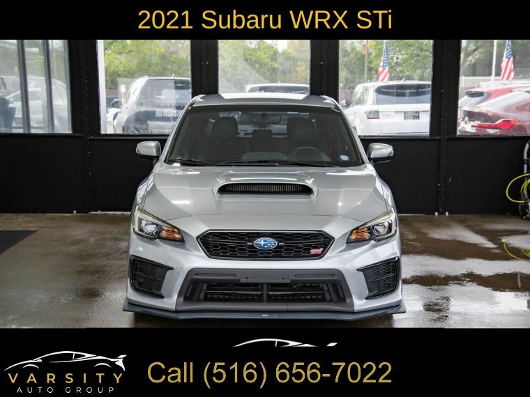 2021 Subaru WRX STi, Ice Silver Metallic, Black w/Ultrasuede Upholstery w/Leather Bolsters, Clean CARFAX, 4-Wheel Disc Brakes, 6 Speakers, ABS brakes, Air Conditioning, All-Weather Floor Liners, Alloy wheels, AM/FM radio: SiriusXM, Auto-Dimming Mirror w/Compass & HomeLink, Automatic temperature control, Brake assist, Bumpers: body-color, Cargo Tray, CD player, Center Armrest Extension - Black, Delay-off headlights, Driver door bin, Driver vanity mirror, Dual front impact airbags, Dual front side impact airbags, Electronic Stability Control, Emergency communication system: STARLINK Safety and Security (Subscription Required), Exterior Parking Camera Rear, Four wheel independent suspension, Front anti-roll bar, Front Bucket Seats, Front Center Armrest, Front dual zone A/C, Front reading lights, Fully automatic headlights, Heated door mirrors, Heated front seats, Illuminated entry, Knee airbag, Leather Shift Knob, Leather steering wheel, LED Upgrade - Map & Dome Lights, Low tire pressure warning, Occupant sensing airbag, Outside temperature display, Overhead airbag, Overhead console, Panic alarm, Passenger door bin, Passenger vanity mirror, Performance Design Heated Front Bucket Seats, Power door mirrors, Power steering, Power windows, Radio data system, Radio: Subaru STARLINK 7.0" Multimedia Plus System, Rear anti-roll bar, Rear seat center armrest, Rear window defroster, Remote keyless entry, Security system, Speed control, Speed-sensing steering, Split folding rear seat, Spoiler, Sport steering wheel, Standard Model, STARLINK/Apple CarPlay/Android Auto, Steering wheel mounted audio controls, STI Shift Knob, Tachometer, Telescoping steering wheel, Tilt steering wheel, Traction control, Trip computer, Turn signal indicator mirrors, Ultrasuede Upholstery w/Leather Bolsters, Variably intermittent wipers, Wheels: 19" x 8.5" Machined Finish Aluminum Alloy. Ice Silver Metallic 2021 Subaru WRX STi AWD Close-Ratio 6-Speed Manual 2.5L DOHC Intercooled High Boost Turbocharged