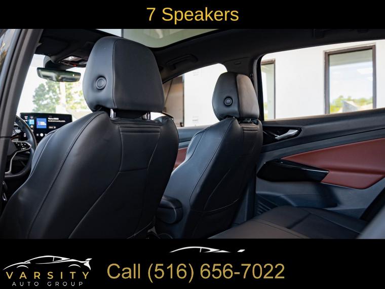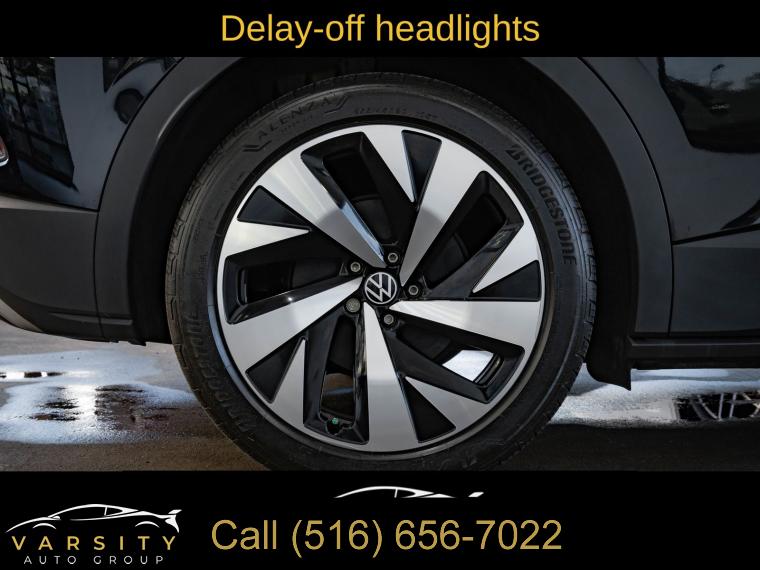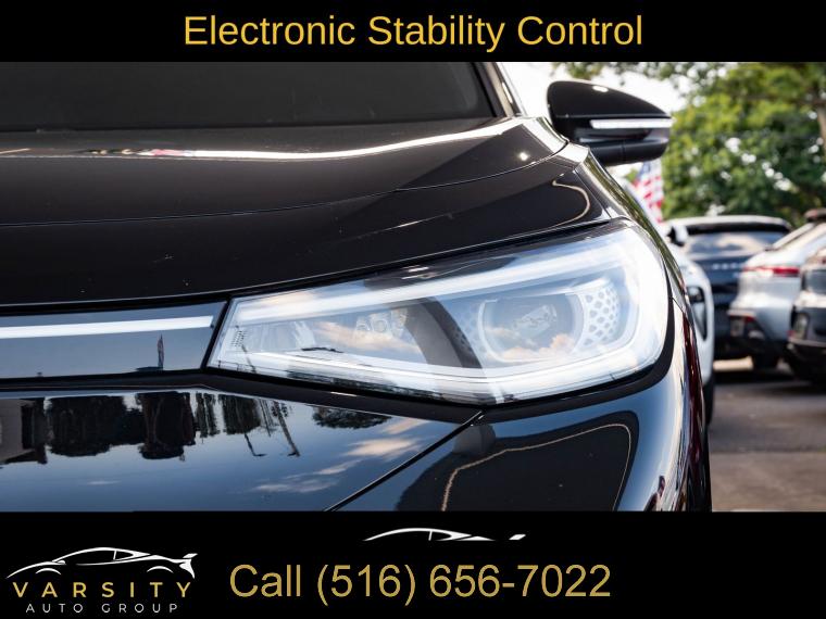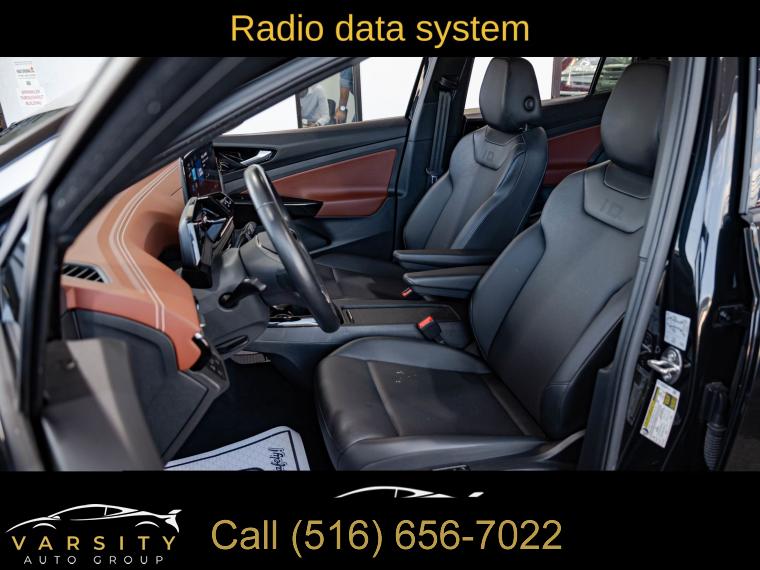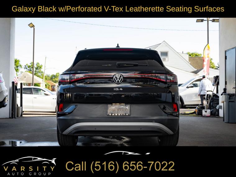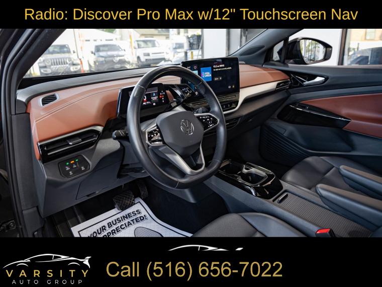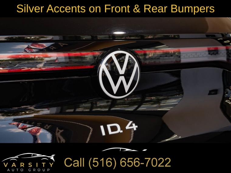 Navigation System, Gradient Package, Black Roof, 7 Speakers, Radio data system, Radio: Discover Pro Max w/12" Touchscreen Nav, Air Conditioning, Automatic temperature control, Front dual zone A/C, Rear window defroster, Memory seat, Power driver seat, Power steering, Power windows, Remote keyless entry, Steering wheel mounted audio controls, Four wheel independent suspension, Speed-sensing steering, Traction control, ABS brakes, Dual front impact airbags, Dual front side impact airbags, Emergency communication system: VW Car-Net services (capabilities require enrollment or subscription), Front anti-roll bar, Low tire pressure warning, Occupant sensing airbag, Overhead airbag, Rear anti-roll bar, Silver Accents on Front & Rear Bumpers, Power Liftgate, Brake assist, Electronic Stability Control, Exterior Parking Camera Rear, Auto High-beam Headlights, Delay-off headlights, Front fog lights, Fully automatic headlights, Panic alarm, Speed control, 4 Wheel Independent Suspension, Bumpers: body-color, Heated door mirrors, Power door mirrors, Roof rack: rails only, Spoiler, Turn signal indicator mirrors, Auto-dimming Rear-View mirror, Driver door bin, Driver vanity mirror, EV Roadside Assistance Kit, Frameless Auto-Dimming Rearview Mirror w/HomeLink, Front reading lights, Heated steering wheel, Illuminated entry, Outside temperature display, Overhead console, Passenger seat mounted armrest, Passenger vanity mirror, Rear reading lights, Rear seat center armrest, Telescoping steering wheel, Tilt steering wheel, Trip computer, Driver's Seat Mounted Armrest, Front Bucket Seats, Heated Front Seats, Heated front seats, Perforated V-Tex Leatherette Seating Surfaces, Power passenger seat, Split folding rear seat, Passenger door bin, Alloy wheels, Wheels: 19" 5-Spoke 2-Tone Machined Alloy, Wheels: 20" Dynamic Design Machined Alloy, Rain sensing wipers, Rear window wiper, Variably intermittent wipers, 4.39 Axle Ratio, The Price you See, is the Price You Pay!!!, 2021 Volkswagen ID.4 Pro S, Mythos Black Metallic, Galaxy Black w/Perforated V-Tex Leatherette Seating Surfaces, 1 Owner, Clean CARFAX
