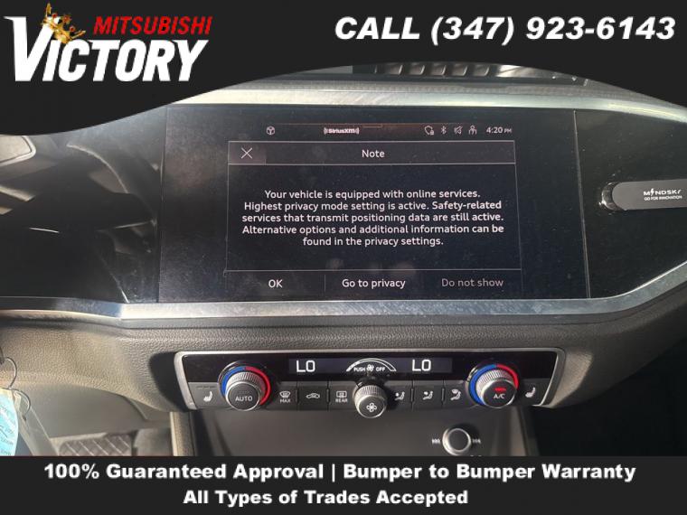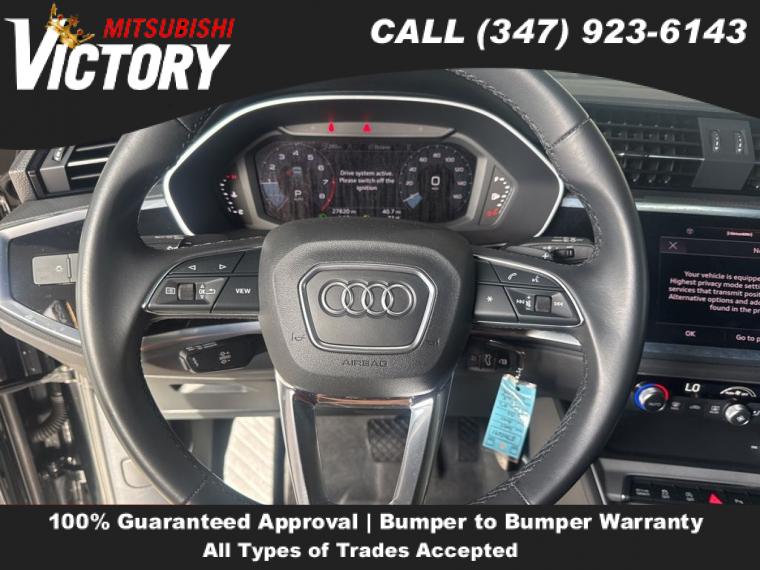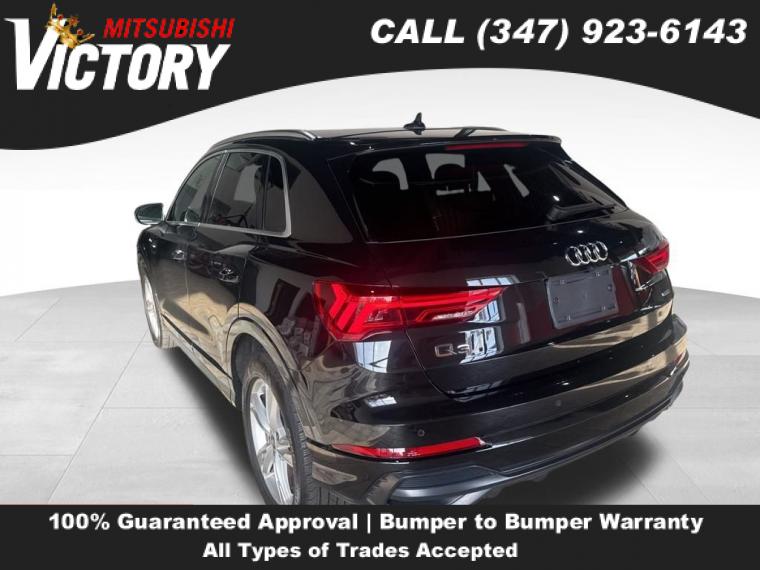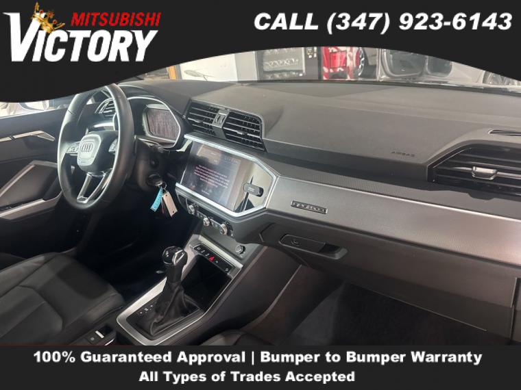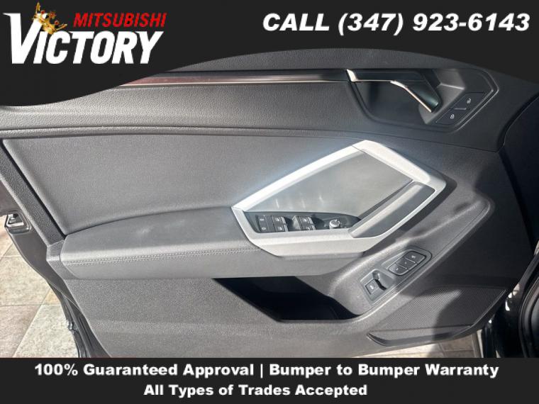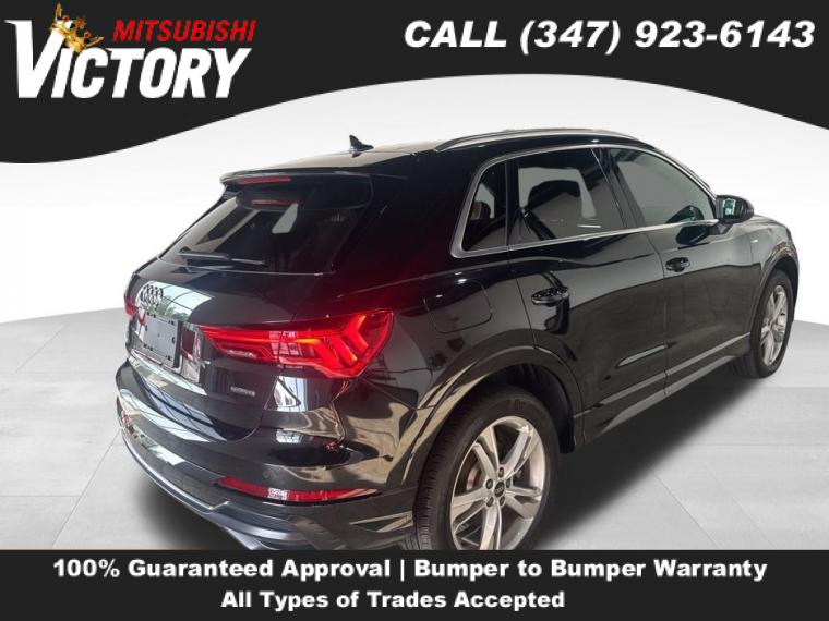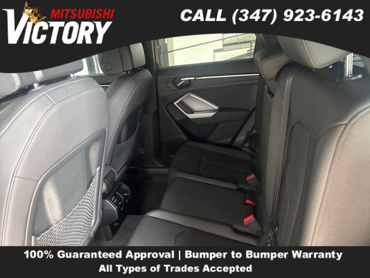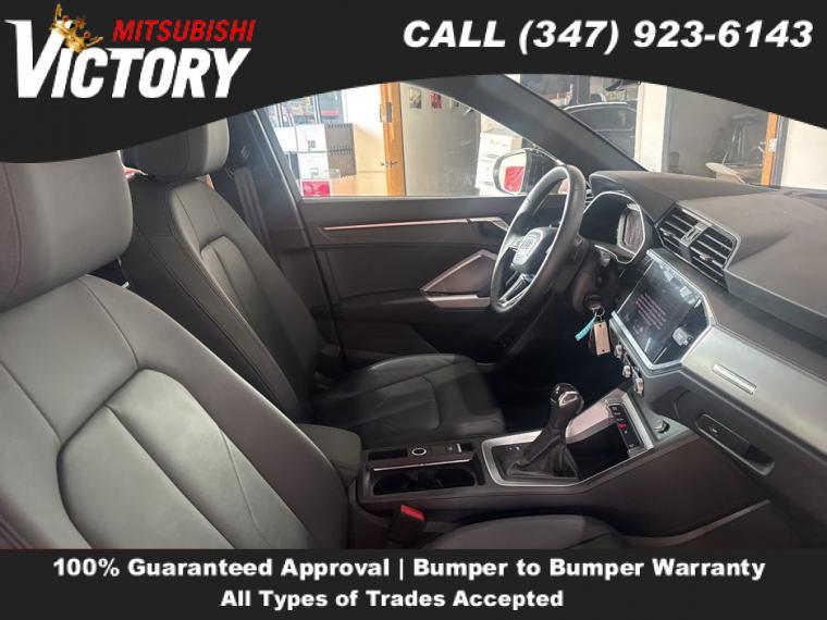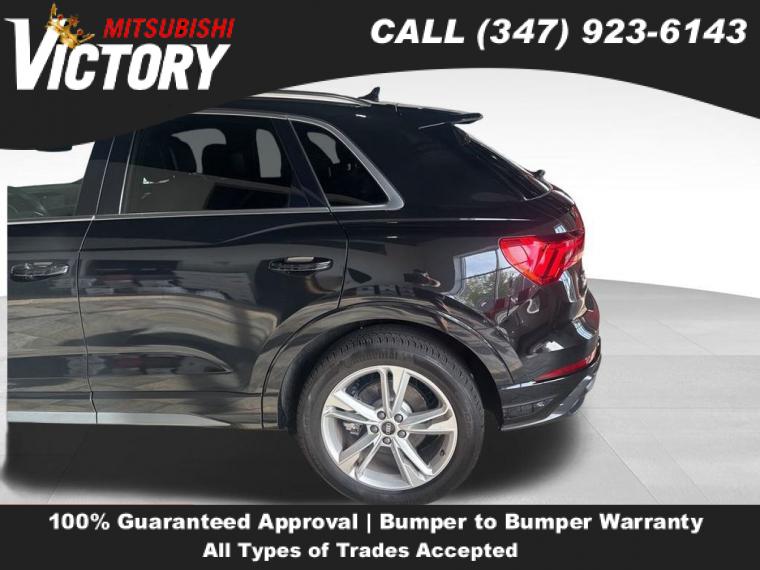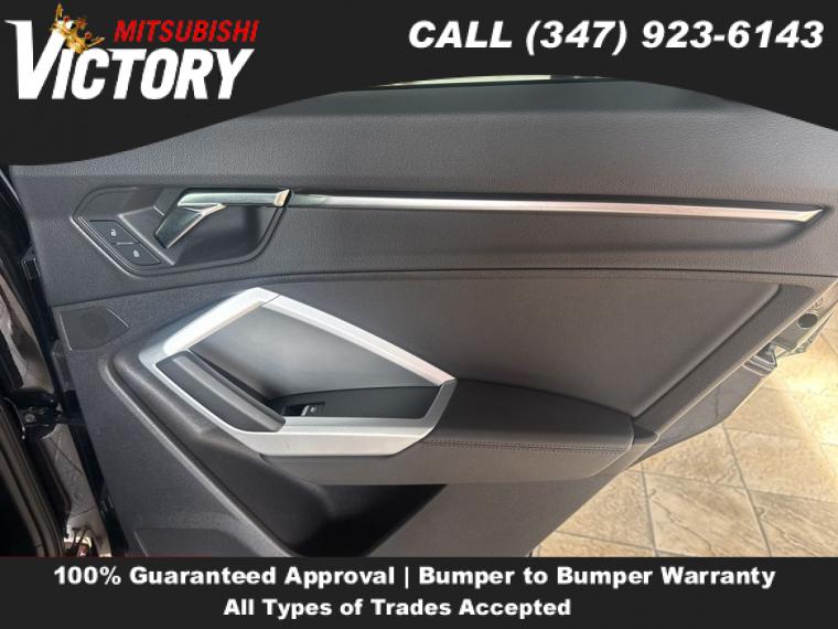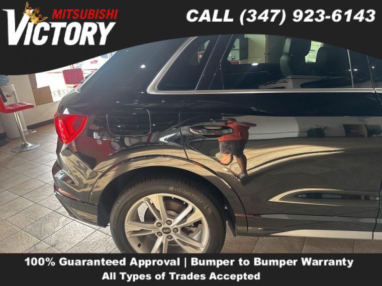 2022 Audi Q3 Premium S Line quattro Black Metallic 4D Sport Utility Save yourself Time and Money - Fill out a credit application online at victorymitsubishi.com and get pre-APPROVED! Financing available for all types of credit with low monthly payment that will fit you budget. Down Payment low as $599. Same day delivery. View our entire inventory by visiting our virtual showroom at victorymitsubishi.com - Only 2 blocks away from Exit 13 off I-95 or Minutes from exit 7 on the Hutchinson Parkway. While we make every effort to ensure the data listed here is correct, there may be instances where the pricing, options or vehicle features may be listed incorrectly. Dealer cannot be held liable for data that is listed incorrectly. to see more pictures of this vehicle or call us at (347) 923-6143 today to schedule your test drive. please refer to dealer’s website for exact pricing and for any incentives that we may apply! Our address is 4070 Boston Road, Bronx, NY 10475.