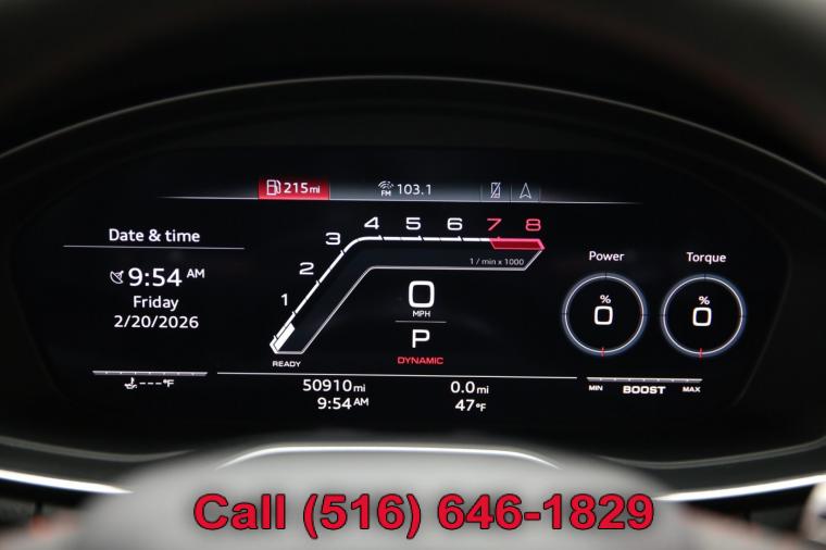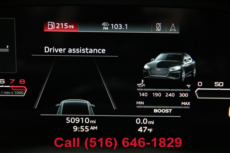 2022 Audi RS5 Sportback finished with a Navarra Blue Metallic exterior and Black interior with Crescendo Red Stitching. Driven 50,910 careful miles since new. This RS5 Sportback had an original list price of $95,025. Options on this RS5 Sportback include the Black Optic Carbon Package, Dynamic Package, RS Driver Assistance Package, Navigation Package, RS Design Package, Dynamic Steering, Side Assist Package, Audi Guard Protection Kit, Black Audi Rings and Badges and much more. This RS5 Sportback just underwent a complete oil and fluid service within the last 20 miles and it drives even better than it looks. The massive V6 biturbo engine is strong and powerful and the 8-speed Tiptronic automatic transmission shifts effortlessly through all of the gears. The steering is tight and precise and the brakes feel just great. This really is a fantastic RS5 to drive. The interior is stunning. The rare Black leather seats with Crescendo Red stitching are in remarkable condition (see pictures) showing just minimal wear to the seats. The dashboard is like new (looks great with the factory navigation system) and even the carpets don't look or feel like they have been stepped on thanks to the factory Audi floor mats that have been protecting them. The exterior is what really sets this particular RS5 apart from the rest. The Navarra Blue Metallic paint is in fantastic condition (see pictures) with no major dents or dings anywhere at all. The paint is bright and shiny with plenty of luster. Add the optional Black Optic Carbon Package and 20 inch wheels mounted on great tires and this Audi really does look special. The 2022 Audi RS5 Sportback really is the ultimate sport sedan. It has unique looks, Audi's legendary Quattro all wheel drive system for all weather and road conditions along with all of Audi's legendary safety, luxury and reliability. There are a few apologies to this Audi that I would like to mention. There are a few typical nicks and chips (see pictures), a couple of light touchups and a bit of the carbon fiber trim has showed it's age (see pictures). Please feel free to call me (Matt 516-646-1829) with any additional questions you may have.