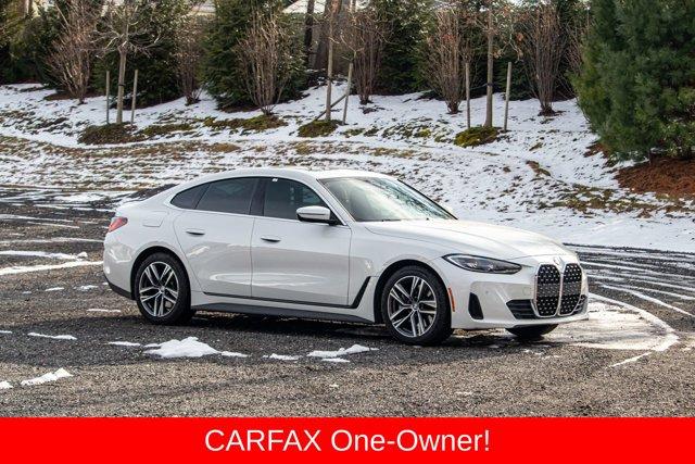 4-Wheel Disc Brakes, AM/FM radio: SiriusXM with 360L, Apple CarPlay & Android Auto Compatibility, Automatic temperature control, Brake assist, Exterior Parking Camera Rear, Four wheel independent suspension, Front dual zone A/C, Fully automatic headlights, Heated Front Seats, Hi-Fi Sound System, Memory seat, Power Front Seats, Power Liftgate, Power moonroof, Power passenger seat, Power steering, Power windows, Rear air conditioning, Security system, Sport Seats, Traction control. Priced below KBB Fair Purchase Price! CARFAX One-Owner. 25/34 City/Highway MPG2022 BMW 4 Series 430i Gran Coupe Mineral White Metallic 430i Gran Coupe RWD 8-Speed Automatic Sport 2.0L 4-Cylinder DOHC 16V TurbochargedSpecial pricing ad/promotion is available to customers who reference such pricing and present the ad at the time of sale otherwise store list price applies. Buyer is responsible to verify options/packages. Any error voids the ad. Certified Pre-Owned program available. Same-day delivery In-stock units only. Dealer-installed accessories are extra. Dealer is not responsible for typographical errors. Every vehicle in inventory is equipped with LoJack at an additional cost. The special price expires at the midnight of the publication date. For return & exchange policy visit the website for details. All Prices will be honored as cash prices. Prices do not include the following fees: Doc Fee, tax, tags, DMV fees. Pre-installed LoJack, and Pre-Certification (vary between vehicles) Please visit or call the dealership for complete details.