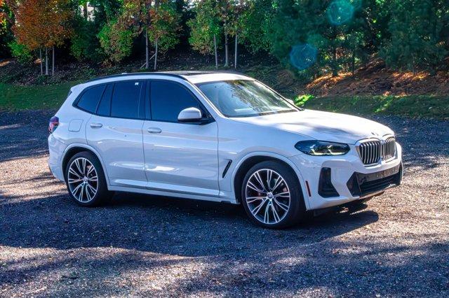 8-Speed Automatic Sport, ABS brakes, Aerodynamic Kit, AM/FM radio: SiriusXM with 360L, Apple CarPlay & Android Auto Compatibility, Brake assist, Comfort Access Keyless Entry, Connected Package Pro, ConnectedDrive Services, Dynamic Damper Control, Dynamic Handling Package, Exterior Parking Camera Rear, Four wheel independent suspension, Front dual zone A/C, Gesture Control, Heated Front Seats, Heated Steering Wheel, Hi-Fi Sound System, Lumbar Support, M Sport Brakes w/Blue Calipers, M Sport Package (337), M Sport Package 2, M Steering Wheel, Memory seat, Navigation, Navigation System, Panoramic Moonroof, Perforated SensaTec Upholstery, Power door mirrors, Power driver seat, Power Front Seats, Power Liftgate, Power passenger seat, Power steering, Power windows, Premium Package 2, Radio data system, Rear air conditioning, Rear window defroster, Remote Engine Start, Remote keyless entry, Roof Rails in High-Gloss Shadowline, Shadowline Exterior Trim, SiriusXM w/360L, Smoke Grey Aluminum Rhombicle Trim, Steering wheel mounted audio controls, Traction control, Turn signal indicator mirrors, Variable Sport Steering, Wheels: 20 x 8.0 Fr & 20 x 9.5 Rr (Style 787M), WiFi Hotspot, Without Exterior Lines Designation. CARFAX One-Owner. 23/29 City/Highway MPG2022 BMW X3 sDrive30i Alpine White sDrive30i RWD 8-Speed Automatic Sport 2.0L I4 TwinPower TurboSpecial pricing ad/promotion is available to customers who reference such pricing and present the ad at the time of sale otherwise store list price applies. Buyer is responsible to verify options/packages. Any error voids the ad. Certified Pre-Owned program available. Same-day delivery In-stock units only. Dealer-installed accessories are extra. Dealer is not responsible for typographical errors. Every vehicle in inventory is equipped with LoJack at an additional cost. The special price expires at the midnight of the publication date. For return & exchange policy visit the website for details. All Prices will be honored as cash prices. Prices do not include the following fees: Doc Fee, tax, tags, DMV fees. Pre-installed LoJack, and Pre-Certification (vary between vehicles) Please visit or call the dealership for complete details.