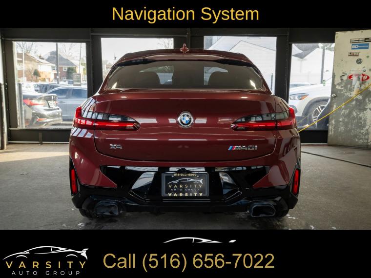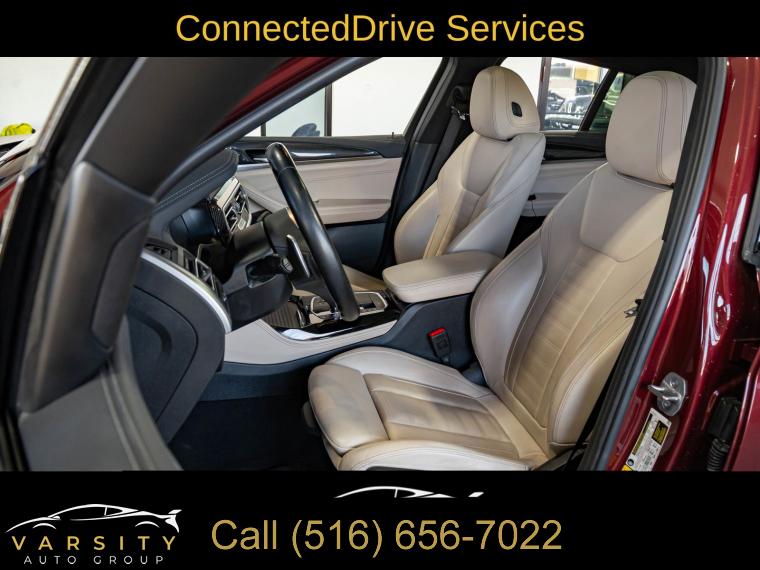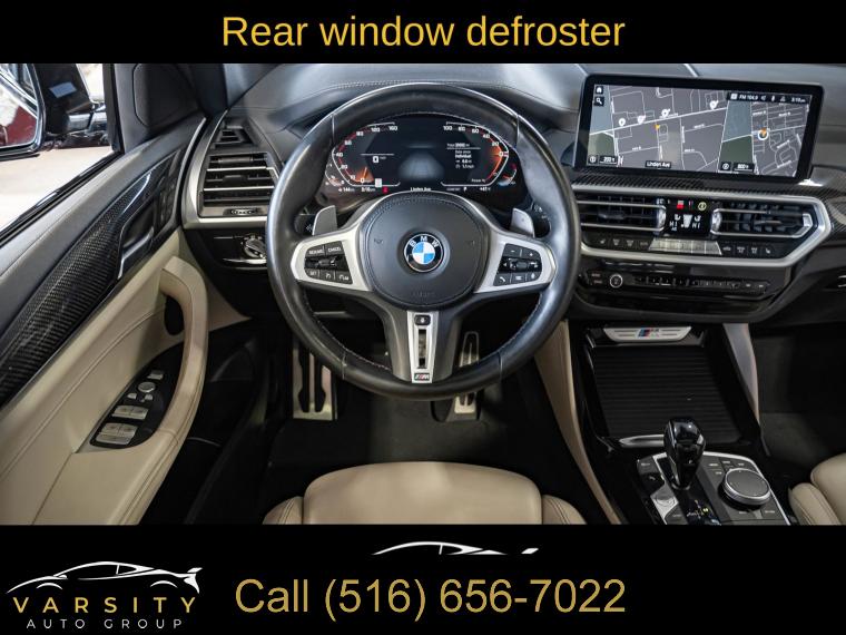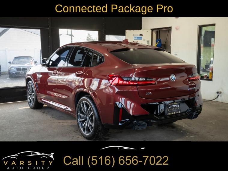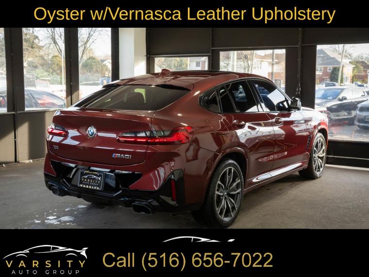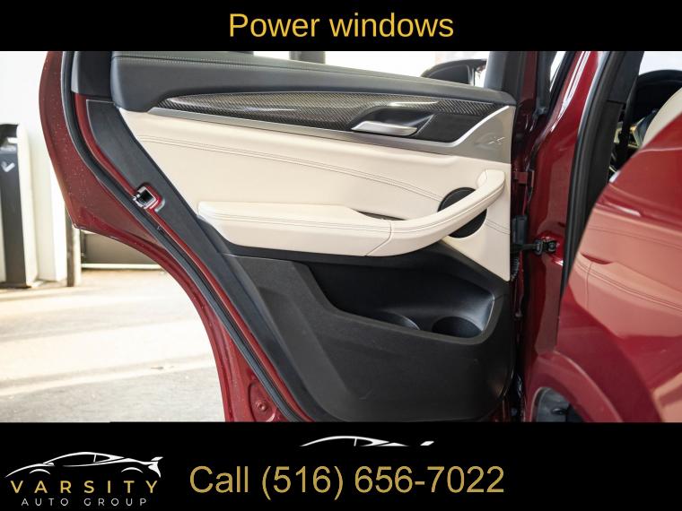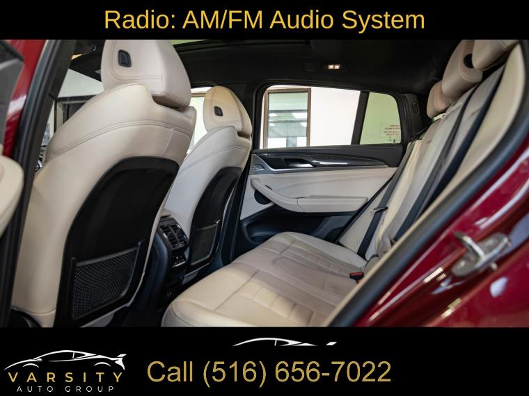 Navigation System, Connected Package Pro, 12 Speakers, AM/FM radio: SiriusXM with 360L, ConnectedDrive Services, Hi-Fi Sound System, Radio Control US, Radio data system, Radio: AM/FM Audio System, SiriusXM w/360L, Air Conditioning, Automatic temperature control, Front dual zone A/C, Rear air conditioning, Rear window defroster, Head-Up Display, Lumbar Support, Memory seat, Power driver seat, Power steering, Power windows, Remote keyless entry, Steering wheel mounted audio controls, Adaptive suspension, Four wheel independent suspension, Speed-sensing steering, Traction control, 4-Wheel Disc Brakes, ABS brakes, Anti-whiplash front head restraints, Dual front impact airbags, Dual front side impact airbags, Emergency communication system: BMW Assist eCall, Front anti-roll bar, Increased Top Speed Limiter, Knee airbag, Low tire pressure warning, Occupant sensing airbag, Overhead airbag, Rear anti-roll bar, Power moonroof: Panorama, Power Liftgate, Brake assist, Electronic Stability Control, Exterior Parking Camera Rear, Auto High-beam Headlights, Delay-off headlights, Fully automatic headlights, Panic alarm, Security system, Speed control, Auto-dimming door mirrors, Bumpers: body-color, Heated door mirrors, Power door mirrors, Spoiler, Turn signal indicator mirrors, Apple CarPlay & Android Auto Compatibility, Auto-dimming Rear-View mirror, BMW Assist eCall, BMW TeleServices, Carbon Fiber Trim, Driver door bin, Driver vanity mirror, Enhanced Bluetooth, Front reading lights, Garage door transmitter, Gesture Control, Heated Steering Wheel, Illuminated entry, Live Cockpit Pro w/Navi, Outside temperature display, Passenger vanity mirror, Rear reading lights, Rear seat center armrest, Sport steering wheel, Tachometer, Telescoping steering wheel, Tilt steering wheel, Trip computer, WiFi Hotspot, Adjustable Seat Width, Front Bucket Seats, Front Center Armrest, Heated Front Seats, Perforated SensaTec Upholstery, Power Front Seats, Power passenger seat, Split folding rear seat, Sport Seats, Passenger door bin, Alloy wheels, Wheels: 19" x 7.5" M Y-Spoke Bi-Color (Style 887M), Wheels: 20" x 8.0" Fr & 20" x 9.5" Rr (Style 787M), Rain sensing wipers, Speed-Sensitive Wipers, Variably intermittent wipers, 3.39 Axle Ratio, 2022 BMW X4 M40i, Piemont Red, Oyster w/Vernasca Leather Upholstery