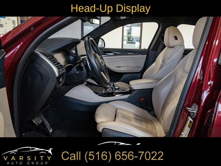 2022 BMW X4 M40i, Piemont Red, Oyster w/Vernasca Leather Upholstery, 12 Speakers, 3.39 Axle Ratio, 4-Wheel Disc Brakes, ABS brakes, Adaptive suspension, Adjustable Seat Width, Air Conditioning, Alloy wheels, AM/FM radio: SiriusXM with 360L, Anti-whiplash front head restraints, Apple CarPlay & Android Auto Compatibility, Auto High-beam Headlights, Auto-dimming door mirrors, Auto-dimming Rear-View mirror, Automatic temperature control, BMW Assist eCall, BMW TeleServices, Brake assist, Bumpers: body-color, Carbon Fiber Trim, Connected Package Pro, ConnectedDrive Services, Delay-off headlights, Driver door bin, Driver vanity mirror, Dual front impact airbags, Dual front side impact airbags, Electronic Stability Control, Emergency communication system: BMW Assist eCall, Enhanced Bluetooth, Exterior Parking Camera Rear, Four wheel independent suspension, Front anti-roll bar, Front Bucket Seats, Front Center Armrest, Front dual zone A/C, Front reading lights, Fully automatic headlights, Garage door transmitter, Gesture Control, Head-Up Display, Heated door mirrors, Heated Front Seats, Heated Steering Wheel, Hi-Fi Sound System, Illuminated entry, Increased Top Speed Limiter, Knee airbag, Live Cockpit Pro w/Navi, Low tire pressure warning, Lumbar Support, Memory seat, Navigation System, Occupant sensing airbag, Outside temperature display, Overhead airbag, Panic alarm, Passenger door bin, Passenger vanity mirror, Perforated SensaTec Upholstery, Power door mirrors, Power driver seat, Power Front Seats, Power Liftgate, Power moonroof: Panorama, Power passenger seat, Power steering, Power windows, Radio Control US, Radio data system, Radio: AM/FM Audio System, Rain sensing wipers, Rear air conditioning, Rear anti-roll bar, Rear reading lights, Rear seat center armrest, Rear window defroster, Remote keyless entry, Security system, SiriusXM w/360L, Speed control, Speed-sensing steering, Speed-Sensitive Wipers, Split folding rear seat, Spoiler, Sport Seats, Sport steering wheel, Steering wheel mounted audio controls, Tachometer, Telescoping steering wheel, Tilt steering wheel, Traction control, Trip computer, Turn signal indicator mirrors, Variably intermittent wipers, Wheels: 19" x 7.5" M Y-Spoke Bi-Color (Style 887M), Wheels: 20" x 8.0" Fr & 20" x 9.5" Rr (Style 787M), WiFi Hotspot. Piemont Red 2022 BMW X4 M40i AWD 8-Speed Automatic Sport 3.0L I6 Turbocharged DOHC 24V LEV3-ULEV70 Odometer is 12446 miles below market average! 21/26 City/Highway MPG