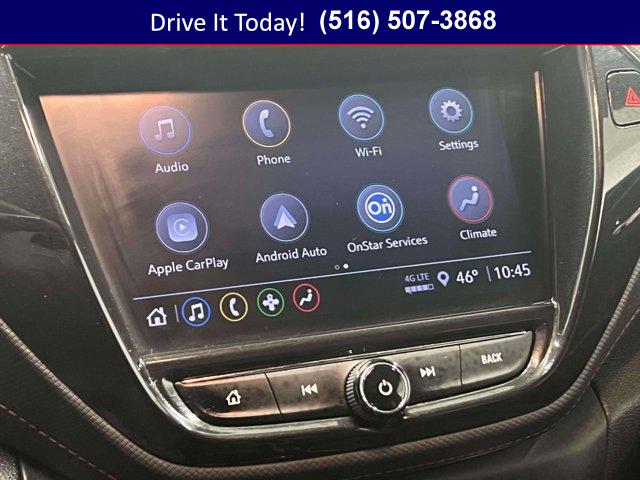 One owner. Crimson Metallic exterior and Jet Black with Red accents interior, RS trim. Heated Seats, Onboard Communications System, Satellite Radio, Back-Up Camera, All Wheel Drive, Turbo Charged, Alloy Wheels, DRIVER CONFIDENCE PACKAGE, CONVENIENCE PACKAGE, TRANSMISSION, 9-SPEED AUTOMATIC, ENGINE, ECOTEC 1.3L I3 TURBO DOHC SID. AUDIO SYSTEM, CHEVROLET INFOTAINMENT. ENGINE, ECOTEC 1.3L I3 TURBO DOHC SIDI WITH VARIABLE VALVE TIMING (VVT). Approx. Original Base Sticker Price: $27,400*.KEY FEATURES INCLUDEHeated Driver SeatOPTION PACKAGESCONVENIENCE PACKAGE includes (C68) automatic climate control air conditioning, (UIJ) 8 diagonal color touchscreen display, (USS) one type-A and one type-C charging only USB ports, (KI6) 120-volt power outlet, (DD8) inside rearview auto-dimming mirror and (DMS) driver and front passenger illuminated vanity mirrors, covered, sliding visors, DRIVER CONFIDENCE PACKAGE includes (UKC) Lane Change Alert with Side Blind Zone Alert, (UFG) Rear Cross Traffic Alert and (UD7) Rear Park Assist (Vehicles built prior to January 10, 2022 include Rear Park Assist. Certain vehicles built on or after January 10, 2022, will be forced to include (00Y) Not Equipped with Rear Park Assist, which removes Rear Park Assist. See dealer for details or the window label for the features on a specific vehicle.), AUDIO SYSTEM, CHEVROLET INFOTAINMENT 3 SYSTEM 7 diagonal color touchscreen, AM/FM stereo. Additional features for compatible phones include: Bluetooth® audio streaming for 2 active devices, voice command pass-through to phone, Apple CarPlay® and Android Auto® capable. (8 screen when (ZL3) Convenience Package and (ZL5) Driver Confidence Package or (SOR) Confidence II Package are ordered.) (STD), ECOTEC 1.3L I3 TURBO DOHC SIDI WITH VARIABLE VALVE TIMING (VVT) (155 hp [115 kW] @ 5600 rpm, 174 lb-ft torque [236 N-m] @ 1600 rpm) (STD), 9-SPEED AUTOMATIC (STD). Chevrolet RS with Crimson Metallic exterior and Jet Black with Red accents interior features a 3 Cylinder Engine with 155 HP at 5600 RPM*.EXPERTS RAVEGreat Gas Mileage: 30 MPG Hwy.OUR OFFERINGSWe hand select the finest automobiles possible, recondition as required so you do not have to worry about anything shortly down the road. Our Certified vehicles for example all have more than 50% brake life, most have brand new brakes installed front and rear and it does not end there.WESTBURY VIPAmericas #1 VIP Plus Program includes Complimentary Loaner Cars, UnlimitedOil & Filter changes for 1 yr. & then included with every factorymaintenance, Courtesy Shuttle to work, home or any other location, ExpressLube 30 minutes or less w/ no appointment necessary, Complimentary NYSI, 24/7 Rescue & Towing.