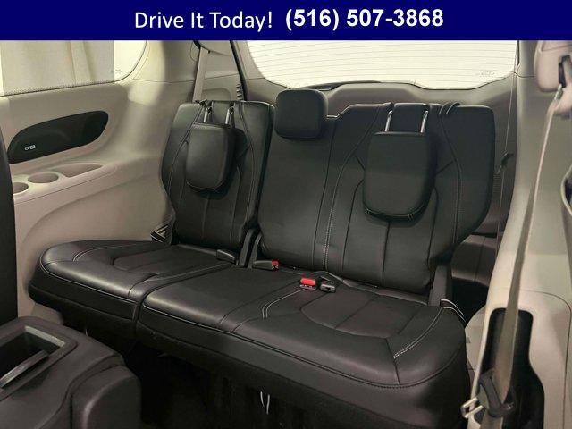 • Low miles for its age set this 2022 Chrysler Pacifica 4D Passenger Van apart, delivering an easygoing ride and family-first comfort every day. Finished in Silver Mist Clearcoat with Black/Alloy/Black leather, it blends clean style with a quiet, refined cabin made for carpools, errands, and longer Northeast road trips. The smooth 3.6L V6 and 9-speed automatic keep acceleration confident and effortless, while front-wheel drive, touring suspension, and integrated active noise cancellation create a calm, composed drive in all seasons.Open the hands free sliding doors and power liftgate and step into true convenience. Seating for eight, perforated leather-trim bucket seats, and heated front and second-row seats keep everyone comfortable when the temperature drops. The heated steering wheel warms cold mornings, rear air conditioning helps balance cabin temps, and memory seating plus power-adjustable driver and front passenger seats make it simple to dial in support for the miles ahead. Stow N Vac integrated vacuum tidies up fast after busy days, and one-touch power windows simplify life at every stop.Your crew will love the Uconnect Theater Family Group. Seatback video screens, Amazon Fire TV Built-In, a Blu-Ray/DVD player, video USB port, and a 3-channel remote control deliver easy entertainment on the go. Up front, the 10.1 inch multimedia display with Uconnect 5 puts Apple CarPlay and Android Auto within quick reach, while available GPS Navigation, HD Radio, SiriusXM with included trial services, and integrated voice command with Bluetooth keep you connected. A 4G LTE Wi-Fi Hot Spot supports devices throughout the cabin, and the FamCam interior camera helps you keep an eye on the back rows. The 13-speaker Alpine audio system with a 506-watt amplifier fills the space with crisp sound, and steering wheel media controls let you adjust without taking your hands far from the wheel.Safety essentials are built in for daily confidence. Multiple airbags including knee airbags, Electronic Stability Control, Traction control, Adaptive Cruise Control, rain sensing wipers, and fully automatic headlights work together to support you on busy commutes and weekend drives. An auto-dimming rearview mirror and bright front fog lights add clarity in changing light, and four-wheel disc brakes with Brake Assist respond decisively & more.With just 31,786 miles, this Pacifica is lightly driven and shows low miles for its age, a smart find for shoppers focused on long-term value and everyday usability.VIP+ ProgramEvery purchase includes our VIP+ Program benefits. Enjoy Unlimited Oil and Filter changes for 1 year, then oil and filter changes included with every factory maintenance thereafter. Receive Complimentary NYS Inspections, Complimentary Loaner Cars, and Complimentary 24/7 Rescue and Towing. These benefits are For Life and Transferable, adding lasting value and peace of mind to your ownership.More About UsOur vehicles are hand selected for quality and long-term reliability, and comprehensive reconditioning is completed prior to sale so you can purchase with confidence. Certified vehicles in our inventory meet strict standards, including brake life no less than 50 percent. As a proud member of the VIP Auto Group serving the community since 1957, we stand by our promise: We Will Satisfy You!Commuter-friendly features and winter-ready comforts make this van a strong choice on Long Island, from school runs to weekend getaways. Across New York, the blend of heated seating, powerful V6 performance, advanced entertainment, and thoughtful storage delivers daily safety, reliability, and lasting value for families who want an affordable used car without compromise.If your looking for a used car on long island that can handle busy schedules and road-trip duty, this 2022 Chrysler Pacifica deserves a closer look. Call now, schedule a test drive, or learn more at WestburyJeep.com, where you can view up-to-date inventory and current pricing. This overview is provided as a general guide to the vehicle?s features and equipment and may vary by vehicle.