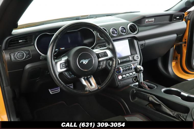 5.0 & Pony Badges, Mirrors & Ambient Lighting, 12 LCD Digital Instrument Cluster w/MyColor, 3.15 Limited Slip Rear Axle Ratio, 4-Wheel Disc Brakes, 9 Speakers, ABS brakes, Active Valve Performance Exhaust, Adaptive Cruise Control, Adjustable head restraints: driver and passenger w/tilt, Air Conditioning, Alloy wheels, AM/FM radio: SiriusXM, AM/FM Stereo, Angled Brush Aluminum Instrument Panel, Auto High-beam Headlights, Auto-dimming Rear-View mirror, Automatic temperature control, Black GT, Brake Assist, Bumpers: body-color, California Special Package, Climate Controlled Heated/Cooled Front Seats, Compass, Convertible roof lining, Delay-off headlights, Driver door bin, Driver Vanity Mirror, Dual front impact airbags, Dual front side impact airbags, Electronic Stability Control, Emergency communication system: 911 Assist, Engine Spun Aluminum Instrument Panel, Equipment Group 401A, Exterior Parking Camera Rear, Floor Mats w/Red Contrast Stitching, Ford Safe & Smart Package, Four wheel independent suspension, Front anti-roll bar, Front Bucket Seats, Front Center Armrest, Front dual zone A/C, Front fog lights, Front reading lights, Fully automatic headlights, Garage door transmitter, Gauge Pack (Oil Pressure & Vacuum), Glass rear window, GT Performance Package, HD Radio, Heated door mirrors, Heated front seats, Heated Steering Wheel, Heavy-Duty Front Springs, Illuminated entry, Integrated Turn Signals, Knee airbag, Larger Brake Rotors, Larger Radiator, Leather Shift Knob, Leather-Trimmed Bucket Seats, Leather-Trimmed Bucket Seats w/Color Accents, Leather-Trimmed Bucket Seats w/Miko Suede Inserts, Low tire pressure warning, Memory Driver Seat, Mesh 45 Aluminum Instrument Panel, Miko Suede Door Inserts w/Red Contrast Stitching, Occupant sensing airbag, Outside temperature display, Overhead console, Panic alarm, Passenger door bin, Passenger Vanity Mirror, Power convertible roof, Power door mirrors, Power Driver Seat, Power Passenger Seat, Power Steering, Power Windows, Premier Trim w/Color Accent Group, Premium Floor Liners Front & Rear (w/Carpet Mats), Premium Floor Mats w/Accent Stitch, Radio data system, Radio: B&O Sound System by Bang & Olufsen, Rain Sensing Wipers, Rear anti-roll bar, Rear Parking Sensors, Rear window defroster, Remote keyless entry, Remote Start System, Security System, SiriusXM Radio, Speed control, Speed-sensing steering, Speed-Sensitive Wipers, Spoiler, Steering wheel mounted audio controls, SYNC 3 Communications & Entertainment System, Tachometer, Telescoping steering wheel, Tilt steering wheel, Traction Control, Trip Computer, Unique Front Honeycomb Grilles w/GT/CS Badge, Unique Stability Control, Variably intermittent wipers, Ventilated front seats, Voice-Activated Touch-Screen Navigation System, Voltmeter, Wheels: 18 x 8 Machined-Face Aluminum, Wheels: 19 x 8.5 Machined-Face Aluminum, Wheels: 19 x 9 Fr & 19 x 9.5 Rr Ebony Black