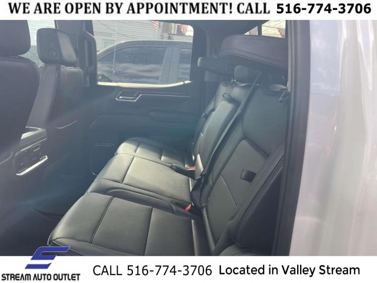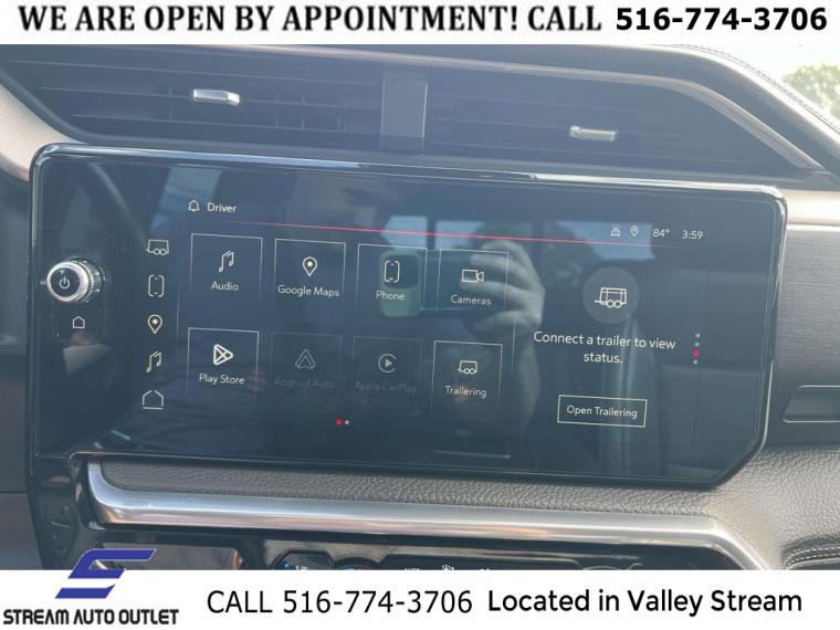 Navigation System, Denali Reserve Package, Preferred Equipment Group 5SA, Technology Package, Trailering Package, 2 USB Ports, 7 Speakers, AM/FM radio: SiriusXM with 360L, Premium audio system: GMC Infotainment System, Premium Bose 7-Speaker Sound System, Radio data system, Radio: Premium GMC Infotainment Audio System, SiriusXM w/360L, Steering Wheel Audio Controls, Air Conditioning, Automatic temperature control, Electric Rear-Window Defogger, Front dual zone A/C, Rear window defroster, 120-Volt Bed Mounted Power Outlet, 120-Volt Instrument Panel Power Outlet, Driver Memory, Memory seat, Power driver seat, Power Front Passenger Windows w/Express Up/Down, Power Front Windows w/Driver Express Up/Down, Power Rear Windows w/Express Down, Power steering, Power windows, Push Button Start, Remote keyless entry, Remote Vehicle Starter System, Steering wheel mounted audio controls, Universal Home Remote, Adaptive suspension, Auto-Locking Rear Differential, Power Rake & Telescoping Steering Column, Speed-sensing steering, Traction control, 4-Wheel Disc Brakes, ABS brakes, Dual front impact airbags, Dual front side impact airbags, Electrical Steering Column Lock, Emergency communication system: OnStar and GMC Connected Services capable, Front anti-roll bar, Front wheel independent suspension, Keyless Open & Start, Low tire pressure warning, Not Equipped w/Steering Column Lock, Occupant sensing airbag, Overhead airbag, Power Door Locks, Power Sunroof, Brake assist, Electronic Stability Control, Hill Descent Control, Auto High-beam Headlights, Delay-off headlights, Front fog lights, Fully automatic headlights, Perimeter Lighting, 3 Years of OnStar Safety & Security, Panic alarm, Security system, Theft Deterrent System (Unauthorized Entry), Adaptive Cruise Control, Speed control, 170 Amp Alternator, Auxiliary External Transmission Oil Cooler, Heavy-Duty Air Filter, Not Equipped w/Dynamic Fuel Management, Auto-dimming door mirrors, Bumpers: body-color, Chrome Header w/Signature Denali Chrome Grille, Chrome Wheel To Wheel Assist Steps, Denali Premium Suspension w/Adaptive Ride Control, Front License Plate Kit, GMC MultiPro Power Steps, Heated door mirrors, IntelliBeam Automatic High Beam On/Off, LED Cargo Area Lighting, Power door mirrors, Rear step bumper, Rear Wheelhouse Liners, Spray-On Pickup Bed Liner w/Denali Logo, 2 Charge/Data USB Ports Inside Center Console, 2 Type-C Charge-Only Rear USB Ports, Apple CarPlay/Android Auto, Auto-dimming Rear-View mirror, Automatic Emergency Braking, Bed View Camera, Buckle to Drive, Color-Keyed Carpeting Floor Covering, Compass, Driver door bin, Driver vanity mirror, Floor-Mounted Center Console, Following Distance Indicator, Forward Collision Alert, Front Pedestrian Braking, Front reading lights, Garage door transmitter, Genuine wood console insert, Genuine wood dashboard insert, Genuine wood door panel insert, GMC Connected Access Capable, HD Surround Vision, Heated Steering Wheel, Heated steering wheel, Illuminated entry, Lane Keep Assist w/Lane Departure Warning, Multicolor 15" Diagonal Head-Up Display, OnStar & GMC Connected Services Capable, Outside temperature display, Overhead console, Passenger vanity mirror, Rear Camera Mirror, Rear Cross Traffic Braking, Rear Pedestrian Detection, Rear reading lights, Rear seat center armrest, Safety Alert Seat, Tachometer, Telescoping steering wheel, Tilt steering wheel, Trailer Camera Provisions, Trailer Side Blind Zone Alert, Trip computer, Ultrasonic Front & Rear Park Assist, Voltmeter, Wi-Fi Hotspot Capable, Wireless Charging, Wireless Phone Projection, 10-Way Power Driver Seat Adjuster w/Lumbar, 10-Way Power Passenger Seat Adjuster w/Lumbar, Forge Perforated Leather Seat Trim, Front Bucket Seats, Front Center Armrest, Heated 2nd Row Outboard Seats, Heated Driver & Front Outboard Passenger Seating, Heated front seats, Heated rear seats, Power passenger seat, Split folding rear seat, Ventilated Driver & Front Passenger Seats, Ventilated front seats, Passenger door bin, Chrome Recovery Hooks, Hitch Guidance, Hitch Guidance w/Hitch View, In-Vehicle Trailering App, Integrated Trailer Brake Controller, Alloy wheels, Wheel Locks (Set of 4) (LPO), Wheels: 20" x 9" Multi-Dimensional Polished Alum, Wheels: 22" x 9" Painted Aluminum, Deep-Tinted Glass, Front Rainsensing Wipers, Power Sliding Rear Window w/Rear Defogger, Rain sensing wipers, Variably intermittent wipers, 3.23 Rear Axle Ratio, * NYS INSPECTION INCLUDED *, * FULL INTERIOR / EXTERIOR DETAIL *, * BLUETOOTH *, * LIMITED NYS LEMON LAW WARRANTY INCLUDED *, *FRESH OIL CHANGE *, * 150 MULTI POINT INSPECTION *