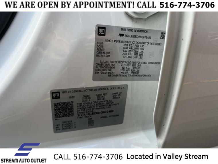For more information on this 2022 GMC Sierra, please call Stream Auto Outlet Valley Stream at (516) 774-3706 or with the contact form on this page. This vehicle's vin number is 3GTUUGED0NG672489 and is recorded as being in stock at Stream Auto Outlet Valley Stream at 324 W Merrick Rd in Valley Stream. See all cars from this dealership.