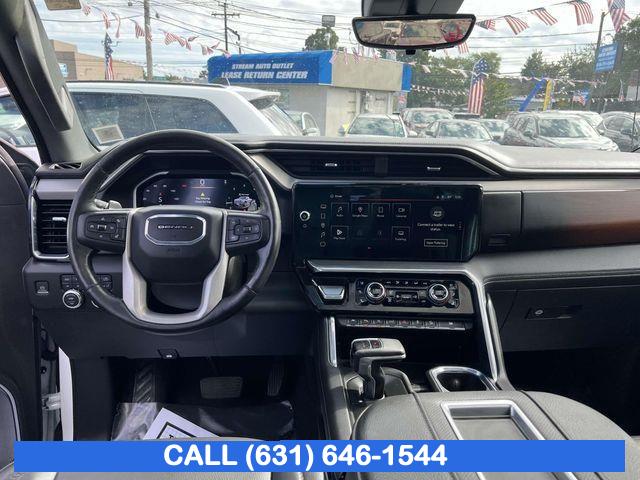 Navigation System, Denali Reserve Package, Preferred Equipment Group 5SA, Technology Package, Trailering Package, 2 USB Ports, 7 Speakers, AM/FM radio: SiriusXM with 360L, Premium audio system: GMC Infotainment System, Premium Bose 7-Speaker Sound System, Radio data system, Radio: Premium GMC Infotainment Audio System, SiriusXM w/360L, Steering Wheel Audio Controls, Air Conditioning, Automatic temperature control, Electric Rear-Window Defogger, Front dual zone A/C, Rear window defroster, 120-Volt Bed Mounted Power Outlet, 120-Volt Instrument Panel Power Outlet, Driver Memory, Memory seat, Power driver seat, Power Front Passenger Windows w/Express Up/Down, Power Front Windows w/Driver Express Up/Down, Power Rear Windows w/Express Down, Power steering, Power windows, Push Button Start, Remote keyless entry, Remote Vehicle Starter System, Steering wheel mounted audio controls, Universal Home Remote, Adaptive suspension, Auto-Locking Rear Differential, Power Rake & Telescoping Steering Column, Speed-sensing steering, Traction control, 4-Wheel Disc Brakes, ABS brakes, Dual front impact airbags, Dual front side impact airbags, Electrical Steering Column Lock, Emergency communication system: OnStar and GMC Connected Services capable, Front anti-roll bar, Front wheel independent suspension, Keyless Open & Start, Low tire pressure warning, Not Equipped w/Steering Column Lock, Occupant sensing airbag, Overhead airbag, Power Door Locks, Power Sunroof, Brake assist, Electronic Stability Control, Hill Descent Control, Auto High-beam Headlights, Delay-off headlights, Front fog lights, Fully automatic headlights, Perimeter Lighting, 3 Years of OnStar Safety & Security, Panic alarm, Security system, Theft Deterrent System (Unauthorized Entry), Adaptive Cruise Control, Speed control, 170 Amp Alternator, Auxiliary External Transmission Oil Cooler, Heavy-Duty Air Filter, Not Equipped w/Dynamic Fuel Management, Auto-dimming door mirrors, Bumpers: body-color, Chrome Header w/Signature Denali Chrome Grille, Chrome Wheel To Wheel Assist Steps, Denali Premium Suspension w/Adaptive Ride Control, Front License Plate Kit, GMC MultiPro Power Steps, Heated door mirrors, IntelliBeam Automatic High Beam On/Off, LED Cargo Area Lighting, Power door mirrors, Rear step bumper, Rear Wheelhouse Liners, Spray-On Pickup Bed Liner w/Denali Logo, 2 Charge/Data USB Ports Inside Center Console, 2 Type-C Charge-Only Rear USB Ports, Apple CarPlay/Android Auto, Auto-dimming Rear-View mirror, Automatic Emergency Braking, Bed View Camera, Buckle to Drive, Color-Keyed Carpeting Floor Covering, Compass, Driver door bin, Driver vanity mirror, Floor-Mounted Center Console, Following Distance Indicator, Forward Collision Alert, Front Pedestrian Braking, Front reading lights, Garage door transmitter, Genuine wood console insert, Genuine wood dashboard insert, Genuine wood door panel insert, GMC Connected Access Capable, HD Surround Vision, Heated Steering Wheel, Heated steering wheel, Illuminated entry, Lane Keep Assist w/Lane Departure Warning, Multicolor 15" Diagonal Head-Up Display, OnStar & GMC Connected Services Capable, Outside temperature display, Overhead console, Passenger vanity mirror, Rear Camera Mirror, Rear Cross Traffic Braking, Rear Pedestrian Detection, Rear reading lights, Rear seat center armrest, Safety Alert Seat, Tachometer, Telescoping steering wheel, Tilt steering wheel, Trailer Camera Provisions, Trailer Side Blind Zone Alert, Trip computer, Ultrasonic Front & Rear Park Assist, Voltmeter, Wi-Fi Hotspot Capable, Wireless Charging, Wireless Phone Projection, 10-Way Power Driver Seat Adjuster w/Lumbar, 10-Way Power Passenger Seat Adjuster w/Lumbar, Forge Perforated Leather Seat Trim, Front Bucket Seats, Front Center Armrest, Heated 2nd Row Outboard Seats, Heated Driver & Front Outboard Passenger Seating, Heated front seats, Heated rear seats, Power passenger seat, Split folding rear seat, Ventilated Driver & Front Passenger Seats, Ventilated front seats, Passenger door bin, Chrome Recovery Hooks, Hitch Guidance, Hitch Guidance w/Hitch View, In-Vehicle Trailering App, Integrated Trailer Brake Controller, Alloy wheels, Wheel Locks (Set of 4) (LPO), Wheels: 20" x 9" Multi-Dimensional Polished Alum, Wheels: 22" x 9" Painted Aluminum, Deep-Tinted Glass, Front Rainsensing Wipers, Power Sliding Rear Window w/Rear Defogger, Rain sensing wipers, Variably intermittent wipers, 3.23 Rear Axle Ratio, * NYS INSPECTION INCLUDED *, * FULL INTERIOR / EXTERIOR DETAIL *, * LIMITED NYS LEMON LAW WARRANTY INCLUDED *, *FRESH OIL CHANGE *, * 150 MULTI POINT INSPECTION *