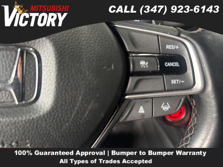 Wheels: 19" Machine-Finished Alloy w/Black Inserts, Fabric w/Synthetic Leather Seat Trim, Radio: 180-Watt AM/FM Audio System, 4-Wheel Disc Brakes, Adaptive Cruise Control: Adaptive Cruise Control (ACC) with Low-Speed Follow, Apple CarPlay/Android Auto, Emergency communication system: HondaLink, Forward collision: Collision Mitigation Braking System (CMBS) + FCW mitigation, Auto High-beam Headlights, Exterior Parking Camera Rear, Speed-Sensitive Wipers, Lane Departure Warning System, 8 Speakers, Front beverage holders, Variably intermittent wipers, Trip computer, Traction control, Tilt steering wheel, Telescoping steering wheel, Steering wheel mounted audio controls, Split folding rear seat, Speed-sensing steering, Speed control, Security system, Remote keyless entry, Rear window defroster, Rear seat center armrest, Rear anti-roll bar, Radio data system, Power windows, Power steering, Power driver seat, Power door mirrors, Passenger vanity mirror, Passenger door bin, Panic alarm, Overhead console, Overhead airbag, Outside temperature display, Occupant sensing airbag, Low tire pressure warning, Leather steering wheel, Knee airbag, Illuminated entry, Fully automatic headlights, Front reading lights, Front fog lights, Front dual zone A/C, Front anti-roll bar, Four wheel independent suspension, Dual front side impact airbags, Dual front impact airbags, Driver vanity mirror, Driver door bin, Delay-off headlights, Bumpers: body-color, Brake assist, Automatic temperature control, Alloy wheels, AM/FM radio, ABS brakes, Tachometer, Spoiler, Leather Shift Knob, Front Center Armrest, Front Bucket Seats, Electronic Stability Control, Air Conditioning