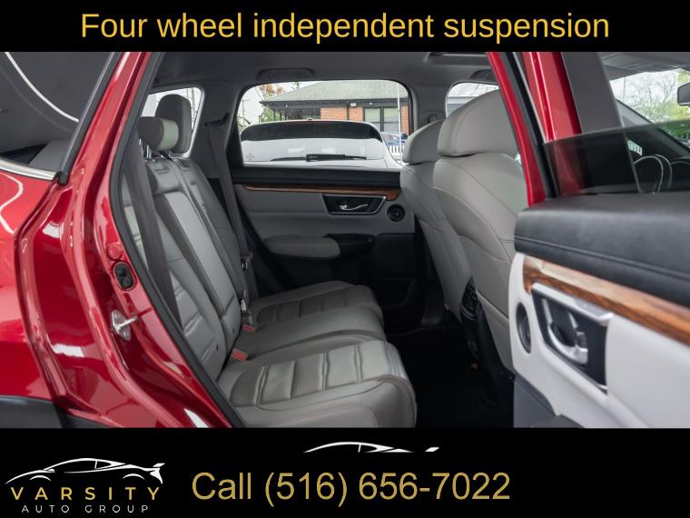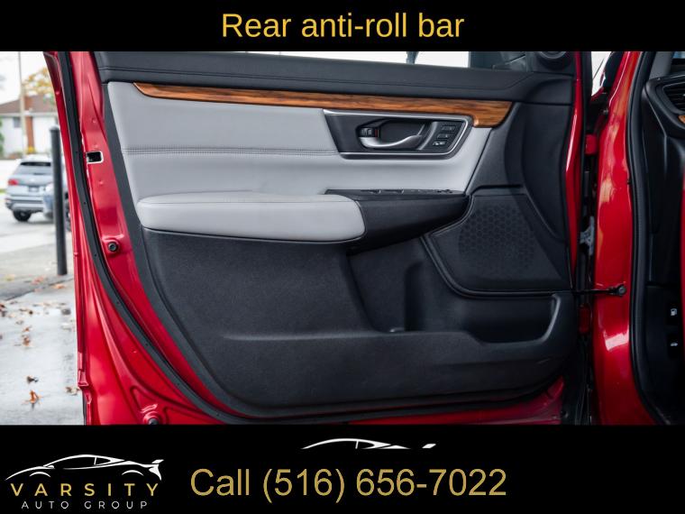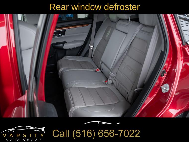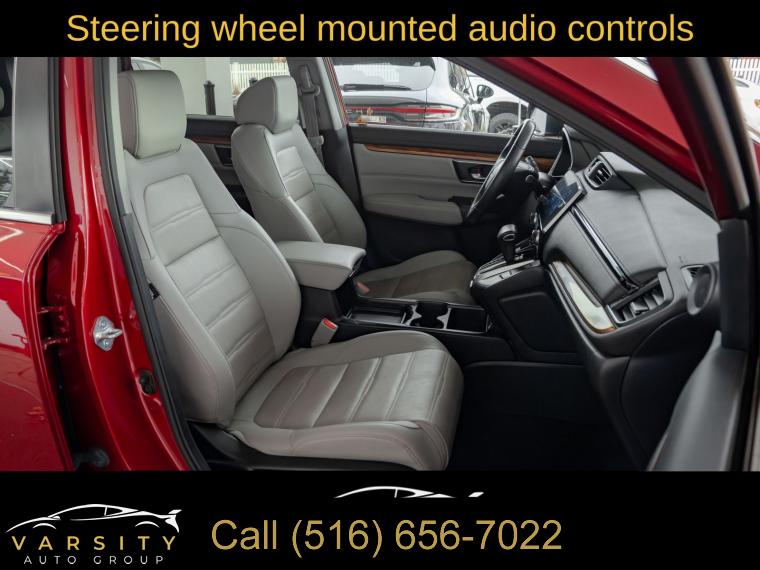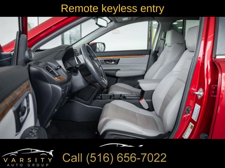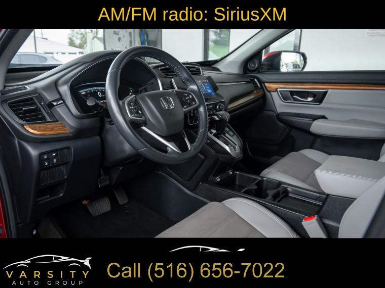 8 Speakers, AM/FM radio: SiriusXM, Radio data system, Radio: 180-Watt AM/FM/HD/SiriusXM Audio System, Air Conditioning, Automatic temperature control, Front dual zone A/C, Rear window defroster, Memory seat, Power driver seat, Power steering, Power windows, Remote keyless entry, Steering wheel mounted audio controls, Four wheel independent suspension, Speed-sensing steering, Traction control, 4-Wheel Disc Brakes, ABS brakes, Dual front impact airbags, Dual front side impact airbags, Front anti-roll bar, Low tire pressure warning, Occupant sensing airbag, Overhead airbag, Rear anti-roll bar, Power moonroof, Power Liftgate, Blind Spot Information (BSI) System warning, Brake assist, Electronic Stability Control, Forward collision: Collision Mitigation Braking System (CMBS) + FCW mitigation, Exterior Parking Camera Rear, Auto High-beam Headlights, Delay-off headlights, Front fog lights, Panic alarm, Security system, Adaptive Cruise Control: Adaptive Cruise Control (ACC) with Low-Speed Follow, Speed control, Bumpers: body-color, Heated door mirrors, Power door mirrors, Spoiler, Turn signal indicator mirrors, Apple CarPlay/Android Auto, Auto-dimming Rear-View mirror, Compass, Driver door bin, Driver vanity mirror, Front reading lights, Garage door transmitter: HomeLink, Illuminated entry, Leather Shift Knob, Outside temperature display, Overhead console, Passenger vanity mirror, Rear seat center armrest, Tachometer, Telescoping steering wheel, Tilt steering wheel, Trip computer, Front Bucket Seats, Front Center Armrest, Heated Front Bucket Seats, Heated front seats, Leather Seat Trim, Power passenger seat, Split folding rear seat, Passenger door bin, 18" Alloy Wheels, Alloy wheels, Rear window wiper, Speed-Sensitive Wipers, Variably intermittent wipers, 5.64 Axle Ratio, The Price you See, is the Price You Pay!!!, Honda CR-V EX-L, Radiant Red Metallic, AWD, One Owner, Clean CARFAX