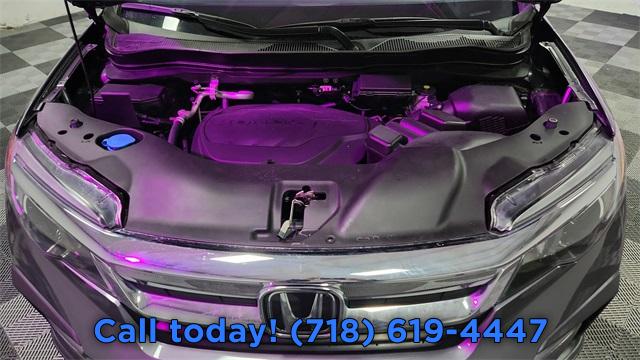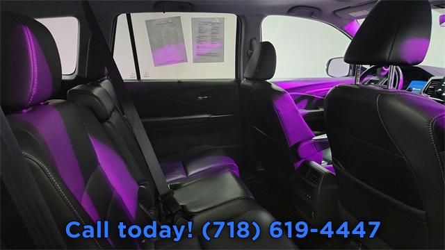 7 Speakers, AM/FM radio: SiriusXM, Radio data system, Radio: 215-Watt Audio System, Air Conditioning, Automatic temperature control, Front dual zone A/C, Rear air conditioning, Rear window defroster, Memory seat, Power driver seat, Power steering, Power windows, Remote keyless entry, Steering wheel mounted audio controls, A/V remote: CabinControl, Four wheel independent suspension, Speed-sensing steering, Traction control, 4-Wheel Disc Brakes, ABS brakes, Dual front impact airbags, Dual front side impact airbags, Emergency communication system: HondaLink Assist, Front anti-roll bar, Low tire pressure warning, Occupant sensing airbag, Overhead airbag, Rear anti-roll bar, Power moonroof, Power Liftgate, Blind Spot Information (BSI) System warning, Brake assist, Electronic Stability Control, Forward collision: Collision Mitigation Braking System (CMBS) + FCW mitigation, Lane departure: Lane Keeping Assist System (LKAS) active, Exterior Parking Camera Rear, Auto High-beam Headlights, Delay-off headlights, Front fog lights, Fully automatic headlights, Panic alarm, Security system, Speed control, Bumpers: body-color, Heated door mirrors, Power door mirrors, Spoiler, Turn signal indicator mirrors, Apple CarPlay/Android Auto, Auto-dimming Rear-View mirror, Driver door bin, Driver vanity mirror, Front reading lights, Garage door transmitter: HomeLink, Illuminated entry, Outside temperature display, Overhead console, Passenger vanity mirror, Rear reading lights, Rear seat center armrest, Tachometer, Telescoping steering wheel, Tilt steering wheel, Trip computer, 3rd row seats: split-bench, Front Bucket Seats, Front Center Armrest, Heated Front Bucket Seats, Heated front seats, Leather Seat Trim, Power passenger seat, Reclining 3rd row seat, Split folding rear seat, Passenger door bin, 18" Machine-Finished Alloy Wheels, Alloy wheels, Rear window wiper, Speed-Sensitive Wipers, Variably intermittent wipers, 4.33 Axle Ratio