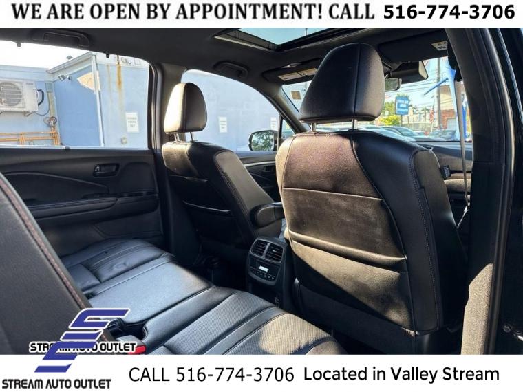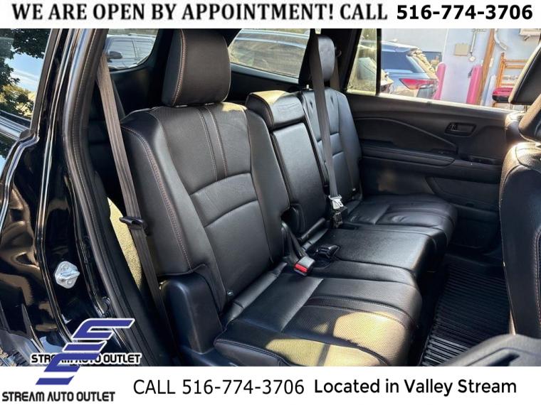 Navigation system: Honda Satellite-Linked Navigation System, 7 Speakers, AM/FM radio: SiriusXM, Radio data system, Radio: 215-Watt Audio System, Air Conditioning, Automatic temperature control, Front dual zone A/C, Rear air conditioning, Rear window defroster, Memory seat, Power driver seat, Power steering, Power windows, Remote keyless entry, Steering wheel mounted audio controls, A/V remote: CabinControl, Four wheel independent suspension, Speed-sensing steering, Traction control, 4-Wheel Disc Brakes, ABS brakes, Dual front impact airbags, Dual front side impact airbags, Emergency communication system: HondaLink Assist, Front anti-roll bar, Low tire pressure warning, Occupant sensing airbag, Overhead airbag, Rear anti-roll bar, Power moonroof, Power Liftgate, Blind Spot Information (BSI) System warning, Brake assist, Electronic Stability Control, Forward collision: Collision Mitigation Braking System (CMBS) + FCW mitigation, Lane departure: Lane Keeping Assist System (LKAS) active, Exterior Parking Camera Rear, Auto High-beam Headlights, Delay-off headlights, Front fog lights, Fully automatic headlights, Panic alarm, Security system, Speed control, Bumpers: body-color, Heated door mirrors, Power door mirrors, Roof rack: rails only, Spoiler, Turn signal indicator mirrors, Apple CarPlay/Android Auto, Auto-dimming Rear-View mirror, Driver door bin, Driver vanity mirror, Front reading lights, Garage door transmitter: HomeLink, Illuminated entry, Outside temperature display, Overhead console, Passenger vanity mirror, Rear reading lights, Rear seat center armrest, Tachometer, Telescoping steering wheel, Tilt steering wheel, Trip computer, 3rd row seats: split-bench, Front Bucket Seats, Front Center Armrest, Heated Front Bucket Seats, Heated front seats, Leather Seat Trim, Power passenger seat, Reclining 3rd row seat, Split folding rear seat, Passenger door bin, Alloy wheels, Wheels: 18" Exclusive Gloss Black Alloy, Rear window wiper, Speed-Sensitive Wipers, Variably intermittent wipers, 4.33 Axle Ratio, * NYS INSPECTION INCLUDED *, * FULL INTERIOR / EXTERIOR DETAIL *, * BACK UP CAMERA *, * NAVIGATION SYSTEM *, * BLUETOOTH *, * SUNROOF / MOONROOF*, * LEATHER SEATS *, * LIMITED NYS LEMON LAW WARRANTY INCLUDED *, *FRESH OIL CHANGE *, * 150 MULTI POINT INSPECTION *, APPLE CAR PLAY/ANDROID AUTO