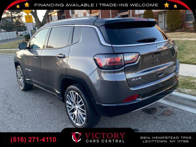 All pricing and details are believed to be accurate, but we do not warrant or guarantee such accuracy. The prices shown above may vary from region to region, as will incentives, and are subject to change. All cars are sold cosmetically As-Is. Vehicle information is based on standard equipment and may vary from vehicle to vehicle. Call or email for complete vehicle specific information. Price Does not include tax, title, license, destination charges, finance charges, or any reconditioning fees. Our special Internet pricing cannot be extended without a printed copy of the online pricing. The in-store price may exceed our special online pricing. Sorry but we cannot extend special pricing without a printed copy of the on-line pricing. To take advantage of our special Internet discounts, please print this page and present it to your salesperson at the BEGINNING of the transaction. Special Internet pricing posted on this ad/coupon/promotion is only available to customers who reference such pricing & present the ad at time of sale otherwise our store standard list price applies. Please be advised this ad is a Special Internet only ad. Prices can be modified and adjusted weekly, daily and sometimes hourly due to inquiries, bidding and website traffic on any Vehicles. All displayed inventory is subject to prior sale and all prices expire at midnight on the date displayed. Every reasonable effort has been made to ensure the accuracy of the information contained on this site, however absolute accuracy cannot be guaranteed. Advertised special excludes state tax, title, license, registration, NY state inspection, NYS tire recycling fee, finance charges, and dealer fees if applicable. Please verify any information in question with the dealership sales manager. This is easily done by calling us at (516) 271-4110 or by visiting us at the dealership. **With approved credit. Granite Crystal Metallic Clearcoat 2022 Jeep Compass Limited 4WD 9-Speed 948TE Automatic 2.4L I4 4WD.