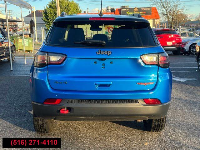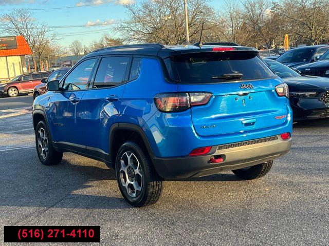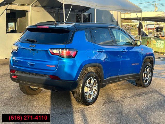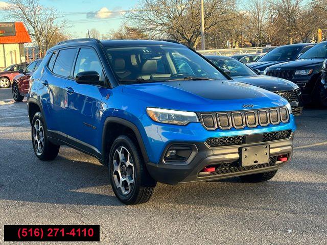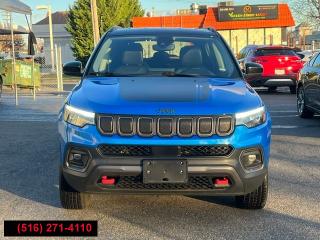 All pricing and details are believed to be accurate, but we do not warrant or guarantee such accuracy. The prices shown above may vary from region to region, as will incentives, and are subject to change. All cars are sold cosmetically As-Is. Vehicle information is based on standard equipment and may vary from vehicle to vehicle. Call or email for complete vehicle specific information. Price Does not include tax, title, license, destination charges, finance charges, or any reconditioning fees. Our special Internet pricing cannot be extended without a printed copy of the online pricing. The in-store price may exceed our special online pricing. Sorry but we cannot extend special pricing without a printed copy of the on-line pricing. To take advantage of our special Internet discounts, please print this page and present it to your salesperson at the BEGINNING of the transaction. Special Internet pricing posted on this ad/coupon/promotion is only available to customers who reference such pricing & present the ad at time of sale otherwise our store standard list price applies. Please be advised this ad is a Special Internet only ad. Prices can be modified and adjusted weekly, daily and sometimes hourly due to inquiries, bidding and website traffic on any Vehicles. All displayed inventory is subject to prior sale and all prices expire at midnight on the date displayed. Every reasonable effort has been made to ensure the accuracy of the information contained on this site, however absolute accuracy cannot be guaranteed. Advertised special excludes state tax, title, license, registration, NY state inspection, NYS tire recycling fee, finance charges, and dealer fees if applicable. Please verify any information in question with the dealership sales manager. This is easily done by calling us at (516) 271-4110 or by visiting us at the dealership. **With approved credit. Laser Blue Pearlcoat 2022 Jeep Compass Trailhawk 4WD 9-Speed 948TE Automatic 2.4L I4 4WD.