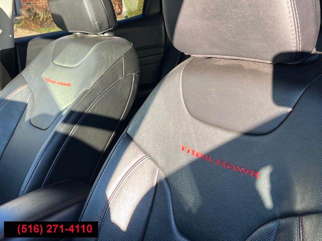 GPS Navigation, Quick Order Package 2GE, Trailhawk Elite Group, 6 Speakers, AM/FM radio: SiriusXM, HD Radio, Integrated Voice Command w/Bluetooth, No Satellite Coverage HI/AK/PR/VI/GU, Radio: Uconnect 5 Nav w/10.1" Display, Radio: Uconnect 5 w/10.1" Display, SiriusXM Radio Service, SiriusXM Satellite Radio, SiriusXM w/360L, Air Conditioning, Automatic temperature control, Front dual zone A/C, Rear window defroster, Driver Seat Memory, Power steering, Power windows, Remote keyless entry, Steering wheel mounted audio controls, Four wheel independent suspension, Traction control, 4-Wheel Disc Brakes, ABS brakes, Anti-whiplash front head restraints, Dual front impact airbags, Dual front side impact airbags, Emergency communication system: SiriusXM Guardian, Foot Activated Open 'N Go Liftgate, Front anti-roll bar, Knee airbag, Low tire pressure warning, Occupant sensing airbag, Overhead airbag, Rear anti-roll bar, Remote Start System, Power Liftgate, Brake assist, Electronic Stability Control, ParkView Rear Back-Up Camera, Auto High-beam Headlights, Delay-off headlights, Front fog lights, Fully automatic headlights, Panic alarm, Security system, Speed control, Bumpers: body-color, Front License Plate Bracket, Heated door mirrors, LED Low/Highbeam Projector Headlamps, Power door mirrors, Premium LED Fog Lamps, Premium Taillamps, Roof rack: rails only, Spoiler, Turn signal indicator mirrors, 10.1" Touchscreen Display, 115V Auxiliary Power Outlet, 2nd Row USB Type A/C Charge Only, 4G LTE Wi-Fi Hot Spot, Alexa Built-In, Auto-dimming Rear-View mirror, Cluster 10.25" TFT Color Display, Compass, Connected Travel & Traffic Services, Disassociated Touchscreen Display, Driver door bin, Driver vanity mirror, For Details, Visit DriveUconnect.com, For More Info, Call 800-643-2112, Front reading lights, Global Telematics Box Module (TBM), Illuminated entry, Leather Shift Knob, Leather Wrapped Steering Wheel, Outside temperature display, Overhead console, Passenger vanity mirror, Premium Cloth/Leather Trim Bucket Seats, Rear seat center armrest, Reversible Carpet/Vinyl Cargo Mat, SiriusXM Guardian - Included Trial (B), Tachometer, Telescoping steering wheel, Tilt steering wheel, Trip computer, Vehicle Information Center, 2nd Row Heated Seats, Front Bucket Seats, Heated Front Seats, Power 8-Way Adjust Front Passenger Seat, Power Adjust 8-Way Driver Seat, Premium Leather Trimmed Bucket Seats, Split folding rear seat, Ventilated Front Seats, Front Center Armrest w/Storage, Passenger door bin, Alloy wheels, Wheels: 17" x 6.5" Painted Diamond Cut Aluminum, Rain sensing wipers, Rear window wiper, Variably intermittent wipers, Windshield Wiper De-Icer, 4.334 Axle Ratio