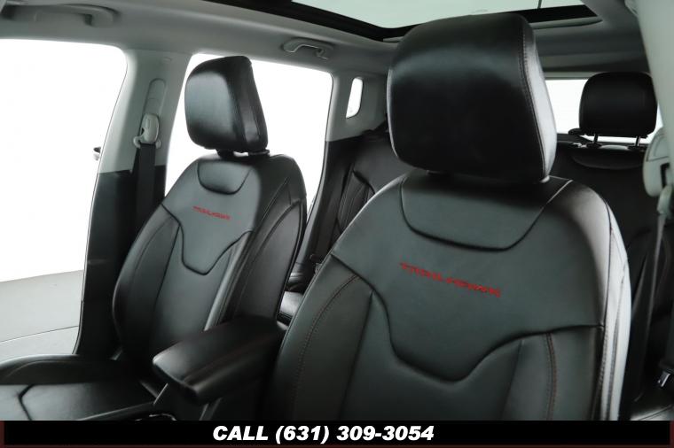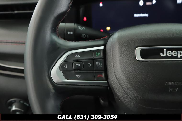 Call 800-643-2112, Visit DriveUconnect.com, 10.1 Touchscreen Display, 115V Auxiliary Power Outlet, 2nd Row Heated Seats, 2nd Row USB Type A/C Charge Only, 4 Pin Wiring Harness, 4-Wheel Disc Brakes, 4.334 Axle Ratio, 4G LTE Wi-Fi Hot Spot, 6 Speakers, ABS brakes, Air Conditioning, Alexa Built-In, Alloy wheels, AM/FM radio: SiriusXM, Anti-whiplash front head restraints, Auto High-beam Headlights, Auto-dimming Rear-View mirror, Automatic temperature control, Brake Assist, Bumpers: body-color, Class III Receiver Hitch, Cluster 10.25 TFT Color Display, Compass, Connected Travel & Traffic Services, Delay-off headlights, Disassociated Touchscreen Display, Driver door bin, Driver Seat Memory, Driver Vanity Mirror, Dual front impact airbags, Dual front side impact airbags, Electronic Stability Control, Emergency communication system: SiriusXM Guardian, Foot Activated Open 'N Go Liftgate, For Details, For More Info, Four wheel independent suspension, Front anti-roll bar, Front beverage holders, Front Bucket Seats, Front Center Armrest w/Storage, Front dual zone A/C, Front fog lights, Front License Plate Bracket, Front reading lights, Fully automatic headlights, Global Telematics Box Module (TBM), GPS Navigation, HD Radio, Heated door mirrors, Heated Front Seats, Illuminated entry, Integrated Voice Command w/Bluetooth, Knee airbag, Leather Shift Knob, Leather Wrapped Steering Wheel, LED Low/Highbeam Projector Headlamps, Low tire pressure warning, No Satellite Coverage HI/AK/PR/VI/GU, Occupant sensing airbag, Outside temperature display, Overhead airbag, Overhead console, Panic alarm, ParkView Rear Back-Up Camera, Passenger door bin, Passenger Vanity Mirror, Power 8-Way Adjust Front Passenger Seat, Power Adjust 8-Way Driver Seat, Power door mirrors, Power Front/Fixed Rear Full Sunroof, Power Liftgate, Power Steering, Power Windows, Premium Alpine Speaker System, Premium Cloth/Leather Trim Bucket Seats, Premium Leather Trimmed Bucket Seats, Premium LED Fog Lamps, Premium Taillamps, Quick Order Package 2GE, Radio: Uconnect 5 Nav w/10.1 Display, Radio: Uconnect 5 w/10.1 Display, Rain Sensing Wipers, Rear anti-roll bar, Rear seat center armrest, Rear window defroster, Rear window wiper, Remote keyless entry, Remote Start System, Reversible Carpet/Vinyl Cargo Mat, Roof rack: rails only, Security System, SiriusXM Guardian - Included Trial (B), SiriusXM Radio Service, SiriusXM Satellite Radio, SiriusXM w/360L, Speed control, Split folding rear seat, Spoiler, Steering wheel mounted audio controls, Sun and Sound Group, Tachometer, Telescoping steering wheel, Tilt steering wheel, Traction Control, Trailer Tow Group, Trailhawk Elite Group, Trip Computer, Turn signal indicator mirrors, Variably intermittent wipers, Vehicle Information Center, Ventilated Front Seats, Wheels: 17 x 6.5 Painted Diamond Cut Aluminum, Windshield Wiper De-Icer