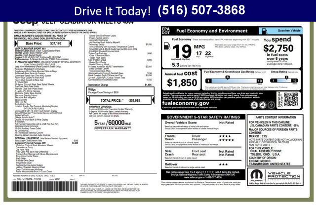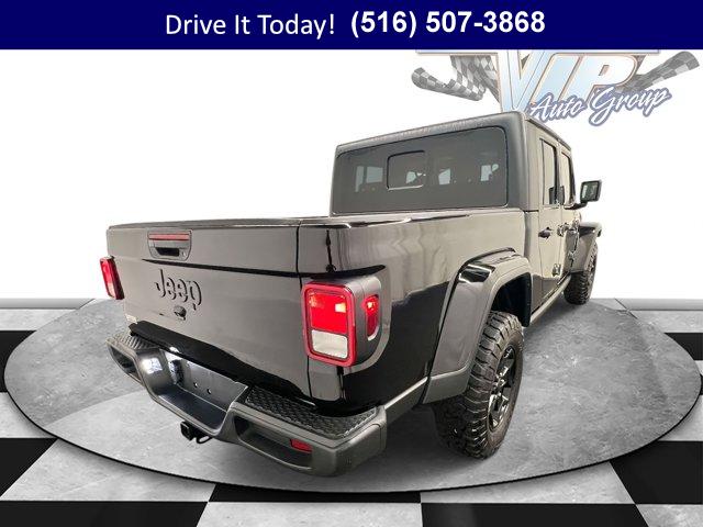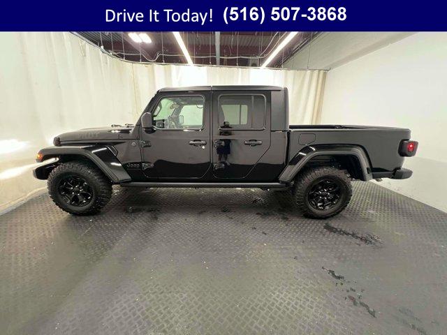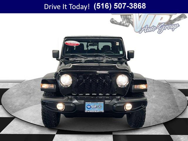 • Unleash adventure in this Certified 2022 Jeep Gladiator Willys! One-owner, Clean Carfax, and built to conquer with rugged 4x4 capability, bold Willys styling, and legendary Jeep toughness. Ready for trails or townyour ultimate pickup awaits! Every Westbury Pre-owned vehicle is thoroughly checked and reconditioned. All this vehicle needs is you!BUY WITH CONFIDENCE7-Year/100,000-Mile Powertrain Limited warranty, Rental Car Allowance, 24-Hour Towing and Roadside Assistance, Carfax Vehicle History Report, 3-Month/3,000-Mile Maximum Care Coverage, Introductory 3-month subscription to SiriusXM Satellite RadioOPTION PACKAGESQUICK ORDER PACKAGE 24W WILLYS Engine: 3.6L V6 24V VVT UPG I w/ESS, Transmission: 8-Speed Automatic (850RE), Convenience Group, Universal Garage Door Opener, Speed Sensitive Power Locks, Protection Sill Rails, Leather Wrapped Steering Wheel, 4-Wheel Drive Decal, Black Grille, Body Color Fender Flares (2-Piece), Front 1-Touch Down Power Windows, Front Heavy Duty Red Accent Shock Absorbers, Security Alarm, Willys, Mold In Color Bumper w/Gloss Black, Automatic Headlamps, Willys Hood Decal, Rear Heavy Duty Red Accent Shock Absorbers, 97 MPH Vehicle Max Speed Calibration, Power Heated Mirrors, Daytime Running Lamp System, Power Tailgate Lock, Bridgestone Brand Tires, Remote Keyless Entry, Sun Visors w/Illuminated Vanity Mirrors, TRANSMISSION: 8-SPEED AUTOMATIC (850RE) Transmission Skid Plate, Selec-Speed Control, BLACK 3-PIECE HARD TOP Freedom Panel Storage Bag, Rear Window Defroster, Rear Sliding Window, TECHNOLOGY GROUP Air Conditioning w/Auto Temp Control, 2-Door Passive Entry, Front Door Locks, SiriusXM Satellite Radio, SiriusXM Radio Service, Cluster 7.0 TFT Color Display, For More Info, Call 800-643-2112, COLD WEATHER GROUP Heated Steering Wheel, Heated Front Seats, TRAILER TOW PACKAGE Trailer Hitch Zoom, Class IV Receiver Hitch, Heavy Duty Engine Cooling, 240 Amp Alternator, ENGINE: 3.6L V6 24V VVT UPG I W/ESS (STD).KEY FEATURES INCLUDE4x4, Smart Device Integration. Jeep Willys with Black Clearcoat exterior and Black interior features a V6 Cylinder Engine with 285 HP at 6400 RPM*.BUY FROM AN AWARD WINNING DEALERWe hand select the finest automobiles possible, recondition as required so you do not have to worry about anything shortly down the road. Our Certified vehicles for example all have more than 50% brake life, most have brand new brakes installed front and rear and it does not end there.WESTBURY VIPAmerica's #1 VIP Plus Program includes Complimentary Loaner Cars, UnlimitedOil & Filter changes for 1 yr. & then included with every factorymaintenance, Courtesy Shuttle to work, home or any other location, ExpressLube 30 minutes or less w/ no appointment necessary, Complimentary NYSI, 24/7 Rescue & Towing.