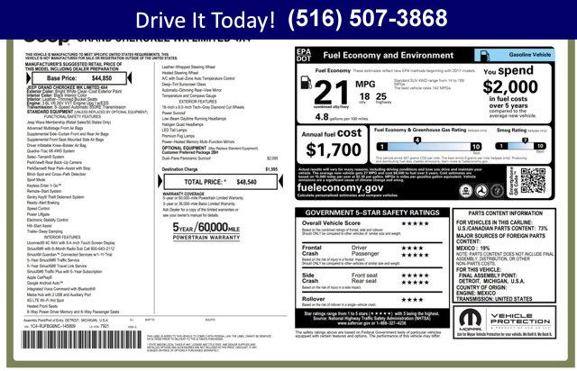 Adventure meets elegance in this One-Owner 2022 Jeep Grand Cherokee WK Limited! With a Clean Carfax, refined interior, and legendary Jeep capability, its ready for every journey - city or trail. Dont miss your chance to own confidence and comfort! Every Westbury Pre-owned vehicle is thoroughly checked and reconditioned. All this vehicle needs is you!KEY FEATURES INCLUDELeather Seats, Navigation, 4x4, Power Liftgate, Heated Driver SeatOPTION PACKAGESDUAL-PANE PANORAMIC SUNROOF, ENGINE: 3.6L V6 24V VVT UPG I W/ESS (STD), TRANSMISSION: 8-SPEED AUTOMATIC (850RE) (STD). Jeep Limited with Bright White Clearcoat exterior and Black interior features a V6 Cylinder Engine with 293 HP at 6400 RPM*.EXPERTS ARE SAYINGGreat Gas Mileage: 25 MPG Hwy.VISIT US TODAYWe hand select the finest automobiles possible, recondition as required so you do not have to worry about anything shortly down the road. Our Certified vehicles for example all have more than 50% brake life, most have brand new brakes installed front and rear and it does not end there.WESTBURY VIPAmerica's #1 VIP Plus Program includes Complimentary Loaner Cars, UnlimitedOil & Filter changes for 1 yr. & then included with every factorymaintenance, Courtesy Shuttle to work, home or any other location, ExpressLube 30 minutes or less w/ no appointment necessary, Complimentary NYSI, 24/7 Rescue & Towing.