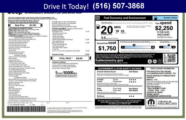 Conquer every road in this Certified 2022 Jeep Wrangler Unlimited Sahara! One owner, Clean Carfax, and trail-ready. Rugged style meets refined comfort - perfect for daily drives and wild adventures. Own the legend, drive with confidence! Every Westbury Pre-owned vehicle is thoroughly checked and reconditioned. All this vehicle needs is you!BUY WITH CONFIDENCE7-Year/100,000-Mile Powertrain Limited warranty, Rental Car Allowance, 24-Hour Towing and Roadside Assistance, Carfax Vehicle History Report, 3-Month/3,000-Mile Maximum Care Coverage, Introductory 3-month subscription to SiriusXM Satellite RadioOPTION PACKAGESTRANSMISSION: 8-SPEED AUTOMATIC (850RE) Tip Start, Dana M200 Rear Axle, Selec-Speed Control, BLACK 3-PIECE HARD TOP Freedom Panel Storage Bag, Rear Window Defroster, Rear Window Wiper/Washer, No Soft Top, COLD WEATHER GROUP Heated Steering Wheel, Goodyear Brand Tires, Tires: 255/70R18 All-Terrain, Heated Front Seats, WHEELS: 18 X 7.5 TECH GRAY MACHINED FACE, REMOTE START SYSTEM, ENGINE: 3.6L V6 24V VVT UPG I W/ESS (STD).KEY FEATURES INCLUDENavigation, Premium Sound System. Jeep Unlimited Sahara with Bright White Clearcoat exterior and Black interior features a V6 Cylinder Engine with 285 HP at 6400 RPM*.OUR OFFERINGSWe hand select the finest automobiles possible, recondition as required so you do not have to worry about anything shortly down the road. Our Certified vehicles for example all have more than 50% brake life, most have brand new brakes installed front and rear and it does not end there.WESTBURY VIPAmerica's #1 VIP Plus Program includes Complimentary Loaner Cars, UnlimitedOil & Filter changes for 1 yr. & then included with every factorymaintenance, Courtesy Shuttle to work, home or any other location, ExpressLube 30 minutes or less w/ no appointment necessary, Complimentary NYSI, 24/7 Rescue & Towing.