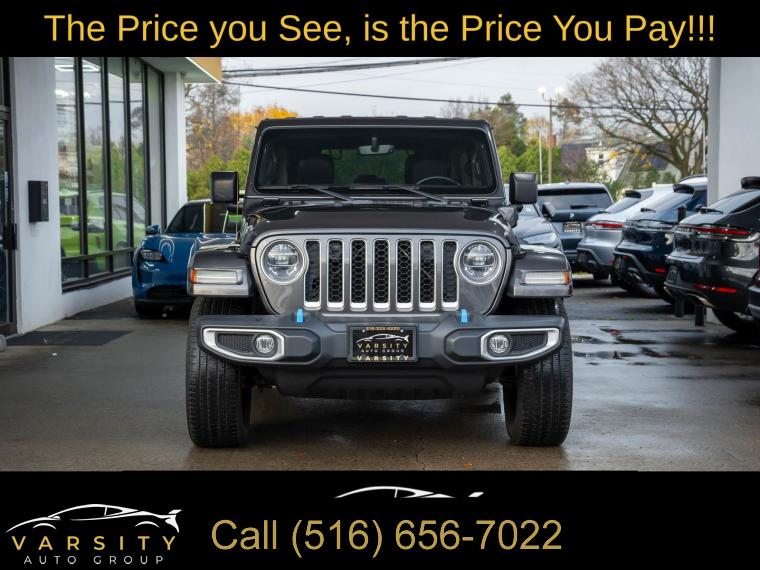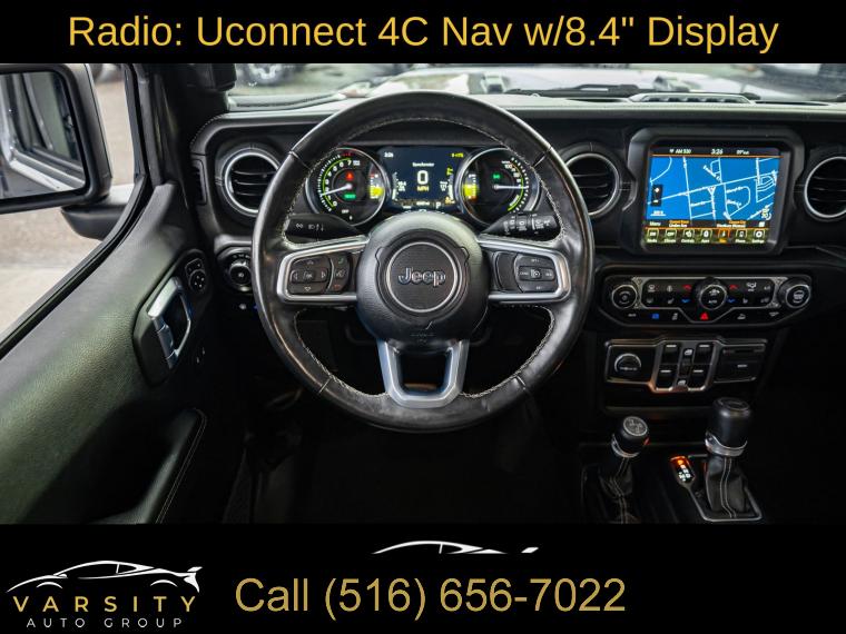 Navigation System, Cold Weather Group, Quick Order Package 29P, 9 Speakers, AM/FM radio, Radio data system, Radio: Uconnect 4C Nav w/8.4" Display, Air Conditioning, Automatic temperature control, Front dual zone A/C, Rear Window Defroster, Power steering, Power windows, Remote keyless entry, Steering wheel mounted audio controls, Sport Suspension, Traction control, 4-Wheel Disc Brakes, ABS brakes, Dual front impact airbags, Dual front side impact airbags, Emergency communication system: SiriusXM Guardian, Front anti-roll bar, Integrated roll-over protection, Low tire pressure warning, Occupant sensing airbag, Rear anti-roll bar, Remote Start System, Brake assist, Electronic Stability Control, ParkView Rear Back-Up Camera, Delay-off headlights, Front fog lights, Fully automatic headlights, Panic alarm, Security system, Speed control, Black 3-Piece Hard Top, Front License Plate Bracket, Heated door mirrors, No Soft Top, Power door mirrors, Apple CarPlay/Android Auto, Auto-dimming Rear-View mirror, Compass, Driver door bin, Driver vanity mirror, Front reading lights, Garage door transmitter, Heated Steering Wheel, Illuminated entry, Leather Shift Knob, Leather steering wheel, Outside temperature display, Passenger vanity mirror, Premium McKinley Trimmed Seats, Rear reading lights, Rear seat center armrest, Tachometer, Telescoping steering wheel, Tilt steering wheel, Trip computer, Voltmeter, Front Bucket Seats, Heated Front Seats, Split folding rear seat, Freedom Panel Storage Bag, Front Center Armrest w/Storage, Passenger door bin, Alloy wheels, Wheels: 20" x 8" Fully Painted Aluminum, Rear Window Wiper/Washer, Variably intermittent wipers, 3.73 Rear Axle Ratio, The Price you See, is the Price You Pay!!!, Jeep Wrangler Unlimited Sahara 4xe, Granite Crystal Metallic Clearcoat, Clean CARFAX, One Owner, 4 wheel drive