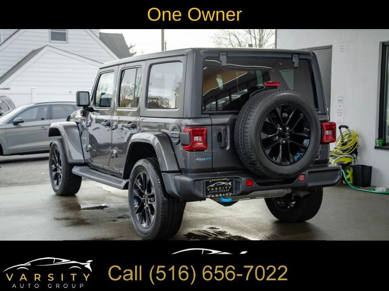 The Price you See, is the Price You Pay!!!, Jeep Wrangler Unlimited Sahara 4xe, Granite Crystal Metallic Clearcoat, Clean CARFAX, One Owner, 4 wheel drive, 2.0L I4 DOHC, 3.73 Rear Axle Ratio, 4-Wheel Disc Brakes, 9 Speakers, ABS brakes, Air Conditioning, Alloy wheels, AM/FM radio, Apple CarPlay/Android Auto, Auto-dimming Rear-View mirror, Automatic temperature control, Black 3-Piece Hard Top, Brake assist, Cold Weather Group, Compass, Delay-off headlights, Driver door bin, Driver vanity mirror, Dual front impact airbags, Dual front side impact airbags, Electronic Stability Control, Emergency communication system: SiriusXM Guardian, Freedom Panel Storage Bag, Front anti-roll bar, Front Bucket Seats, Front Center Armrest w/Storage, Front dual zone A/C, Front fog lights, Front License Plate Bracket, Front reading lights, Fully automatic headlights, Garage door transmitter, Heated door mirrors, Heated Front Seats, Heated Steering Wheel, Illuminated entry, Integrated roll-over protection, Leather Shift Knob, Leather steering wheel, Low tire pressure warning, Navigation System, No Soft Top, Occupant sensing airbag, Outside temperature display, Panic alarm, ParkView Rear Back-Up Camera, Passenger door bin, Passenger vanity mirror, Power door mirrors, Power steering, Power windows, Premium McKinley Trimmed Seats, Quick Order Package 29P, Radio data system, Radio: Uconnect 4C Nav w/8.4" Display, Rear anti-roll bar, Rear reading lights, Rear seat center armrest, Rear Window Defroster, Rear Window Wiper/Washer, Remote keyless entry, Remote Start System, Security system, Speed control, Split folding rear seat, Sport Suspension, Steering wheel mounted audio controls, Tachometer, Telescoping steering wheel, Tilt steering wheel, Traction control, Trip computer, Variably intermittent wipers, Voltmeter, Wheels: 20" x 8" Fully Painted Aluminum. Granite Crystal Metallic Clearcoat 2022 Jeep Wrangler Unlimited Sahara 4xe 4WD 8-Speed Automatic 2.0L I4 DOHC