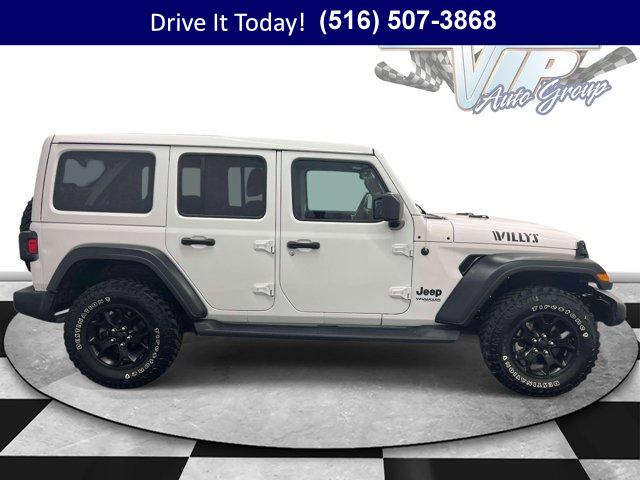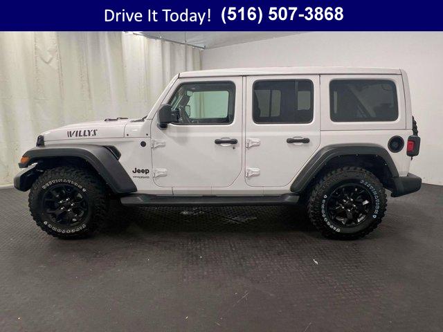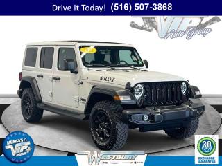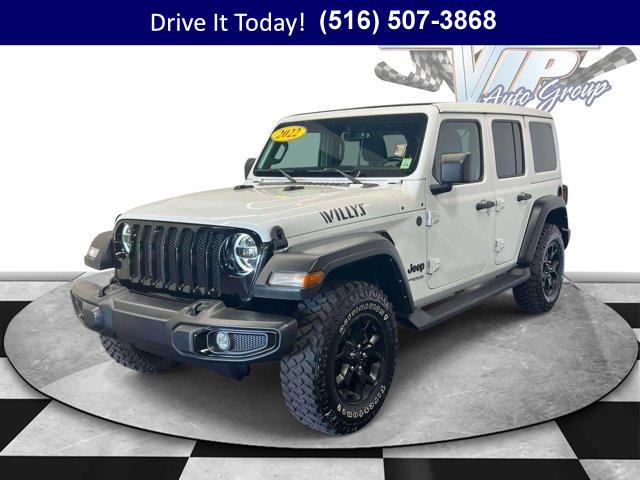 Jeep Certified capability meets everyday comfort in this 2022 Jeep Wrangler 4D Sport Utility with confident 4WD traction and the Willys package for added grip and trail-ready style. Finished in Bright White Clearcoat with durable Black cloth bucket seats, it balances open-air freedom with refined daily drivability thanks to an 8-speed automatic, automatic temperature control, and thoughtful convenience touches throughout. The Sky 1-Touch Power Top lets you go from sealed cabin to sunshine in seconds, while the anti-spin rear differential and 3.45 rear axle ratio add surefooted performance for the Northeast?s changing weather. It shows 58,277 miles and is ready for your commute, errands, and weekend escapes.Stay connected and in control with a crisp 8.4 inch multimedia display powered by Uconnect 4C Nav, seamless Apple CarPlay/Android Auto, integrated GPS Navigation, and an Alpine Premium Audio System for rich sound. A 7.0 inch TFT color driver display, Off-Road Info Pages, 4G LTE Wi-Fi Hot Spot, HD Radio, SiriusXM Traffic Plus and Travel Link, and SiriusXM Guardian emergency/assistance elevate every drive. Comfort gets a cold-weather boost with heated front seats and a heated steering wheel, plus power heated mirrors, rear window defroster and wiper, and remote keyless entry. LED Premium Reflector Headlamps and front LED fog lamps enhance visibility, while ParkView Rear Back-Up Camera, Electronic Stability Control, traction control, ABS, and integrated roll-over protection add confidence. Daily convenience is covered with steering wheel media controls, auto-dimming rear-view mirror, deep tint sunscreen windows, universal garage door opener, USB charging ports, and speed sensitive power locks & more. Signature Willys cues include Moab black aluminum wheels, rock protection sill rails, black grille, and Willys hood decals, backed by a 220-amp alternator, auxiliary battery, Stop-Start dual battery system, and engine oil cooler for dependable performance.VIP+ ProgramEvery purchase includes Unlimited Oil and Filter Changes for 1 year, then included with every factory maintenance thereafter, plus Complimentary NYS Inspections, Complimentary Loaner Cars, and Complimentary 24/7 Rescue and Towing. These benefits are For Life and Transferable, delivering long-term value and peace of mind for you and the next owner.Purchase with confidence as this Wrangler is a Certified Pre-Owned Vehicle (CPOV). Coverage includes a 7-Year / 100,000-Mile Powertrain Limited Warranty, a 125-Point Inspection, 24-Hour Roadside Assistance, a Rental Car Allowance, and a CARFAX Vehicle History Report. It is the reliable path to a certified Jeep Wrangler with factory-backed benefits.More About UsOur vehicles are hand selected for quality and long-term reliability, then professionally reconditioned prior to sale so you can buy with confidence. Certified vehicles meet strict standards, including brake life no less than 50 percent, to help ensure safety and satisfaction from day one. As a proud member of the VIP Auto Group serving the community since 1957, we stand behind every sale with our promise, We Will Satisfy You!If you?re looking for a used car on Long Island, this Wrangler blends commuter-friendly comfort with winter-ready hardware. Whether you are comparing options for a used truck in New York or seeking an affordable used car that can handle snow and beach days alike, the Willys package, heated features, and LED lighting deliver year-round confidence. CPOV backing, rugged 4WD, and smart tech make it a strong long-term value for NY drivers who want adventure-ready durability without sacrificing day-to-day practicality.NY shoppers can call now, schedule a test drive, or learn more at WestburyJeep.com, where you can also view up-to-date inventory and current pricing. Description and features are intended as a general overview and may vary by vehicle. Please confirm details with our team.