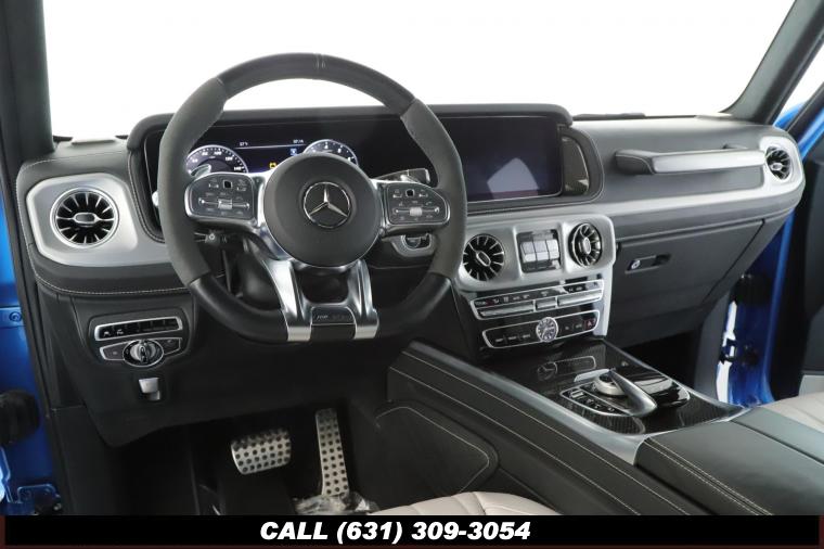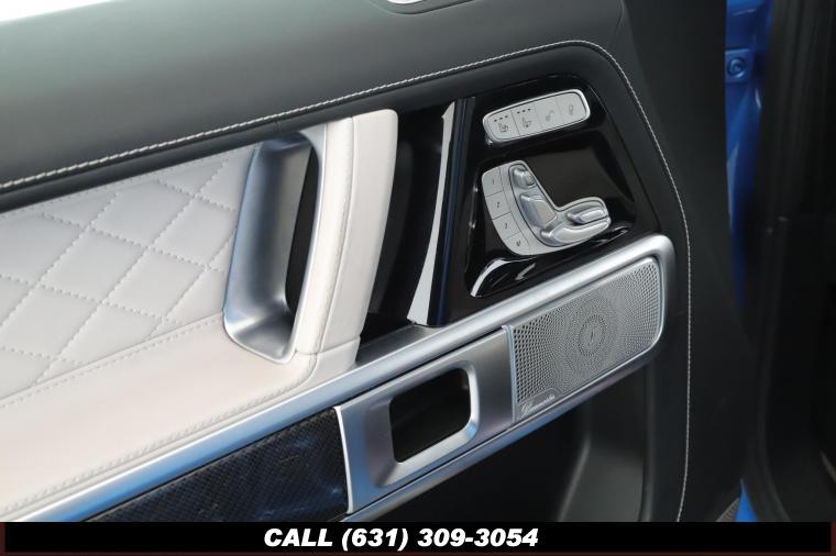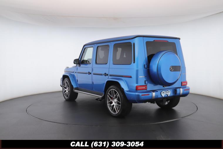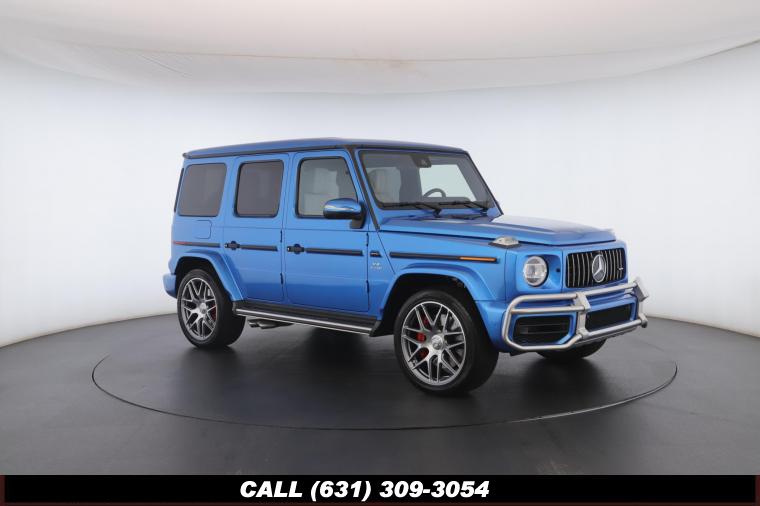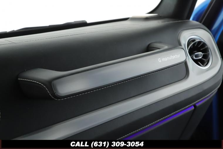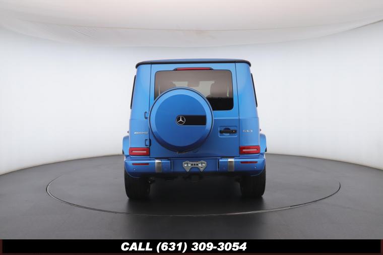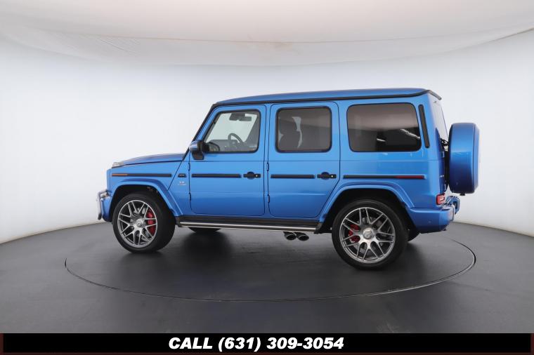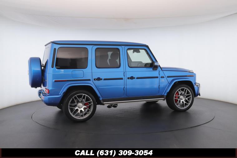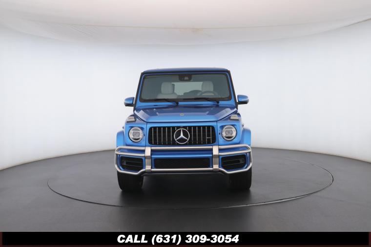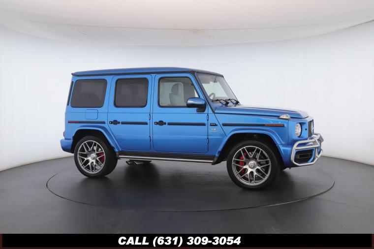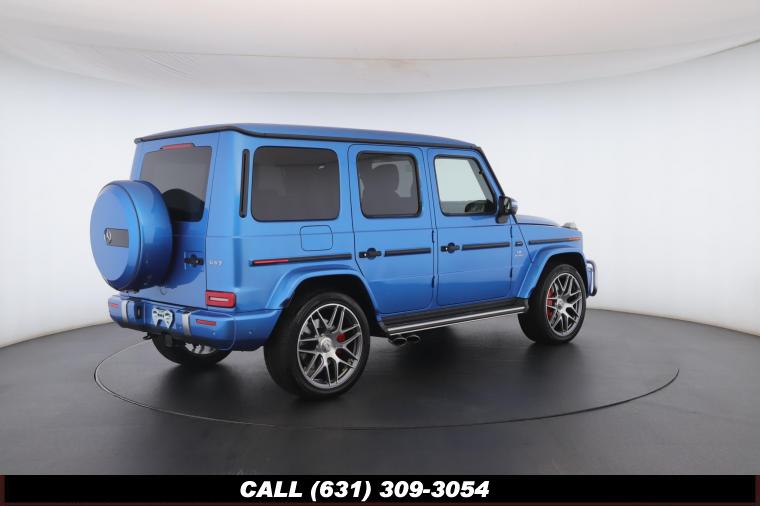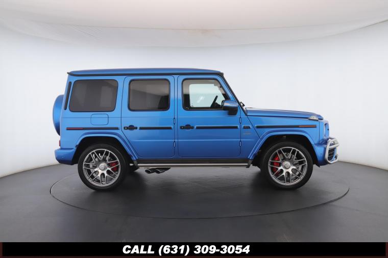 • The 2022 Mercedes-Benz G-Class AMG G63 is where unmistakable heritage meets modern super SUV performance an icon redefined with bespoke craftsmanship and commanding presence. Finished in the stunning G manufaktur South Sea Blue Metallic, this example stands out with a deep, ocean inspired hue that perfectly complements the G-Class's bold, upright design. The exterior presence is further elevated by 22-inch AMG cross spoke forged wheels, delivering an aggressive stance while maintaining refined sophistication. A painted to match spare wheel cover creates a seamless, tailored look at the rear, while the AMG Performance Package enhances both aesthetics and driving dynamics for an even more exhilarating experience. Under the hood lies a handcrafted 4.0-liter V8 biturbo engine, delivering thrilling acceleration and the unmistakable AMG exhaust note that defines the G63 experience. The AMG Performance Nappa leather heated steering wheel ensures a tactile, race inspired feel every time you take the driver's seat. Inside, the cabin is appointed with Platinum White leather, offering a striking contrast to the vibrant exterior. The G manufaktur Interior Plus Package elevates the atmosphere with expanded leather coverage and meticulous detailing throughout. Complementing the luxurious environment is the AMG carbon fiber trim, blending motorsport character with premium craftsmanship for a truly bespoke interior.