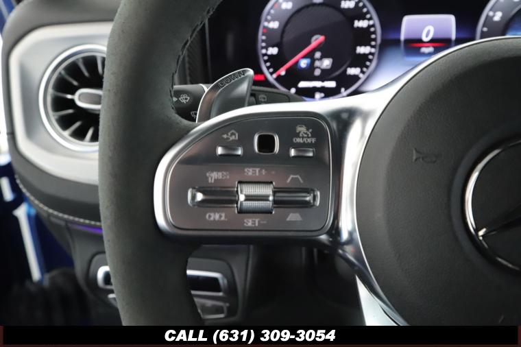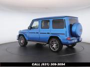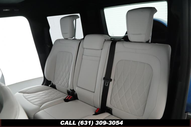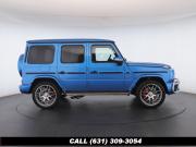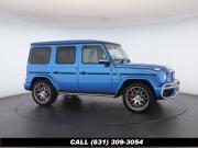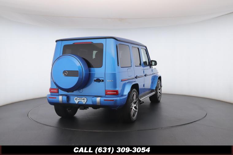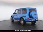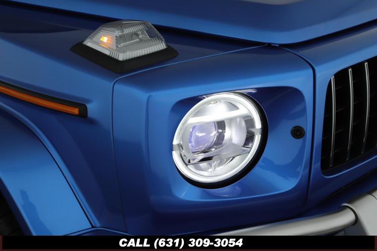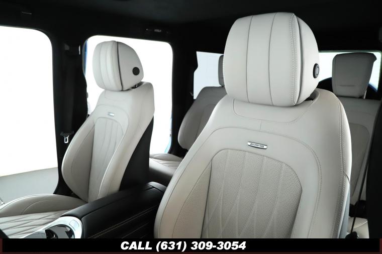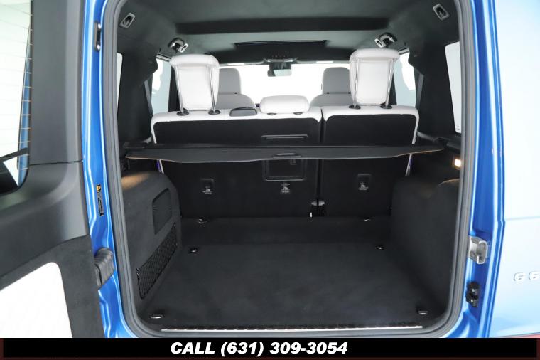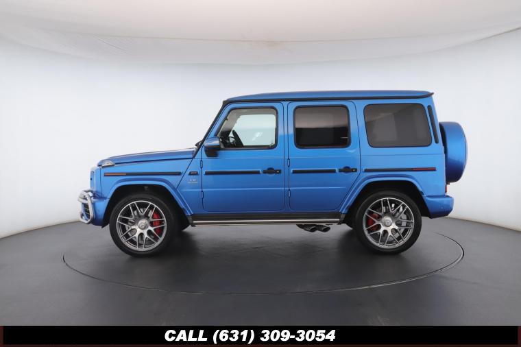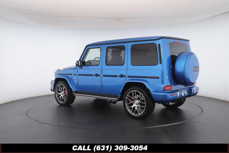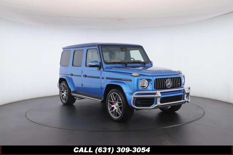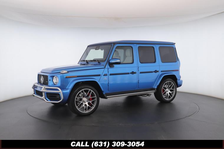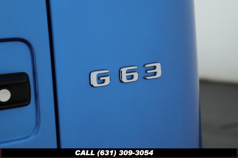 • The 2022 Mercedes-Benz G-Class AMG G63 is where unmistakable heritage meets modern super SUV performance an icon redefined with bespoke craftsmanship and commanding presence. Finished in the stunning G manufaktur South Sea Blue Metallic, this example stands out with a deep, ocean inspired hue that perfectly complements the G-Class's bold, upright design. The exterior presence is further elevated by 22-inch AMG cross spoke forged wheels, delivering an aggressive stance while maintaining refined sophistication. A painted to match spare wheel cover creates a seamless, tailored look at the rear, while the AMG Performance Package enhances both aesthetics and driving dynamics for an even more exhilarating experience. Under the hood lies a handcrafted 4.0-liter V8 biturbo engine, delivering thrilling acceleration and the unmistakable AMG exhaust note that defines the G63 experience. The AMG Performance Nappa leather heated steering wheel ensures a tactile, race inspired feel every time you take the driver's seat. Inside, the cabin is appointed with Platinum White leather, offering a striking contrast to the vibrant exterior. The G manufaktur Interior Plus Package elevates the atmosphere with expanded leather coverage and meticulous detailing throughout. Complementing the luxurious environment is the AMG carbon fiber trim, blending motorsport character with premium craftsmanship for a truly bespoke interior.