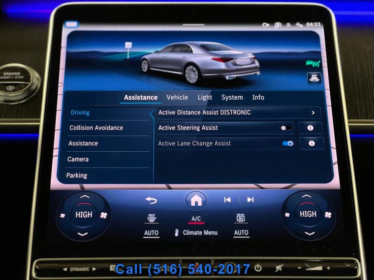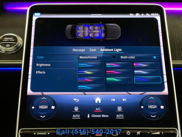 Sunroof/Moonroof, Navigation System, Leather Seats, Heated Seats, Bluetooth, Backup Camera, Moonroof / Sunroof: anti-trapping one-touch open/close, power panoramic, power sunshade, remotely operated, tilt/slide, Rear moonroof / sunroof: power glass, Driver seat: heated massaging, ventilated, Driver seat power adjustments: 4-way power lumbar height, reclining, 12, Front headrests: power adjustable 2, Front seat type: bucket, Passenger seat: heated massaging, ventilated, Passenger seat power adjustments: 4-way power lumbar height, reclining, 12, Rear headrests: adjustable 2, Rear seat type: bench, Upholstery: leather, Upholstery accents: perforated, ABS: 4-wheel, Brake drying: , Braking assist: , Cornering brake control: , Electronic brakeforce distribution: , Electronic parking brake: auto off, Emergency braking preparation: , Front brake diameter: 14.5, Front brake type: ventilated disc, Power brakes: , Rear brake diameter: 14.1, Rear brake type: ventilated disc, Regenerative braking system: , Alternator: 150 amps, Auto start/stop: , Battery: maintenance-free, Battery rating: 520 CCA, Mild hybrid system: , Starter type: motor/generator, Daytime running lights: LED, Exterior entry lights: approach lamps puddle lamps, Headlights: LED auto delay off, auto high beam dimmer, auto on/off, cornering, wiper activated, Rear fog lights: , Taillights: LED, Automatic emergency braking: front front pedestrian, rear, Blind spot safety: sensor/alert, Camera system: surround view, Child safety door locks: , Child seat anchors: LATCH system, Cross traffic alert: rear, Crumple zones: front rear, Dash camera: front recording, Driver attention alert system: , Emergency interior trunk release: , Evasive steering assist: , Impact sensor: battery disconnect door unlock, fuel cut-off, post-collision safety system, Lane deviation sensors: , Lane keeping assist: , Lane keeping assist with blind spot integration: , Parking sensors: front rear, Pre-collision warning system: audible warning pedestrian detection, vibrating steering wheel, visual warning, Rearview monitor: in dash, Traffic sign recognition: adaptive speed limiting, Vehicle exit safety system: , Airbag deactivation: occupant sensing passenger, Front airbags: dual, Knee airbags: driver, Side airbags: front rear, Side curtain airbags: front rear, Side mirror adjustments: power power folding, reverse gear tilt, Side mirrors: auto-dimming heated, integrated turn signals, Front wipers: integrated washer jets rain sensing, speed sensitive, variable intermittent, Heated windshield washer jets: , Laminated glass: acoustic windshield infrared-reflecting windshield, Power windows: remotely operated safety reverse, Rear privacy glass: , Window defogger: rear, Anti-theft system: alarm vehicle immobilizer, Power door locks: auto-locking, Steering ratio: 15.6, Emergency locking retractors: front rear, Front seatbelts: 3-point, Rear seatbelts: 3-point, Seatbelt force limiters: front rear, Seatbelt pretensioners: front rear, Seatbelt warning sensor: front, 4WD type: full time, Axle ratio: 2.82, Drive mode selector: , Active suspension: , Air suspension: , Driver adjustable suspension: height ride control, Front shock type: gas, Front spring type: pneumatic, Front stabilizer bar: , Front struts: , Front suspension classification: independent, Front suspension type: multi-link, Rear shock type: gas, Rear spring type: pneumatic, Rear stabilizer bar: , Rear struts: , Rear suspension classification: independent, Rear suspension type: multi-link, Self leveling suspension: , Suspension control: electronic, Driver assistance app: roadside assistance, Electronic messaging assistance: voice operated with read function, Hands-free phone call integration: voice operated, Navigation data: real time traffic send destination to vehicle, Navigation system: augmented reality hard drive, voice operated, Smart device app compatibility: Mercedes me, Smart device app function: engine start horn/light operation, lock operation, maintenance status, vehicle location, Wi-Fi: hotspot compatible, Wireless data link: Bluetooth, Antenna type: diversity, Auxiliary audio input: Bluetooth USB, iPod/iPhone, memory card slot, Digital sound processing: , Internet radio app: Gracenote, Premium brand: Burmester, Radio: AM/FM HD radio, touch screen display, voice operated, Radio data system: , Satellite radio: SiriusXM, Speed sensitive volume control: , Subwoofer: 2, Surround sound: 5.1, Total speakers: 13, Watts: 710, Run flat tires: , Tire Pressure Monitoring System: , Tire type: all season, Wheel spokes: 5, Wheels: aluminum alloy, Clock: , Compass: , Customizable instrument cluster: , Digital odometer: , External temperature display: , Fuel economy display: MPG range, Gauge: tachometer, Instrument cluster screen size: 12.3 in., Multi-function display: , Trip odometer: , Warnings and reminders: coolant temperature warning lamp failure, low fuel level, low oil pressure, maintenance due, Air filtration: active charcoal, Front air conditioning: automatic climate control, Front air conditioning zones: dual, Humidity/dewpoint sensors: , Rear vents: second row, Armrests: rear center folding with storage and pass-thru rear center with cupholders, Center console trim: leather wood, Dash trim: wood, Door sill trim: illuminated scuff plate, Door trim: leather, Floor mat material: carpet, Floor material: carpet, Floor mats: front rear, Headliner trim: leather, Interior accents: aluminum leather, wood, Steering wheel trim: leather wood, Body side moldings: chrome, Door handle color: body-color, Exhaust: dual tip integrated, Exhaust tip color: chrome, Front bumper color: body-color, Grille color: black with chrome accents, Mirror color: body-color, Rear bumper color: body-color, Rear trunk/liftgate: power operated sensor-activated, Side door type: soft close, Window trim: chrome, Active parking system: fully automated, Adaptive cruise control: , Adaptive stop and go cruise control: fully automated, Ambient lighting: