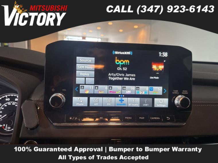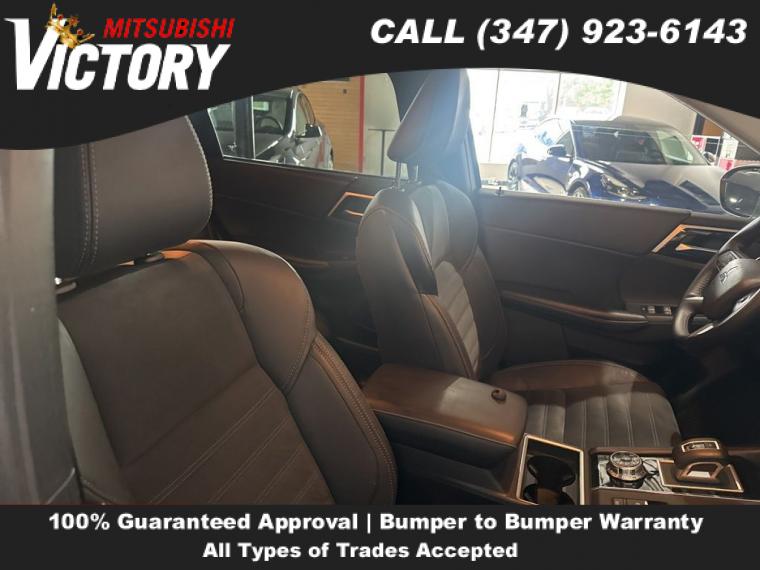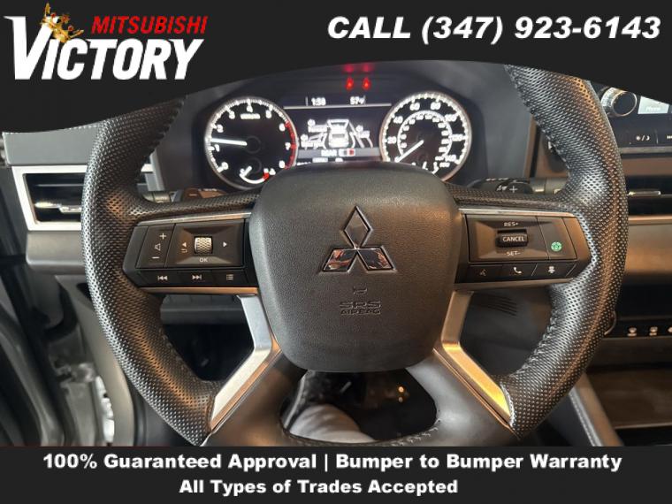 Navigation system: Powered by TOMTOM, AM/FM radio: SiriusXM, Radio data system, Radio: AM/FM 9.0" Navigation w/Smartphone Link, Air Conditioning, Automatic temperature control, Front dual zone A/C, Rear window defroster, Power driver seat, Power steering, Power windows, Remote keyless entry, Steering wheel mounted audio controls, Four wheel independent suspension, Traction control, 4-Wheel Disc Brakes, ABS brakes, Dual front impact airbags, Dual front side impact airbags, Emergency communication system: Mitsubishi Connect w/ 24-month trial, Front anti-roll bar, Knee airbag, Low tire pressure warning, Occupant sensing airbag, Overhead airbag, Rear anti-roll bar, Rear side impact airbag, Power Liftgate, Brake assist, Electronic Stability Control, Auto High-beam Headlights, Front fog lights, Fully automatic headlights, Headlight cleaning, Panic alarm, Security system, Speed control, Bumpers: body-color, Heated door mirrors, Power door mirrors, Spoiler, Turn signal indicator mirrors, Android Auto & Apple CarPlay, Driver door bin, Driver vanity mirror, Front reading lights, Illuminated entry, Leather Shift Knob, Leather steering wheel, Outside temperature display, Overhead console, Passenger vanity mirror, Rear seat center armrest, Tachometer, Telescoping steering wheel, Tilt steering wheel, Trip computer, 3rd row seats: split-bench, Front Bucket Seats, Heated Front Bucket Seats, Heated front seats, Reclining 3rd row seat, Split folding rear seat, Synthetic Leather Seat Trim, Front Center Armrest w/Storage, Passenger door bin, Alloy wheels, Wheels: 20" x 8J Two-Tone Alloy, Rain sensing wipers, Rear window wiper, Speed-Sensitive Wipers, Variably intermittent wipers, Axle Ratio: 5.694,