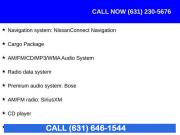 Navigation System, Navigation system: NissanConnect Navigation, Cargo Package, 11 Speakers, AM/FM radio: SiriusXM, AM/FM/CD/MP3/WMA Audio System, CD player, Premium audio system: Bose, Radio data system, Air Conditioning, Automatic temperature control, Front dual zone A/C, Rear window defroster, Memory seat, Power driver seat, Power steering, Power windows, Remote keyless entry, Steering wheel mounted audio controls, Four wheel independent suspension, Speed-sensing steering, Traction control, 4-Wheel Disc Brakes, ABS brakes, Child-Seat-Sensing Airbag, Dual front impact airbags, Dual front side impact airbags, Front anti-roll bar, Knee airbag, Low tire pressure warning, Occupant sensing airbag, Overhead airbag, Rear anti-roll bar, Rear side impact airbag, Rear Bumper Protector, Power Liftgate, Blind Spot Warning, Brake assist, Electronic Stability Control, Auto High-beam Headlights, Delay-off headlights, Front fog lights, Fully automatic headlights, First Aid Kit, Panic alarm, Security system, Speed control, Bumpers: body-color, Heated door mirrors, Power door mirrors, Roof rack: rails only, Splash Guards (B92), Spoiler, Turn signal indicator mirrors, Auto-dimming Rear-View mirror, Cargo Area Protector, Carpeted Floor Mats & Carpeted Cargo Mat, Driver door bin, Driver vanity mirror, Front reading lights, Garage door transmitter: HomeLink, Heated steering wheel, Illuminated entry, Illuminated Kick Plates, Illuminated Kick Plates (PIO), NissanConnect featuring Apple CarPlay and Android Auto, Outside temperature display, Overhead console, Passenger vanity mirror, Rear reading lights, Rear seat center armrest, Tachometer, Telescoping steering wheel, Tilt steering wheel, Trip computer, Front Bucket Seats, Front Center Armrest, Heated Front Bucket Seats, Heated front seats, Heated rear seats, Leather-Appointed Seat Trim, Power passenger seat, Split folding rear seat, Cargo Net, Passenger door bin, Retractable Cargo Cover, Alloy wheels, Wheels: 20" Machined Aluminum-Alloy, Rear window wiper, Speed-Sensitive Wipers, Variably intermittent wipers, 4.667 Axle Ratio