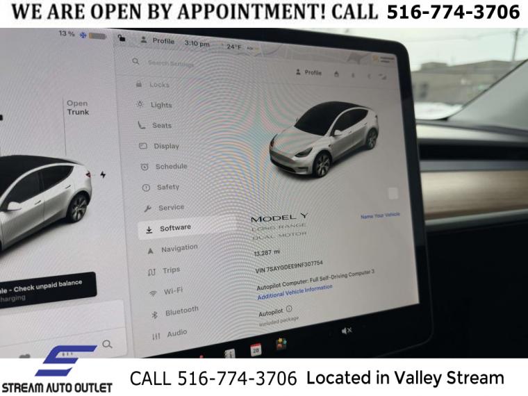 For more information on this 2022 Tesla Model Y, please call Stream Auto Outlet Valley Stream at (516) 774-3706 or with the contact form on this page. This vehicle's vin number is 7SAYGDEE9NF307754 and is recorded as being in stock at Stream Auto Outlet Valley Stream at 324 W Merrick Rd in Valley Stream. See all cars from this dealership.