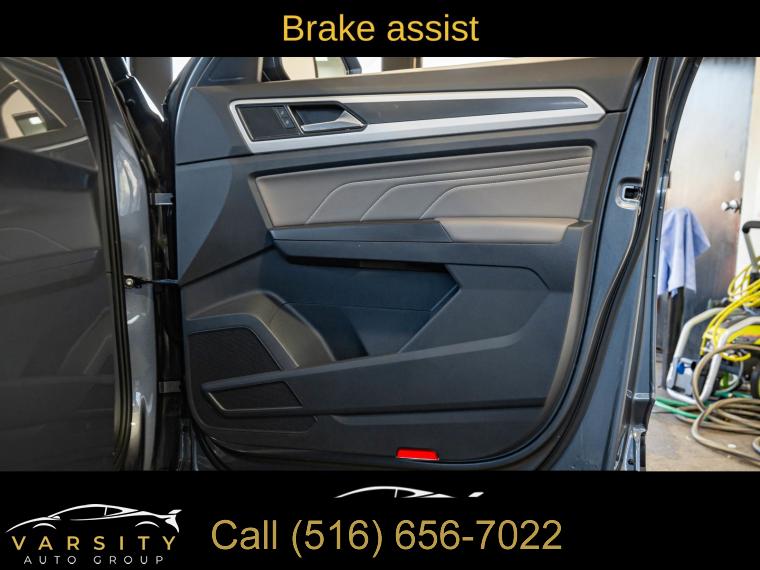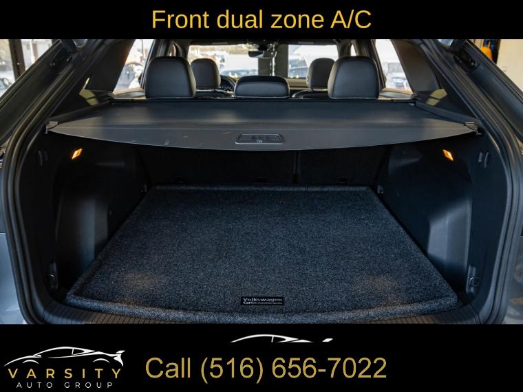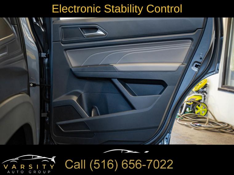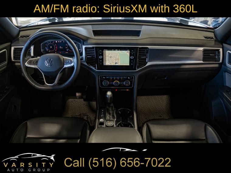 Navigation System, 6 Speakers, AM/FM radio: SiriusXM with 360L, Radio data system, Radio: MIB3 Discover Media w/8" Touchscreen Navigation, Air Conditioning, Automatic temperature control, Front dual zone A/C, Rear window defroster, Memory seat, Power driver seat, Power steering, Power windows, Remote keyless entry, Steering wheel mounted audio controls, Four wheel independent suspension, Speed-sensing steering, Standard Suspension, Traction control, 4-Wheel Disc Brakes, ABS brakes, Dual front impact airbags, Dual front side impact airbags, Emergency communication system, Front anti-roll bar, Low tire pressure warning, Occupant sensing airbag, Overhead airbag, Rear anti-roll bar, Power moonroof: Panoramic, Power Liftgate, Brake assist, Electronic Stability Control, Exterior Parking Camera Rear, Auto High-beam Headlights, Delay-off headlights, Front fog lights, Fully automatic headlights, First Aid Kit, Panic alarm, Security system, Speed control, Bumpers: body-color, Heated door mirrors, Power door mirrors, Roof rack: rails only, Spoiler, Turn signal indicator mirrors, Auto-dimming Rear-View mirror, Compass, Driver door bin, Driver vanity mirror, Frameless Auto-Dimming Rearview Mirror, Front reading lights, Heated Comfort Front Bucket Seats, Heated steering wheel, Heavy Duty Trunk Liner w/VW CarGo Blocks, Illuminated entry, Leather Shift Knob, Outside temperature display, Overhead console, Passenger vanity mirror, Rear reading lights, Rear seat center armrest, Roadside Assistance Kit, Rubber Mats (Set of 4), Rubber Mats Kit, Tachometer, Telescoping steering wheel, Tilt steering wheel, Trip computer, VW Car-Net Safe & Secure 5-Year, VW Care, Front Bucket Seats, Front Center Armrest, Heated front seats, Perforated V-Tex Leatherette Seating Surfaces, Power passenger seat, Split folding rear seat, Passenger door bin, Privacy Cover, Alloy wheels, Wheels: 20" x 8J 5-Spoke 2-Tone Machined Alloy, Rain sensing wipers, Rear window wiper, Variably intermittent wipers, 3.60 Axle Ratio, 2022 Volkswagen Atlas Cross Sport 2.0T SEL, Platinum Gray Metallic, Titan Black w/Perforated V-Tex Leatherette Seating Surfaces, Clean CARFAX