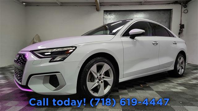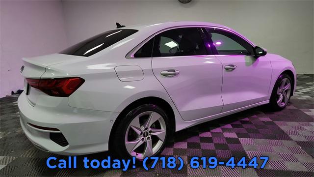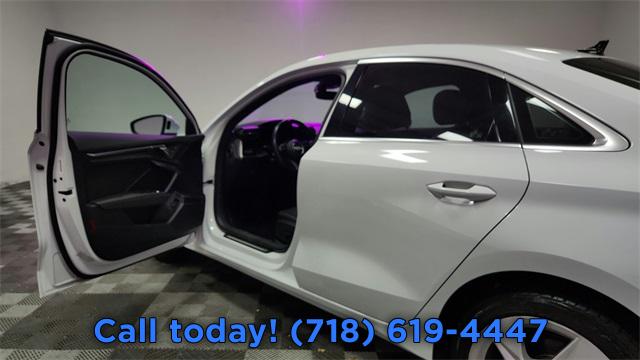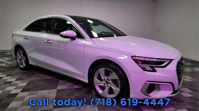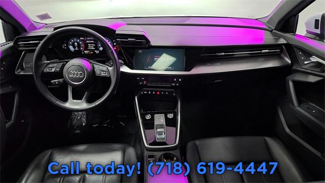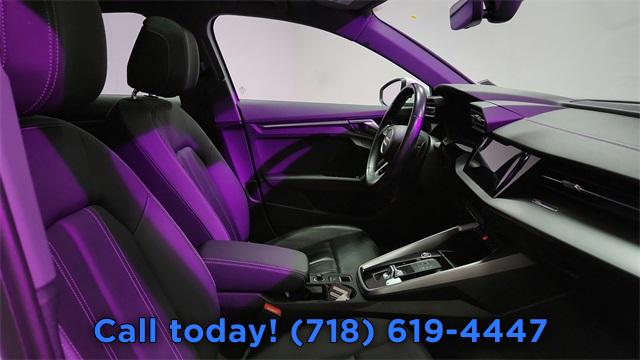 CARFAX One-Owner. 2023 Audi A3 40 Premium FrontTrak Black/Rock Gray Stitching w/Leather Seating Surfaces, Alarm System w/Motion Sensor, AM/FM radio, Audi Advanced Key, Audi Side Assist, Auto High-beam Headlights, Auto-Dimming Interior Mirror w/Compass, Auto-Dimming Power Folding Exterior Mirrors, Automatic temperature control, Convenience Package, Exterior Parking Camera Rear, Front dual zone A/C, Fully automatic headlights, Memory for Driver's Seat, Park Assist, Power moonroof, Rear air conditioning, Rear fog lights, Remote keyless entry, SiriusXM w/360L, Steering wheel mounted audio controls, Wireless Phone Charging Pad.