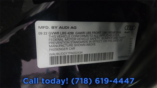Black Optic Sport Package, Convenience Package, LED Interior Lighting Plus Package, Premium Plus Package, Technology Package, 6 Speakers, AM/FM radio, Bang & Olufsen Sound System w/3D Sound, Bang & Olufsen Sound System w/3D Sound (DISC), Radio data system, Radio: Audi Sound System, SiriusXM w/360L, Air Conditioning, Automatic temperature control, Front dual zone A/C, Rear air conditioning, Rear window defroster, Audi Advanced Key, Power driver seat, Power steering, Power windows, Remote keyless entry, Steering wheel mounted audio controls, Four wheel independent suspension, Speed-sensing steering, Traction control, 4-Wheel Disc Brakes, ABS brakes, Dual front impact airbags, Dual front side impact airbags, Emergency communication system, Front anti-roll bar, Knee airbag, Low tire pressure warning, Occupant sensing airbag, Overhead airbag, Rear anti-roll bar, Rear side impact airbag, Power moonroof, Audi Side Assist, Brake assist, Electronic Stability Control, Exterior Parking Camera Rear, Park Assist, Auto High-beam Headlights, Delay-off headlights, Fully automatic headlights, Rear fog lights, Alarm System w/Motion Sensor, Panic alarm, Adaptive Cruise Assist w/Lane Guidance, Speed control, Audi Beam Rings, Auto-Dimming Power Folding Exterior Mirrors, Black Audi Rings & Badges, Black Exterior Trim, Bumpers: body-color, Heated door mirrors, Power door mirrors, Sport Suspension (-15 mm), Turn signal indicator mirrors, Agate Gray Fine Grain Birch Wood Inlay, Audi Connect PLUS, Audi Guard All-Weather Floor Mats, Audi MMI Navigation Plus, Audi Virtual Cockpit Plus, Auto-Dimming Interior Mirror w/Compass, Driver door bin, Driver vanity mirror, Front reading lights, Illuminated entry, Leather steering wheel, Outside temperature display, Overhead console, Passenger vanity mirror, Rear reading lights, Rear seat center armrest, Tachometer, Telescoping steering wheel, Tilt steering wheel, Traffic Sign Recognition, Trip computer, Wireless Phone Charging Pad, Front Bucket Seats, Front Center Armrest, Heated Front Bucket Seats, Heated front seats, Leather Seating Surfaces, Memory for Driver's Seat, Power passenger seat, Split folding rear seat, Passenger door bin, Alloy wheels, Wheels: 17" 5-Arm Design, Wheels: 18" 5-Y-Spoke Design, Rain sensing wipers, Speed-Sensitive Wipers, Variably intermittent wipers