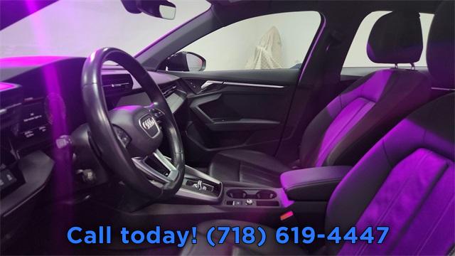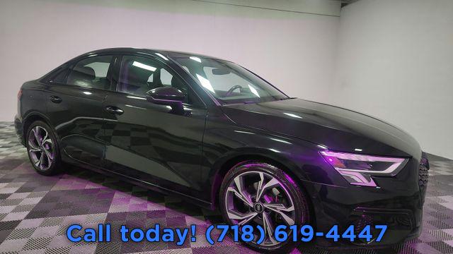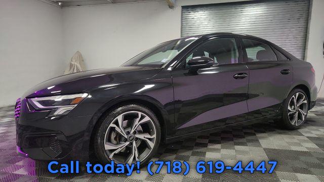 CARFAX One-Owner. 2023 Audi A3 40 Premium Plus Black/Rock Gray Stitching w/Leather Seating Surfaces, Adaptive Cruise Assist w/Lane Guidance, Agate Gray Fine Grain Birch Wood Inlay, Alarm System w/Motion Sensor, Audi Advanced Key, Audi Connect PLUS, Audi MMI Navigation Plus, Audi Side Assist, Audi Virtual Cockpit Plus, Auto High-beam Headlights, Auto-Dimming Interior Mirror w/Compass, Auto-Dimming Power Folding Exterior Mirrors, Automatic temperature control, Bang & Olufsen Sound System w/3D Sound, Black Exterior Trim, Black Optic Sport Package, Convenience Package, Exterior Parking Camera Rear, Front dual zone A/C, Fully automatic headlights, LED Interior Lighting Plus Package, Memory for Driver's Seat, Park Assist, Power moonroof, Premium Plus Package, Rear air conditioning, Rear fog lights, Remote keyless entry, SiriusXM w/360L, Sport Suspension (-15 mm), Steering wheel mounted audio controls, Technology Package, Traffic Sign Recognition, Wheels: 18" 5-Y-Spoke Design, Wireless Phone Charging Pad.