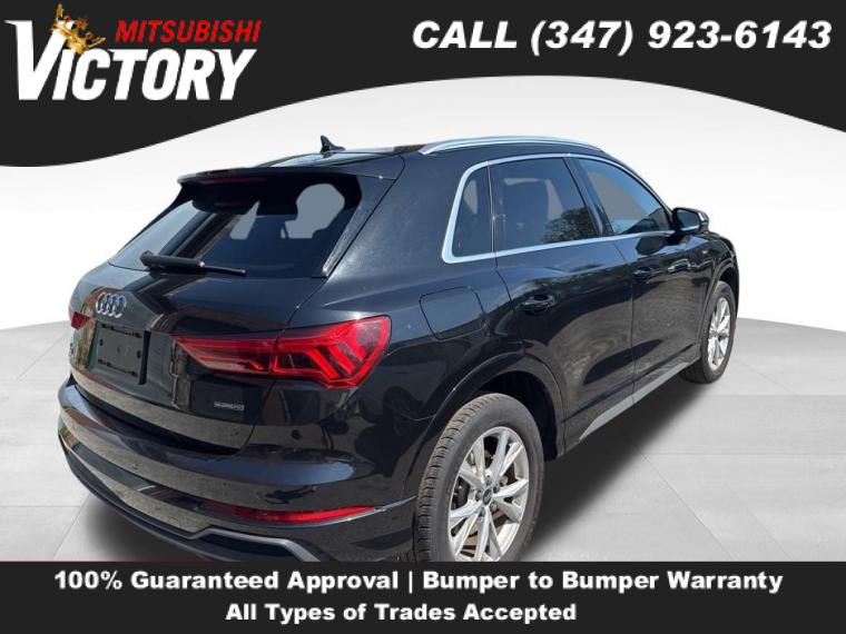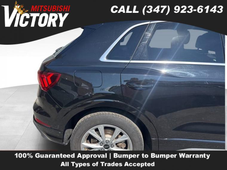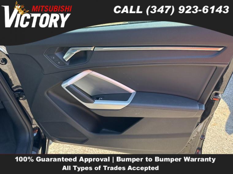 2023 Audi Q3 Premium S Line quattro Black 4D Sport Utility Save yourself Time and Money - Fill out a credit application online at victorymitsubishi.com and get pre-APPROVED! Financing available for all types of credit with low monthly payment that will fit you budget. Down Payment low as $599. Same day delivery. View our entire inventory by visiting our virtual showroom at victorymitsubishi.com - Only 2 blocks away from Exit 13 off I-95 or Minutes from exit 7 on the Hutchinson Parkway. While we make every effort to ensure the data listed here is correct, there may be instances where the pricing, options or vehicle features may be listed incorrectly. Dealer cannot be held liable for data that is listed incorrectly. to see more pictures of this vehicle or call us at (347) 923-6143 today to schedule your test drive. please refer to dealer’s website for exact pricing and for any incentives that we may apply! Our address is 4070 Boston Road, Bronx, NY 10475.