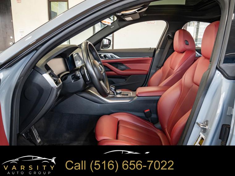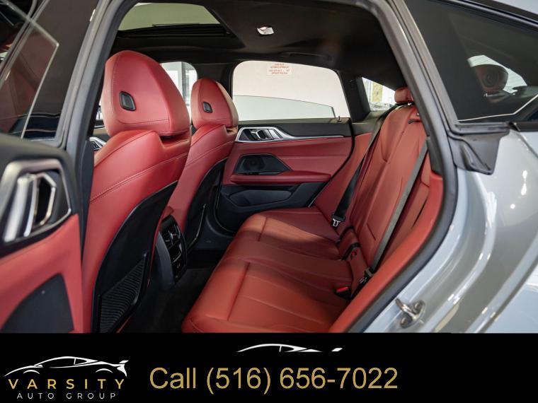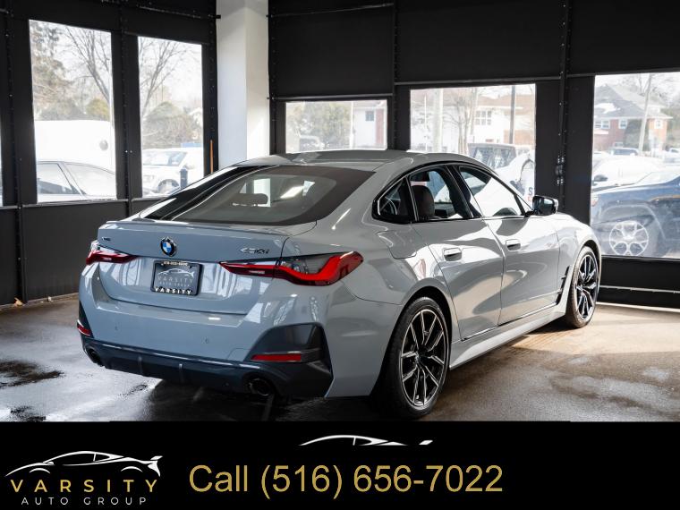 Navigation System, M Sport Package, M Sport Package (337), Premium Package 2, Shadowline Package, 10 Speakers, AM/FM radio: SiriusXM with 360L, Hi-Fi Sound System, Radio data system, Radio: AM/FM Audio System, SiriusXM w/360L, Air Conditioning, Automatic temperature control, Front dual zone A/C, Rear air conditioning, Rear window defroster, Lumbar Support, Memory seat, Power driver seat, Power steering, Power windows, Remote keyless entry, Steering wheel mounted audio controls, Four wheel independent suspension, Speed-sensing steering, Traction control, 4-Wheel Disc Brakes, ABS brakes, Dual front impact airbags, Dual front side impact airbags, Emergency communication system: BMW Assist eCall, Front anti-roll bar, Knee airbag, Low tire pressure warning, Occupant sensing airbag, Overhead airbag, Rear anti-roll bar, Variable Sport Steering, Power moonroof, Power Liftgate, Brake assist, Electronic Stability Control, Exterior Parking Camera Rear, Auto High-beam Headlights, Delay-off headlights, Fully automatic headlights, Panic alarm, Security system, Speed control, Aerodynamic Kit, Auto-dimming door mirrors, Bumpers: body-color, Extended Shadowline Trim, Heated door mirrors, M Shadowline Lights, M Sport Suspension, Power door mirrors, Rear Spoiler, Shadowline Exterior Trim, Turn signal indicator mirrors, Without Lines Designation Outside, Ambient Lighting, Apple CarPlay & Android Auto Compatibility, Apple CarPlay Compatibility, Auto-dimming Rear-View mirror, BMW Assist eCall, BMW TeleServices, Compass, ConnectedDrive Services, Driver door bin, Driver vanity mirror, Front reading lights, Garage door transmitter, Genuine wood console insert, Genuine wood dashboard insert, Gesture Control, Heated Steering Wheel, Illuminated entry, Live Cockpit Pro w/Navi, M Steering Wheel, Outside temperature display, Overhead console, Passenger vanity mirror, Rear reading lights, Rear seat center armrest, Sport steering wheel, Tachometer, Telescoping steering wheel, Tilt steering wheel, Trip computer, Wireless Charging, Front Bucket Seats, Front Center Armrest, Heated Front Seats, Perforated Sensatec Upholstery, Power Front Seats, Power passenger seat, Split folding rear seat, Sport Seats, Mobility Kit, Passenger door bin, Alloy wheels, Wheels: 18" x 8.5" Double-Spoke Bi-Color, Wheels: 19" x 8.5" Fr & 19" x 9.0" Rr Bi-Color Blk, Rain sensing wipers, Speed-Sensitive Wipers, Variably intermittent wipers, 2023 BMW 4 Series 430i Gran Coupe, Brooklyn Gray Metallic