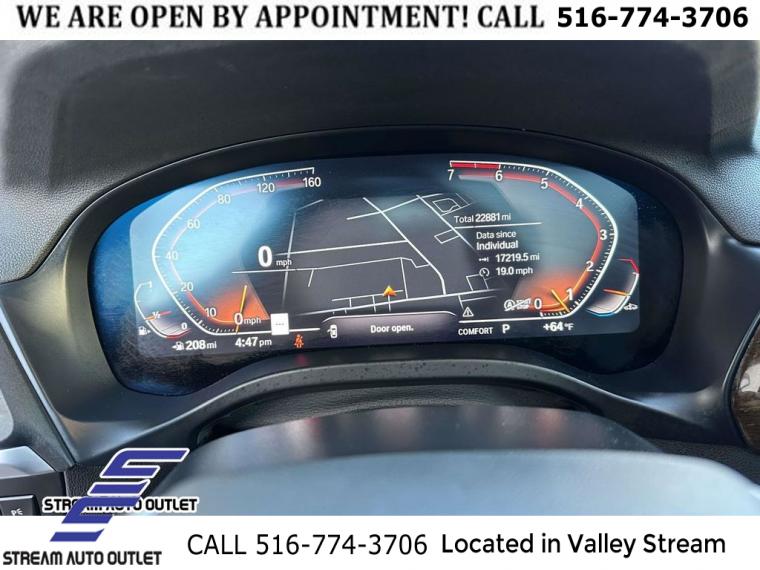 Navigation, Navigation System, Connected Package Pro, Premium Package, 12 Speakers, AM/FM Radio, AM/FM radio: SiriusXM, ConnectedDrive Services, Hi-Fi Sound System, Radio data system, SiriusXM Satellite Radio, Air Conditioning, Automatic temperature control, Front dual zone A/C, Rear air conditioning, Rear window defroster, Comfort Access Keyless Entry, Memory seat, Power driver seat, Power steering, Power windows, Remote Engine Start, Remote keyless entry, Steering wheel mounted audio controls, Four wheel independent suspension, Speed-sensing steering, Traction control, 4-Wheel Disc Brakes, ABS brakes, Dual front impact airbags, Dual front side impact airbags, Emergency communication system: BMW Assist eCall, Front anti-roll bar, Knee airbag, Low tire pressure warning, Occupant sensing airbag, Overhead airbag, Rear anti-roll bar, Panoramic Moonroof, Power Liftgate, Brake assist, Electronic Stability Control, Exterior Parking Camera Rear, Auto High-beam Headlights, Delay-off headlights, Fully automatic headlights, Panic alarm, Security system, Speed control, Auto-dimming door mirrors, Bumpers: body-color, Heated door mirrors, Power door mirrors, Spoiler, Turn signal indicator mirrors, Apple CarPlay & Android Auto Compatibility, Auto-dimming Rear-View mirror, BMW Assist eCall, BMW TeleServices, Driver door bin, Driver vanity mirror, Enhanced USB & Bluetooth w/Smartphone Integration, Front reading lights, Garage door transmitter, Genuine wood dashboard insert, Genuine wood door panel insert, Heated Steering Wheel, Illuminated entry, Live Cockpit Pro w/Navigation, Outside temperature display, Passenger vanity mirror, Rear reading lights, Rear seat center armrest, Sport steering wheel, Tachometer, Telescoping steering wheel, Tilt steering wheel, Trip computer, WiFi Hotspot, Driver Lumbar Support, Front Bucket Seats, Front Center Armrest, Heated Front Seats, Perforated SensaTec Upholstery, Power Front Seats, Power passenger seat, Split folding rear seat, Sport Seats, Passenger door bin, Alloy wheels, Wheels: 19" x 7.5" Y-Spoke (Style 693), Rain sensing wipers, Rear window wiper, Speed-Sensitive Wipers, Variably intermittent wipers, 3.385 Axle Ratio, * NYS INSPECTION INCLUDED *, * FULL INTERIOR / EXTERIOR DETAIL *, * BLUETOOTH *, * LIMITED NYS LEMON LAW WARRANTY INCLUDED *, *FRESH OIL CHANGE *, * 150 MULTI POINT INSPECTION *