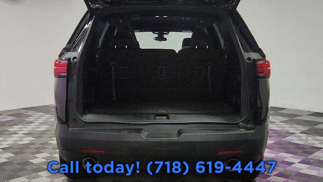 Front License Plate Bracket Mounting Package, Preferred Equipment Group 1LT, 6 Speakers, 6-Speaker Audio System Feature, AM/FM radio: SiriusXM, Radio data system, Radio: Chevrolet Infotainment 3 Plus System, SiriusXM w/360L, Air Conditioning, Automatic temperature control, Front dual zone A/C, Rear air conditioning, Rear window defroster, 8-Way Power Driver Seat Adjuster, Power driver seat, Power steering, Power windows, Remote keyless entry, Steering wheel mounted audio controls, Four wheel independent suspension, Speed-sensing steering, Traction control, 4-Wheel Disc Brakes, ABS brakes, Dual front impact airbags, Dual front side impact airbags, Emergency communication system, Front anti-roll bar, Low tire pressure warning, Occupant sensing airbag, Overhead airbag, Rear anti-roll bar, Power Liftgate, Brake assist, Electronic Stability Control, Exterior Parking Camera Rear, Auto High-beam Headlights, Delay-off headlights, Fully automatic headlights, Panic alarm, Security system, Speed control, Bumpers: body-color, Heated door mirrors, Power door mirrors, Spoiler, Turn signal indicator mirrors, Apple CarPlay/Android Auto, Compass, Driver door bin, Driver vanity mirror, Front reading lights, Garage door transmitter, Illuminated entry, Leather steering wheel, Not Equipped w/Rear Park Assist (060), Outside temperature display, Overhead console, Passenger vanity mirror, Premium Cloth Seat Trim, Rear reading lights, Tachometer, Telescoping steering wheel, Tilt steering wheel, Trip computer, Voltmeter, 2-Way Manual Front Passenger Seat Adjuster, 3rd row seats: split-bench, Front Bucket Seats, Front Center Armrest, Heated Driver & Front Passenger Seats, Heated front seats, Power Driver Lumbar Control, Black Roof Rails, Passenger door bin, Alloy wheels, Wheels: 18" Bright Silver-Painted Aluminum, Rear window wiper, Variably intermittent wipers, 3.49 Axle Ratio
