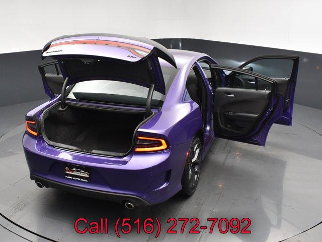 BLACK CLOTH PERFORMANCE SEATS, BLACKTOP PACKAGE -inc: Gloss Black I/P Cluster Trim Rings Black 1-Piece Performance Spoiler Black Dodge Grille Badge Satin Black Charger Decklid Badge Satin Black Dodge Tail Lamp Badge Wheels: 20 x 8 Black Noise Painted Rhombi 2-Pc Wheel Center Cap Black Badge, PLUM CRAZY PEARLCOAT, QUICK ORDER PACKAGE 2EH -inc: Engine: 3.6L V6 24V VVT Transmission: 8-Speed Automatic (8HP50), MANUFACTURER'S STATEMENT OF ORIGIN, WHEELS: 20 X 8 BLACK NOISE PAINTED, TRANSMISSION: 8-SPEED AUTOMATIC (8HP50) (STD), ENGINE: 3.6L V6 24V VVT (STD), FRONT LICENSE PLATE BRACKET, Rear Wheel Drive, Power Steering, ABS, 4-Wheel Disc Brakes, Brake Assist, Aluminum Wheels, Tires - Front Performance, Tires - Rear Performance, Heated Mirrors, Power Mirror(s), Rear Defrost, Intermittent Wipers, Variable Speed Intermittent Wipers, Rear Spoiler, Daytime Running Lights, Automatic Headlights, LED Headlights, AM/FM Stereo, Satellite Radio, MP3 Capability, Auxiliary Audio Input, HD Radio, Requires Subscription, Premium Sound System, Steering Wheel Audio Controls, Premium Sound System, Satellite Radio, HD Radio, Requires Subscription, MP3 Capability, Auxiliary Audio Input, Power Driver Seat, Pass-Through Rear Seat, Rear Bench Seat, Adjustable Steering Wheel, Trip Computer, Power Windows, Leather Steering Wheel, Keyless Entry, Power Door Locks, Keyless Start, Keyless Entry, Power Door Locks, Remote Trunk Release, Universal Garage Door Opener, Cruise Control, Climate Control, Multi-Zone A/C, A/C, Cloth Seats, Bucket Seats, Driver Vanity Mirror, Passenger Vanity Mirror, Driver Illuminated Vanity Mirror, Passenger Illuminated Visor Mirror, Auto-Dimming Rearview Mirror, Floor Mats, Remote Engine Start, Keyless Start, Remote Engine Start, Smart Device Integration, Requires Subscription, Smart Device Integration, MP3 Capability, Smart Device Integration, Telematics, Smart Device Integration, Requires Subscription, WiFi Hotspot, Bluetooth Connection, Power Windows, Power Door Locks, Trip Computer, Driver Adjustable Lumbar, Immobilizer, Traction Control, Stability Control, Traction Control, Front Side Air Bag, Rear Parking Aid, Tire Pressure Monitor, Driver Air Bag, Passenger Air Bag, Front Head Air Bag, Rear Head Air Bag, Passenger Air Bag Sensor, Knee Air Bag, Child Safety Locks, Back-Up Camera